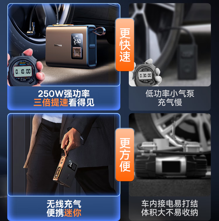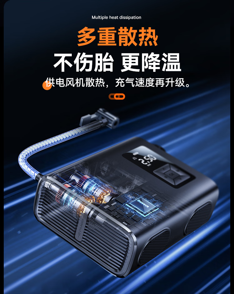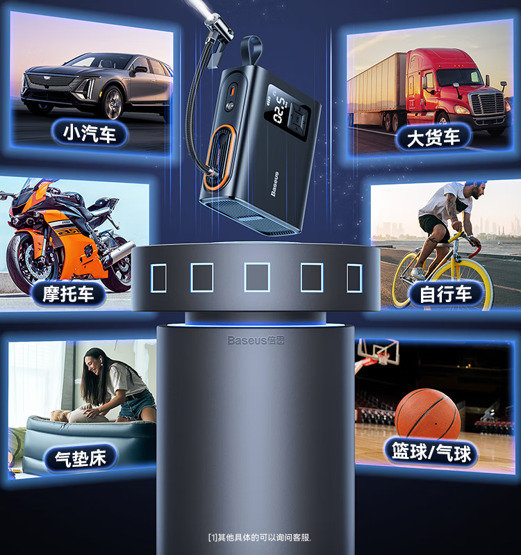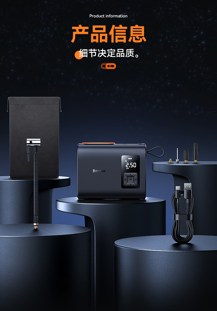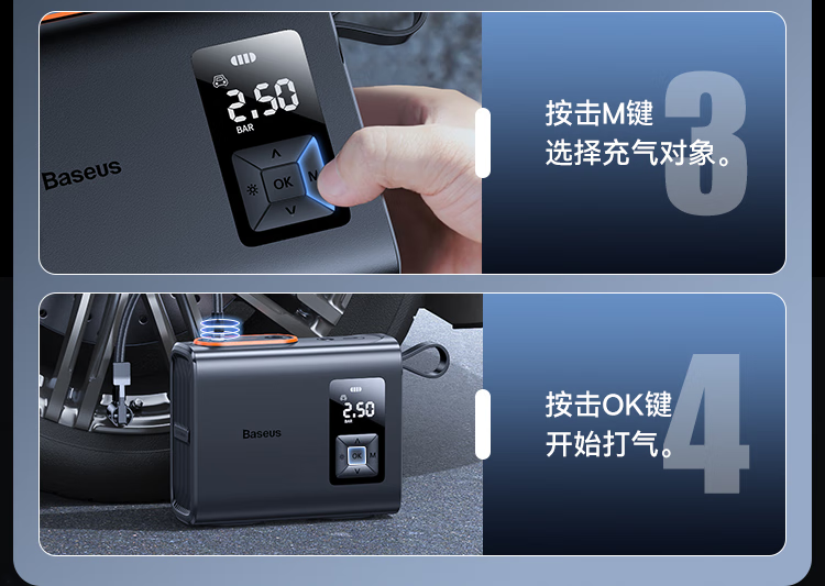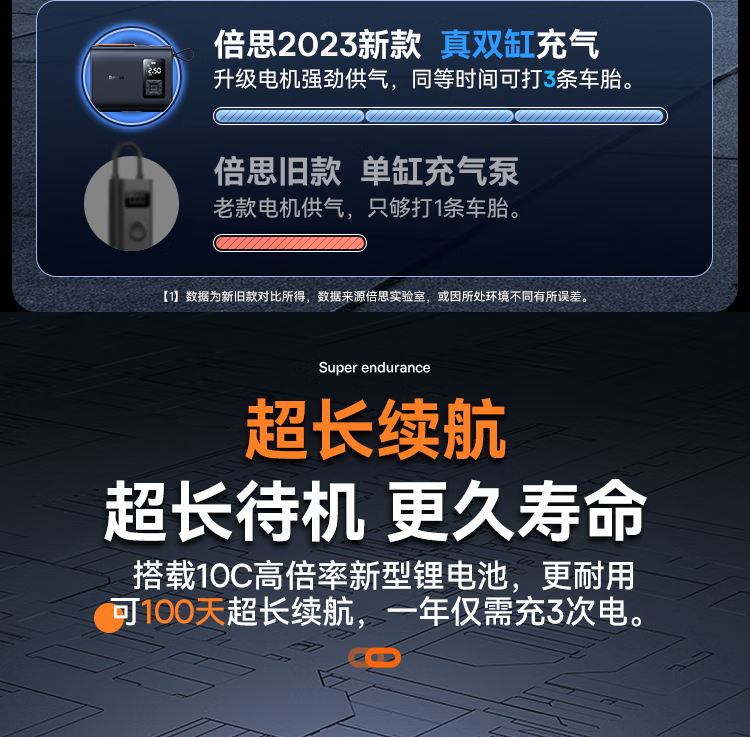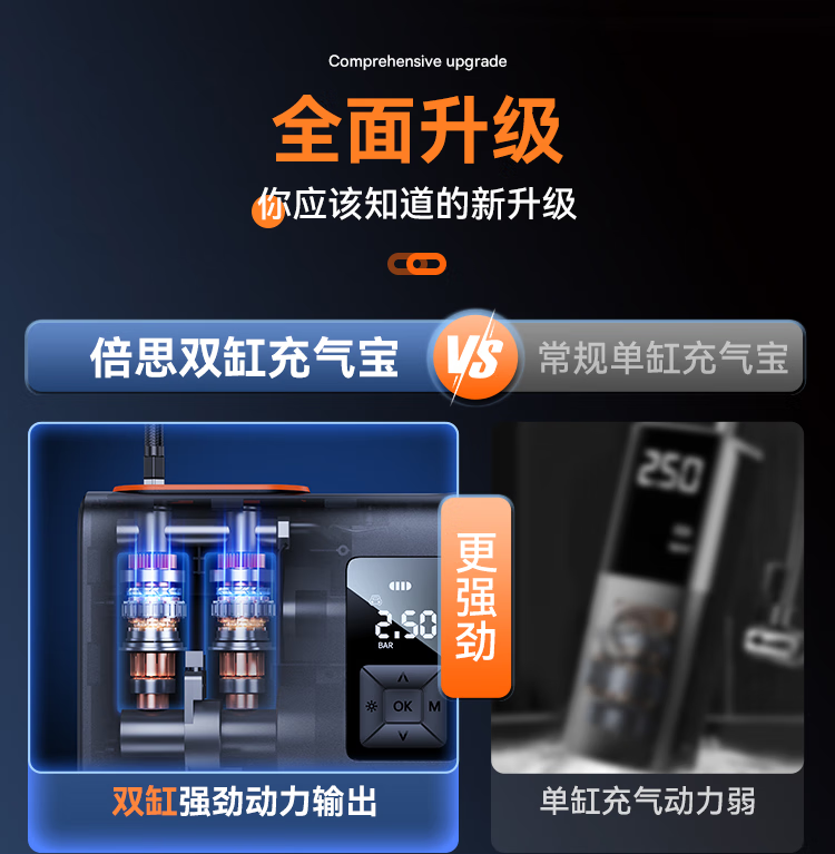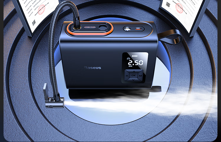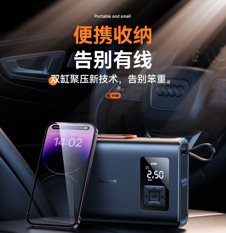 倍思 能量泵Mega双缸无线充气宝 BS-CG007 车载充气泵打气便携式测轮胎压 6000mAh