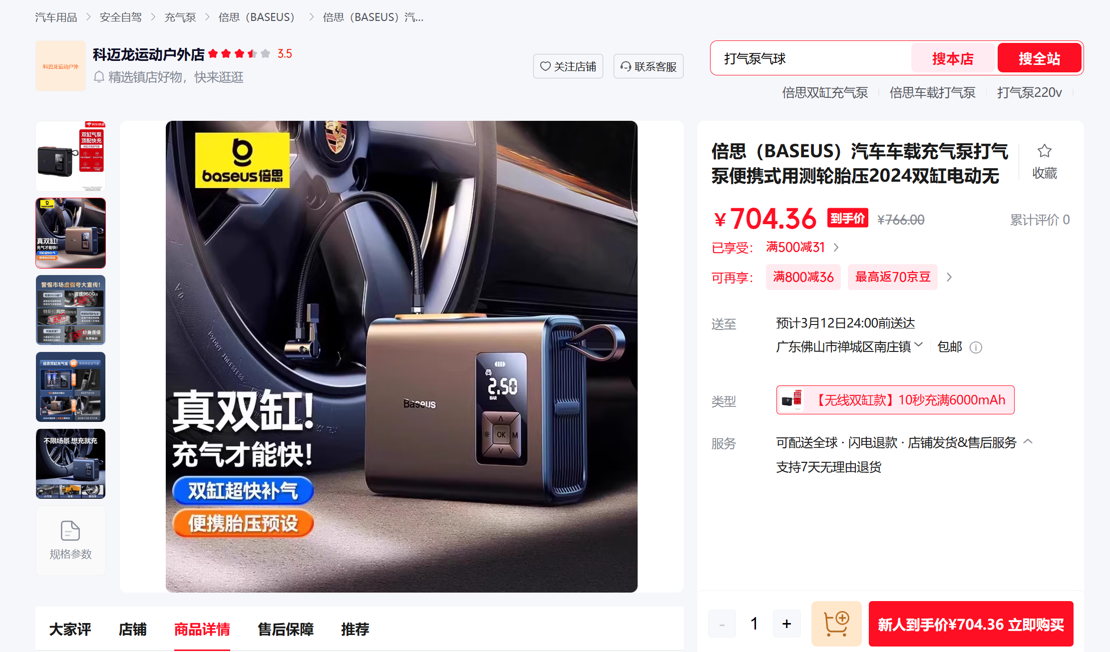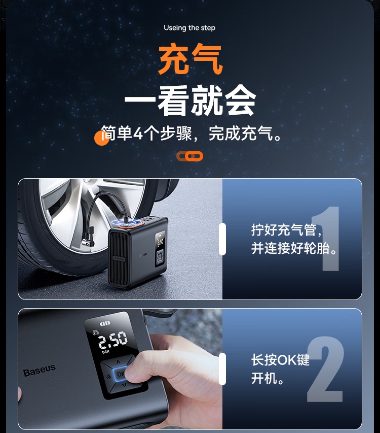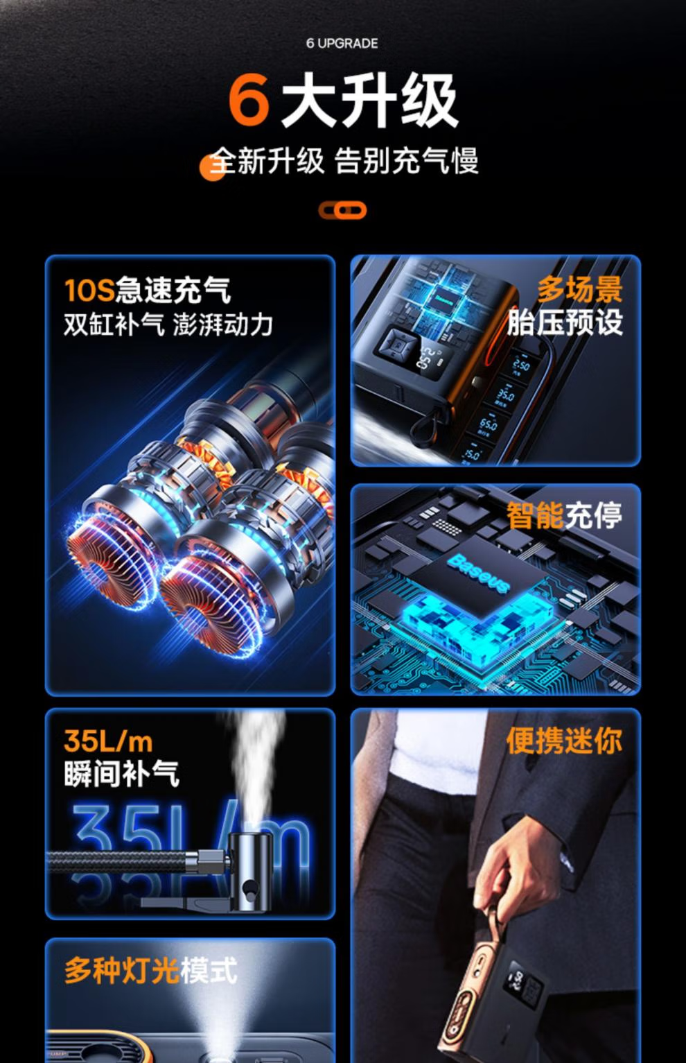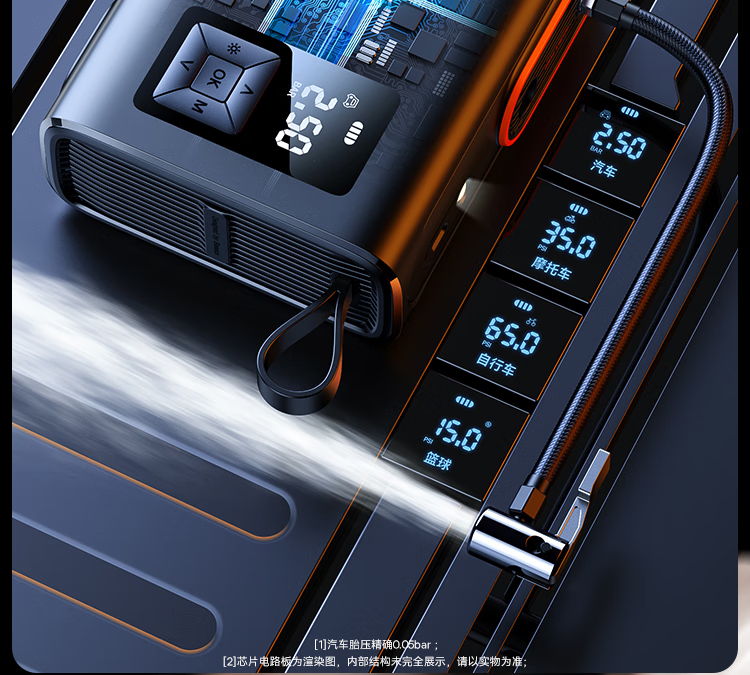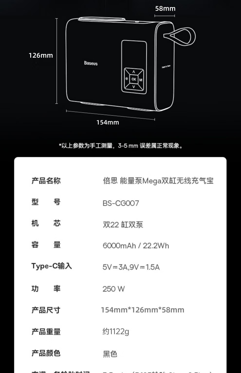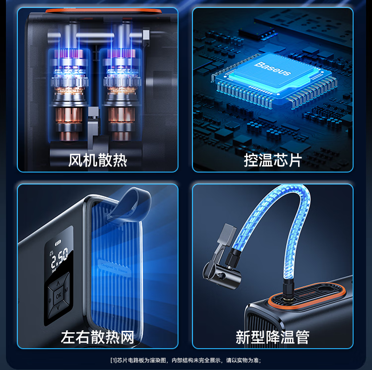 倍思 能量泵Mega双缸无线充气宝 BS-CG007 车载充气泵打气便携式测轮胎压 6000mAh