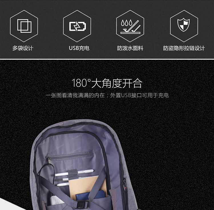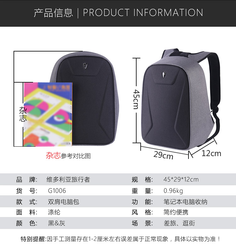 维多利亚旅行者商务防盗笔记本电脑包背包双肩包1006