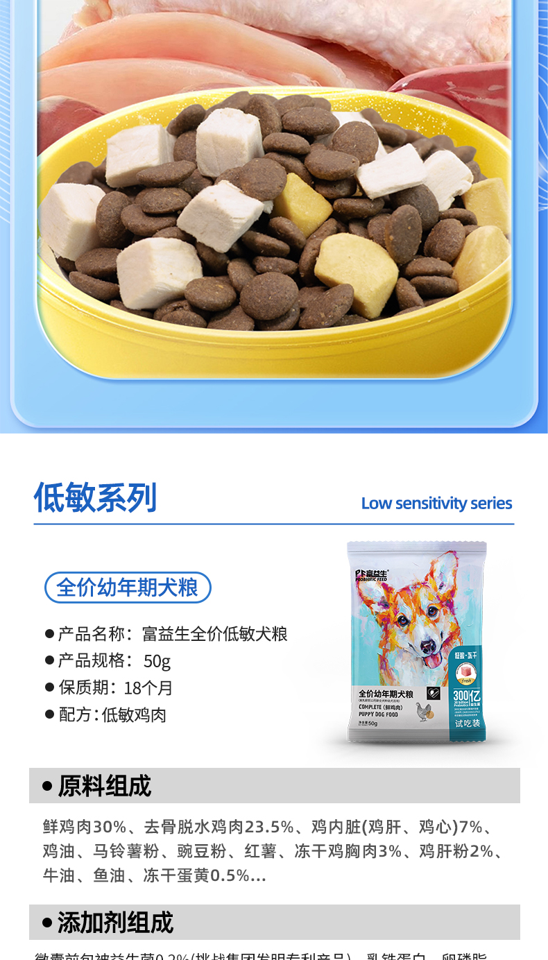 【9.9到手6件】富益生 狗狗尝鲜礼包 狗狗零食汤罐头170g*1+狗粮试吃50g*5