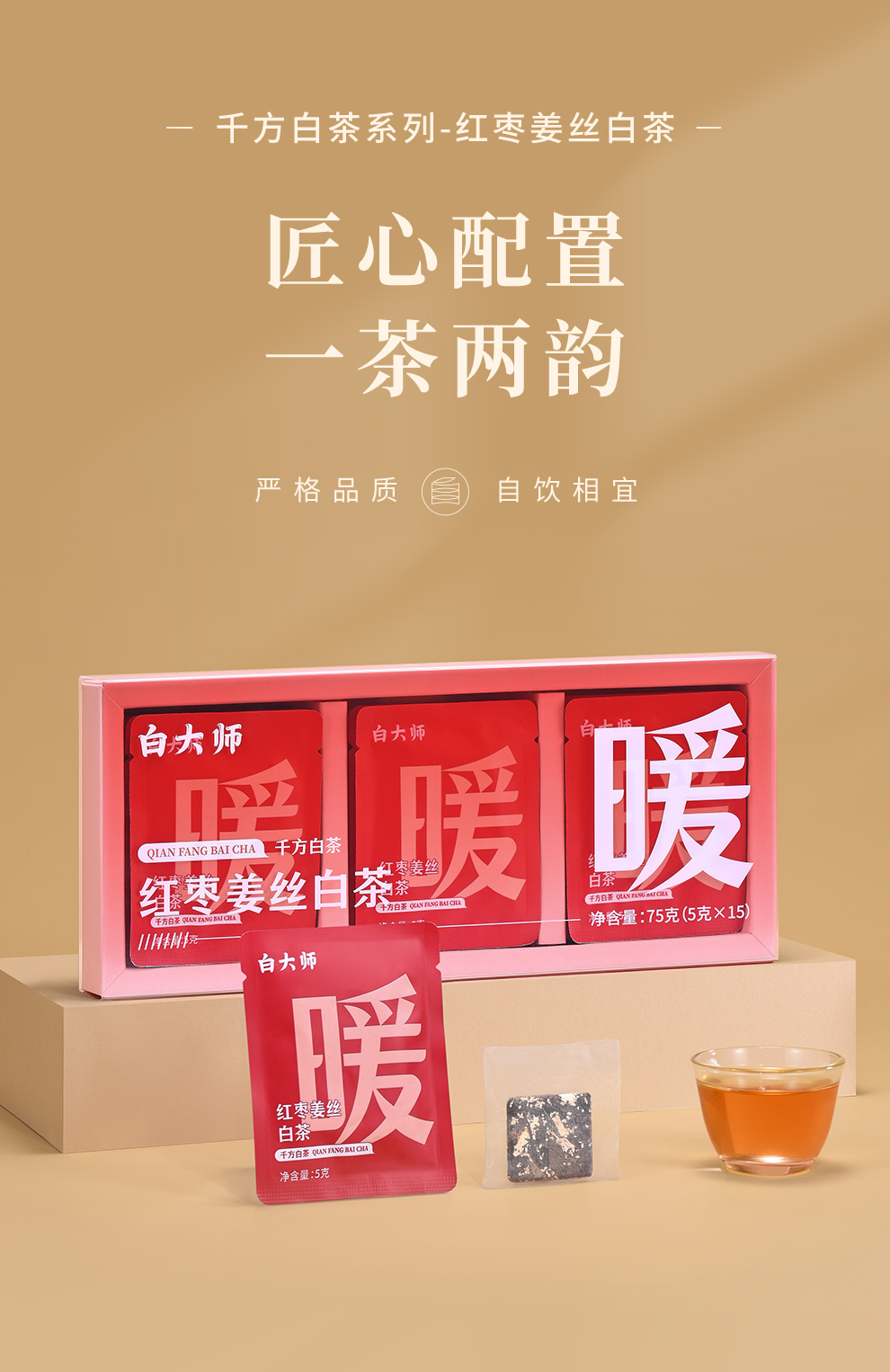 白大师茶叶礼盒正宗福鼎白茶2020年红枣姜丝白茶养生茶