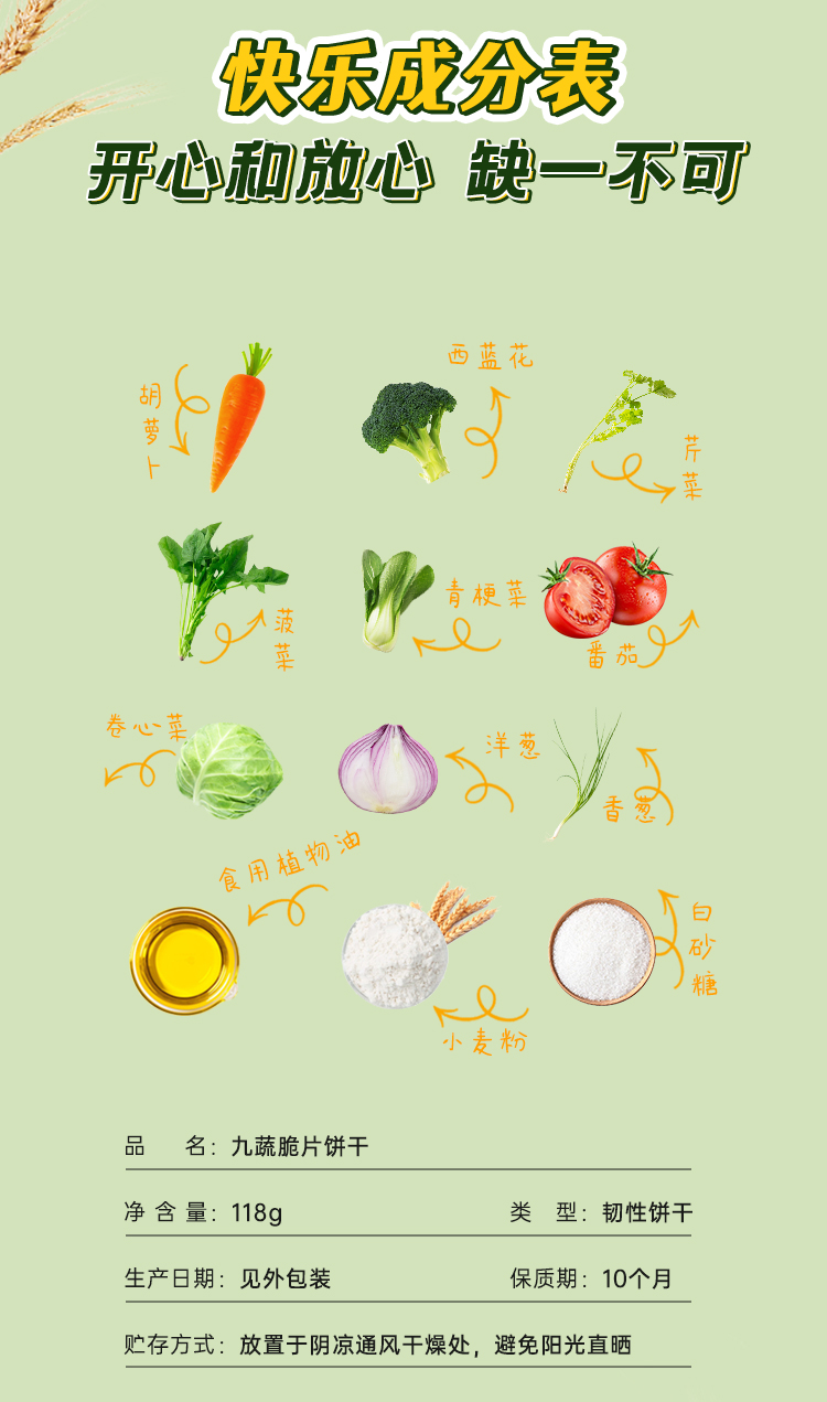 【宅猫日记】九蔬脆片饼干内含9种蔬菜营养宝藏118g*5