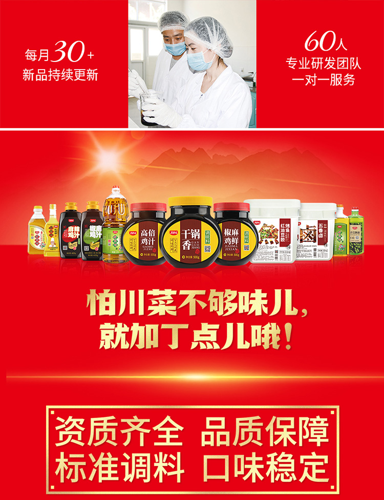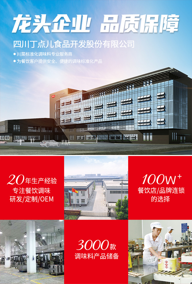 四川丁点儿食品开发股份有限公司,是集川菜调味料研发、生产、销售、服务为一体的现代化企业,专注为餐饮客户提供川菜调味解决方案。公司成立至今,服务了超百万家的餐饮门店以及连锁品牌。