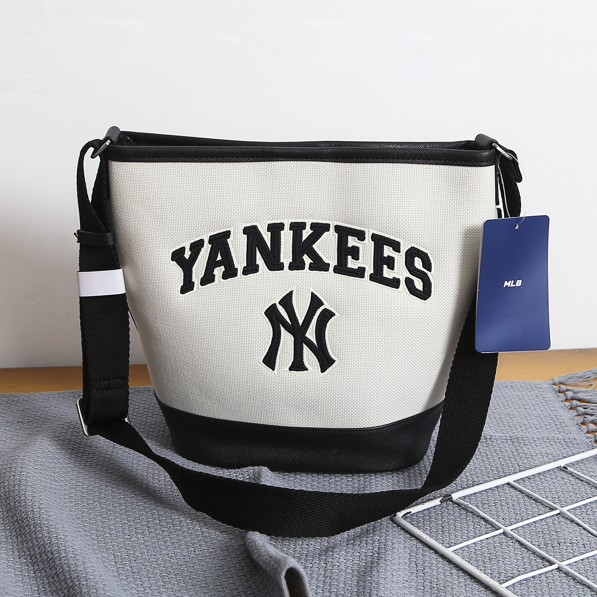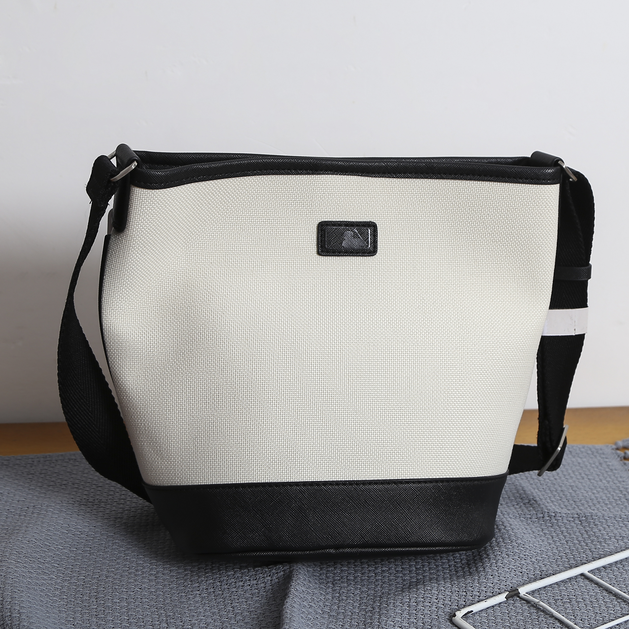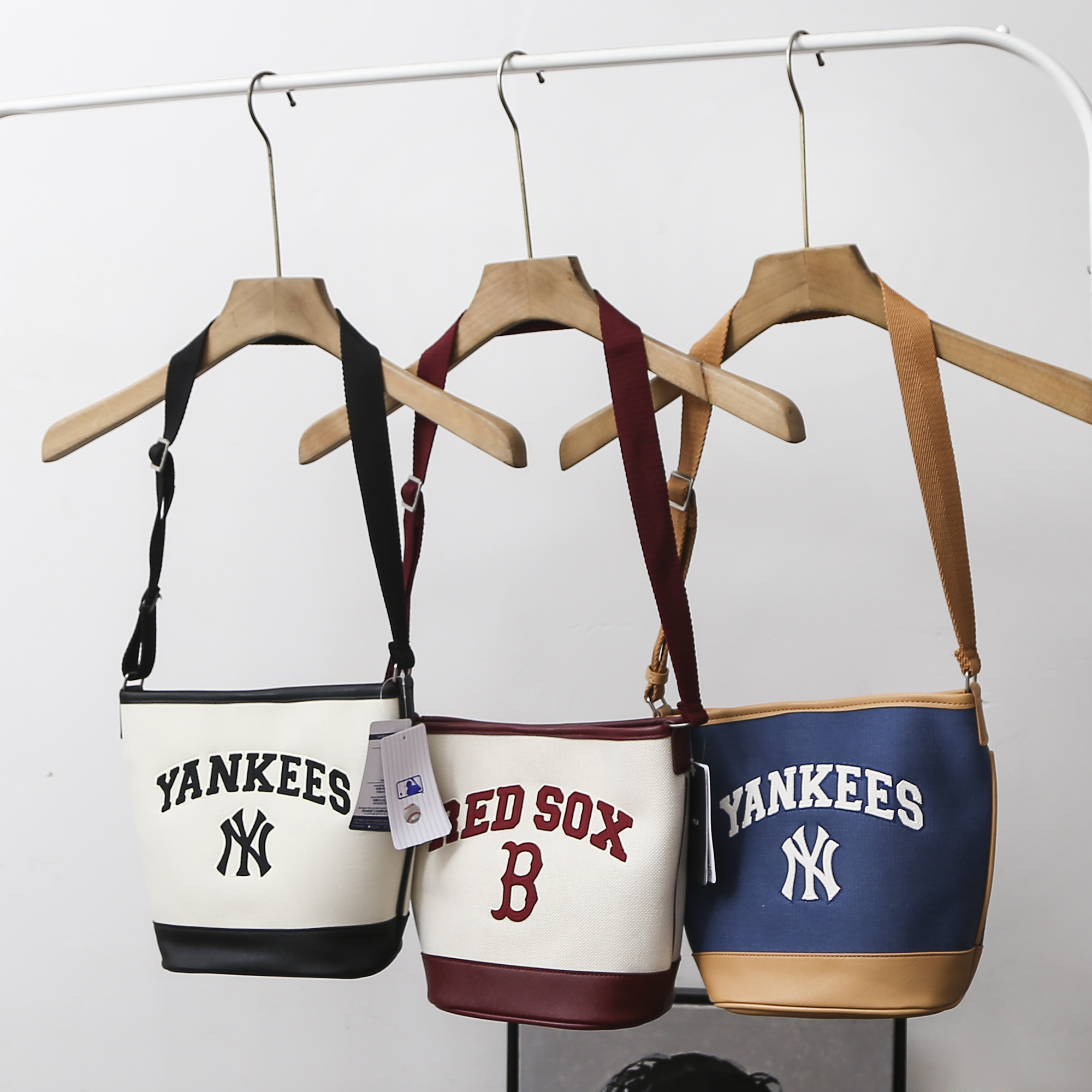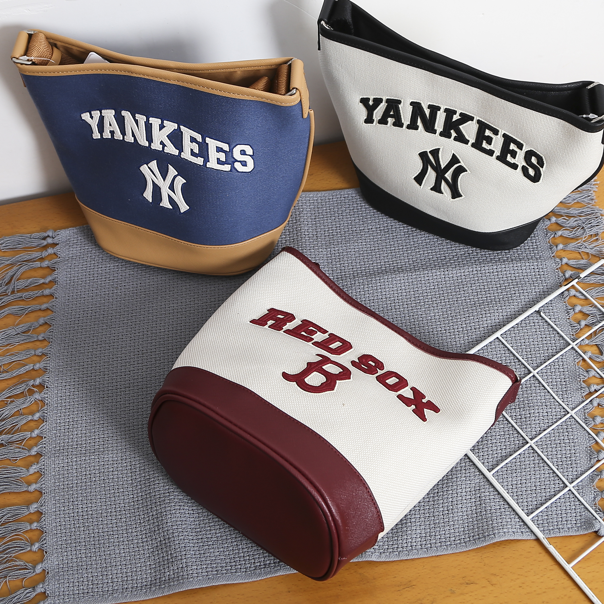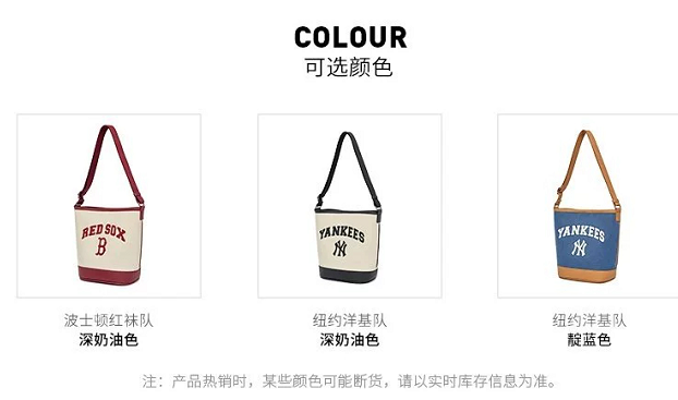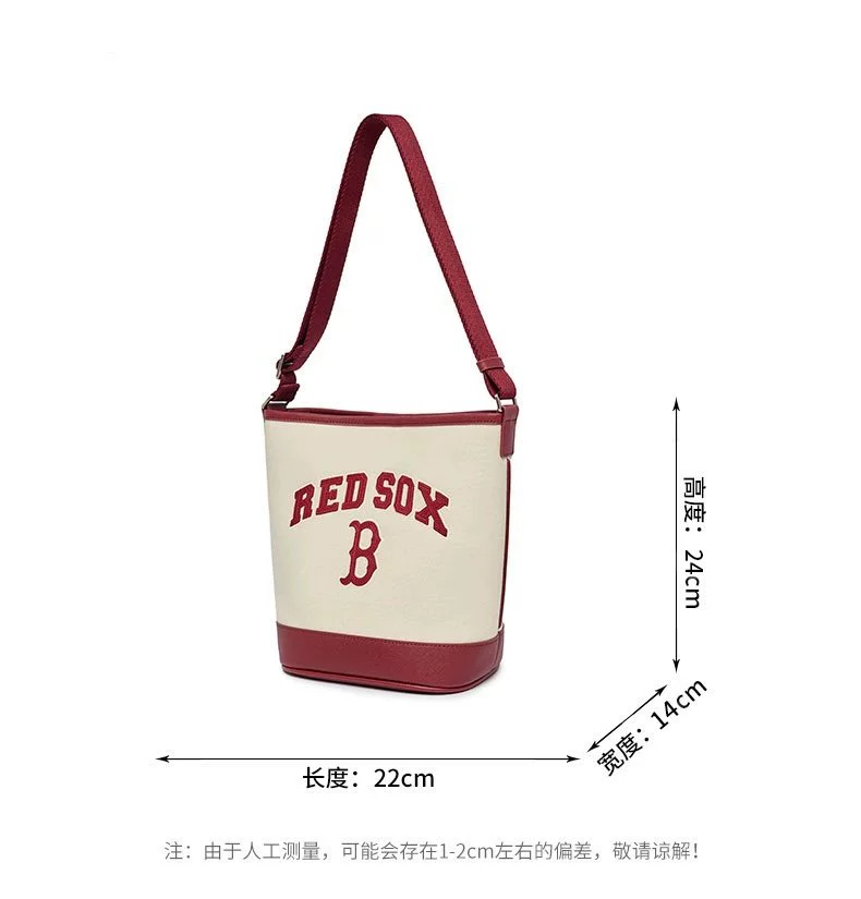 严选 | MLB休闲帆布水桶包 深奶油&酒红/深奶油&黑色/靛蓝色 22*14*24cm