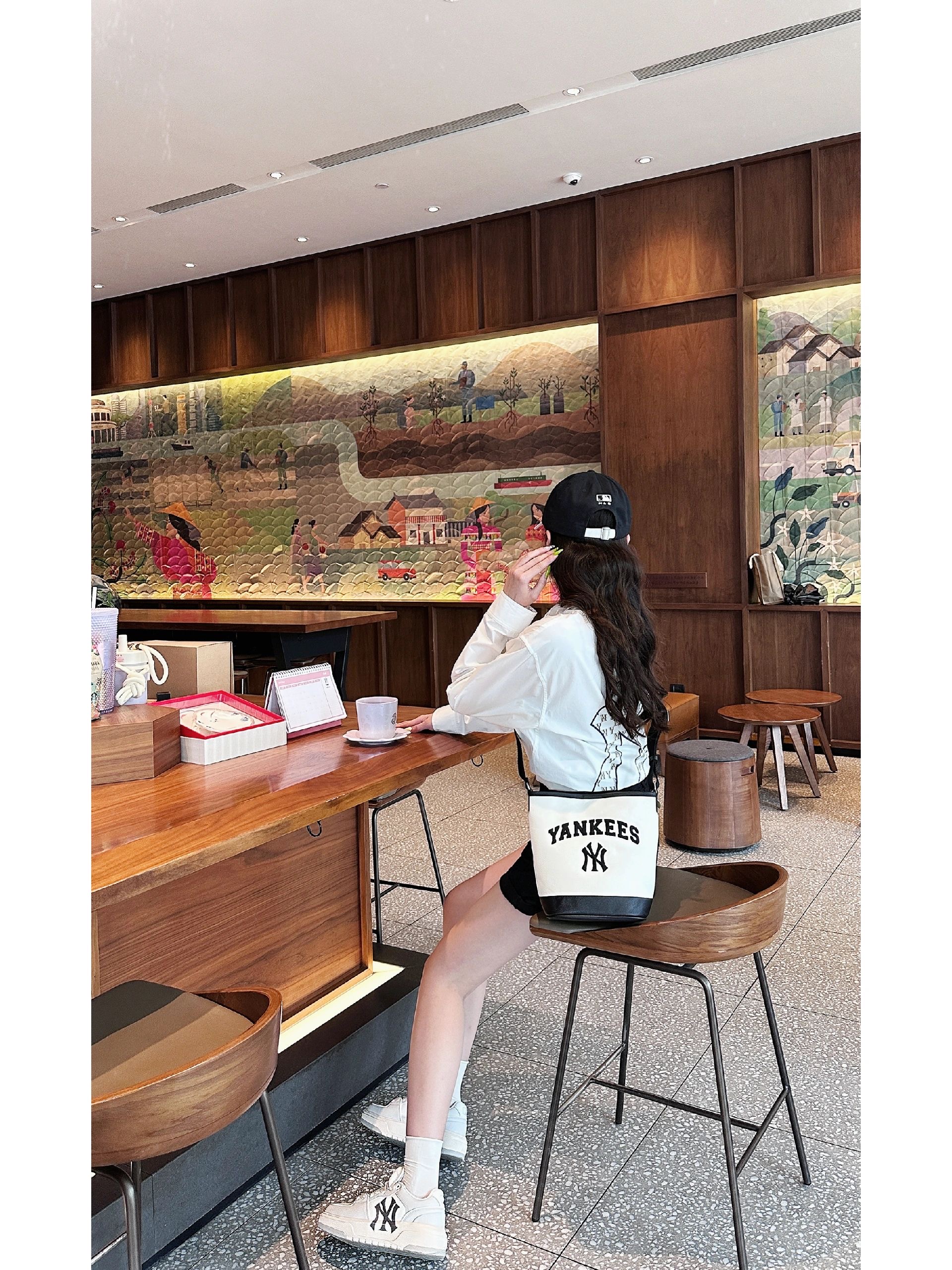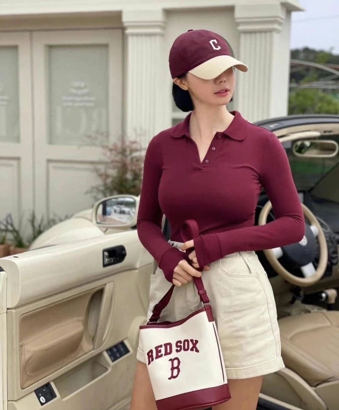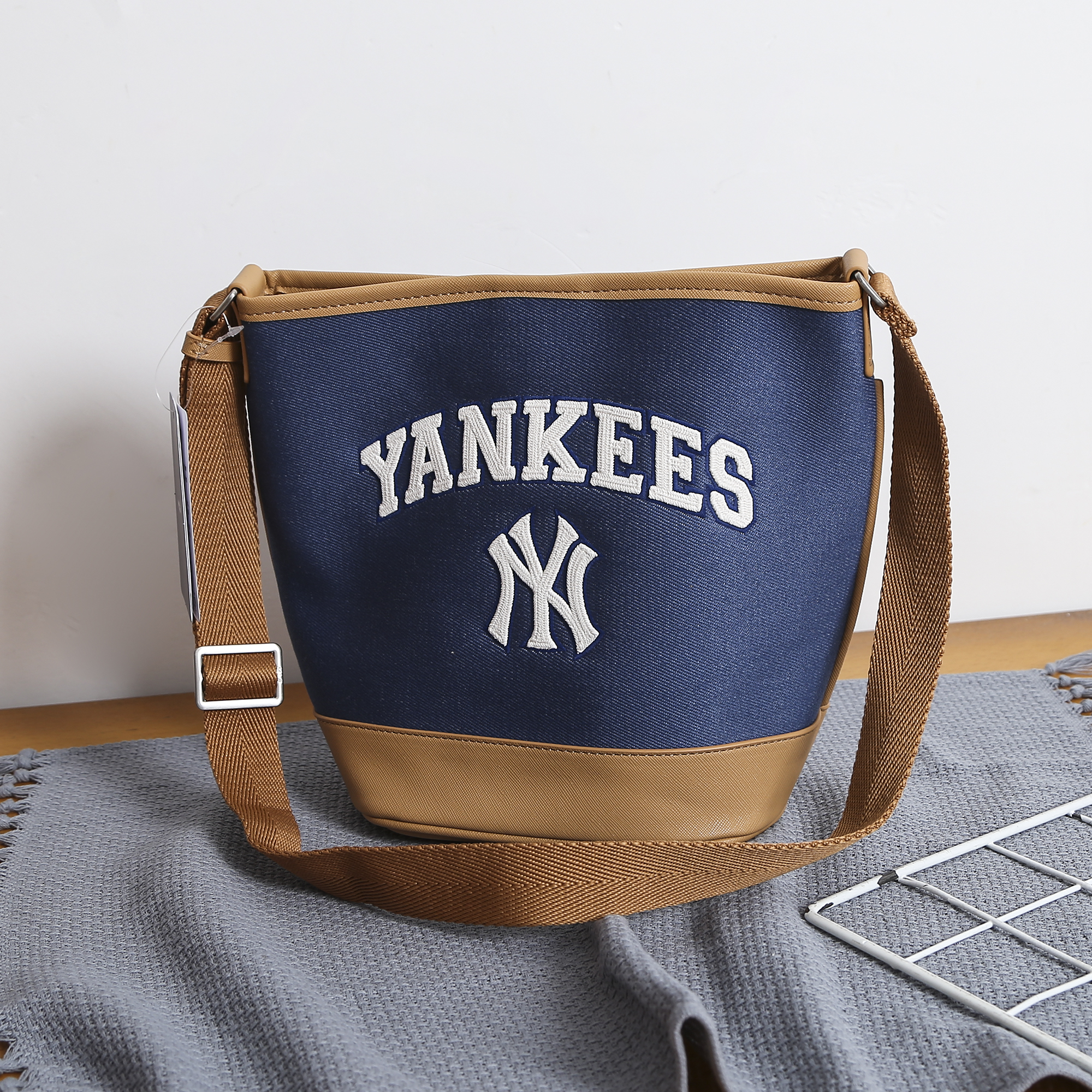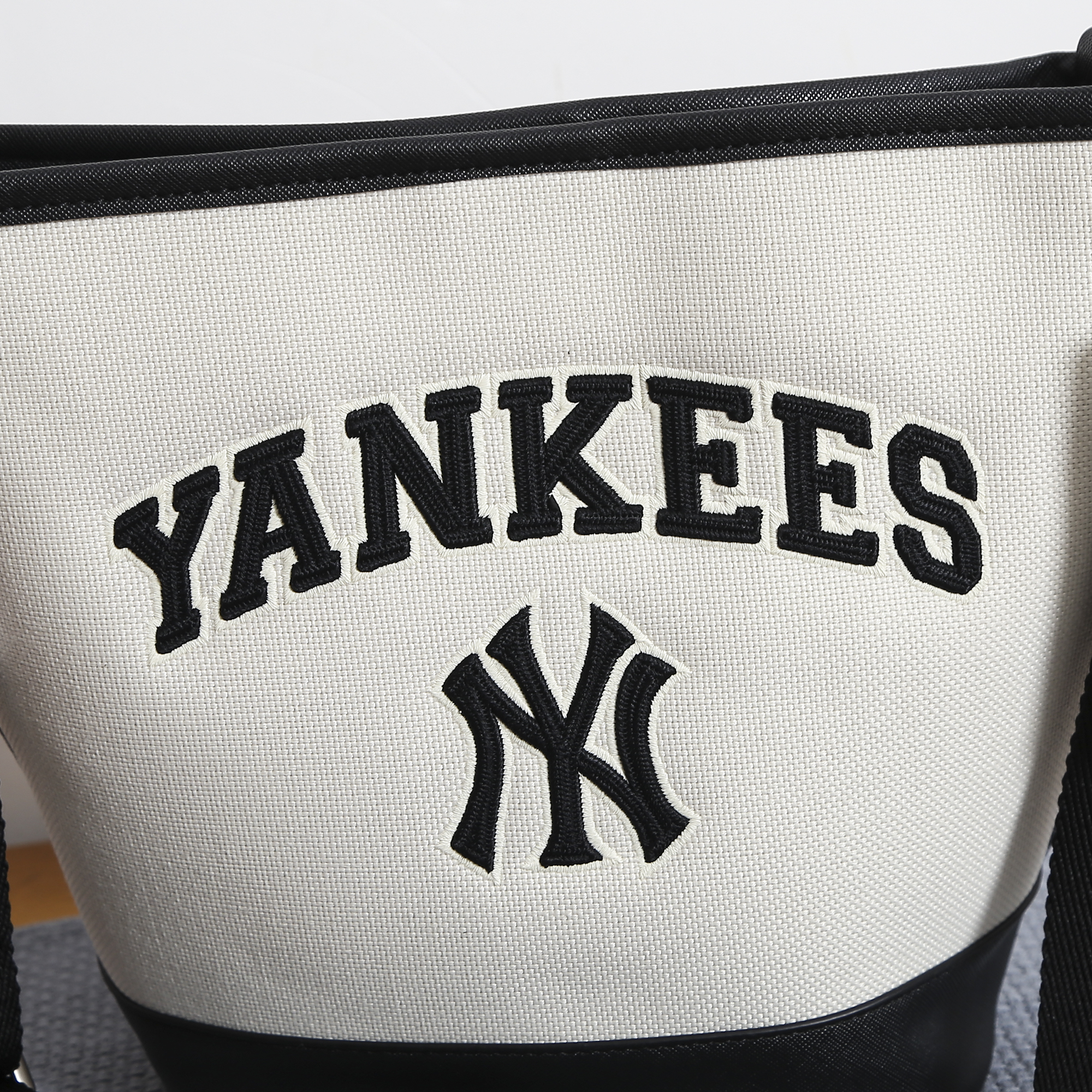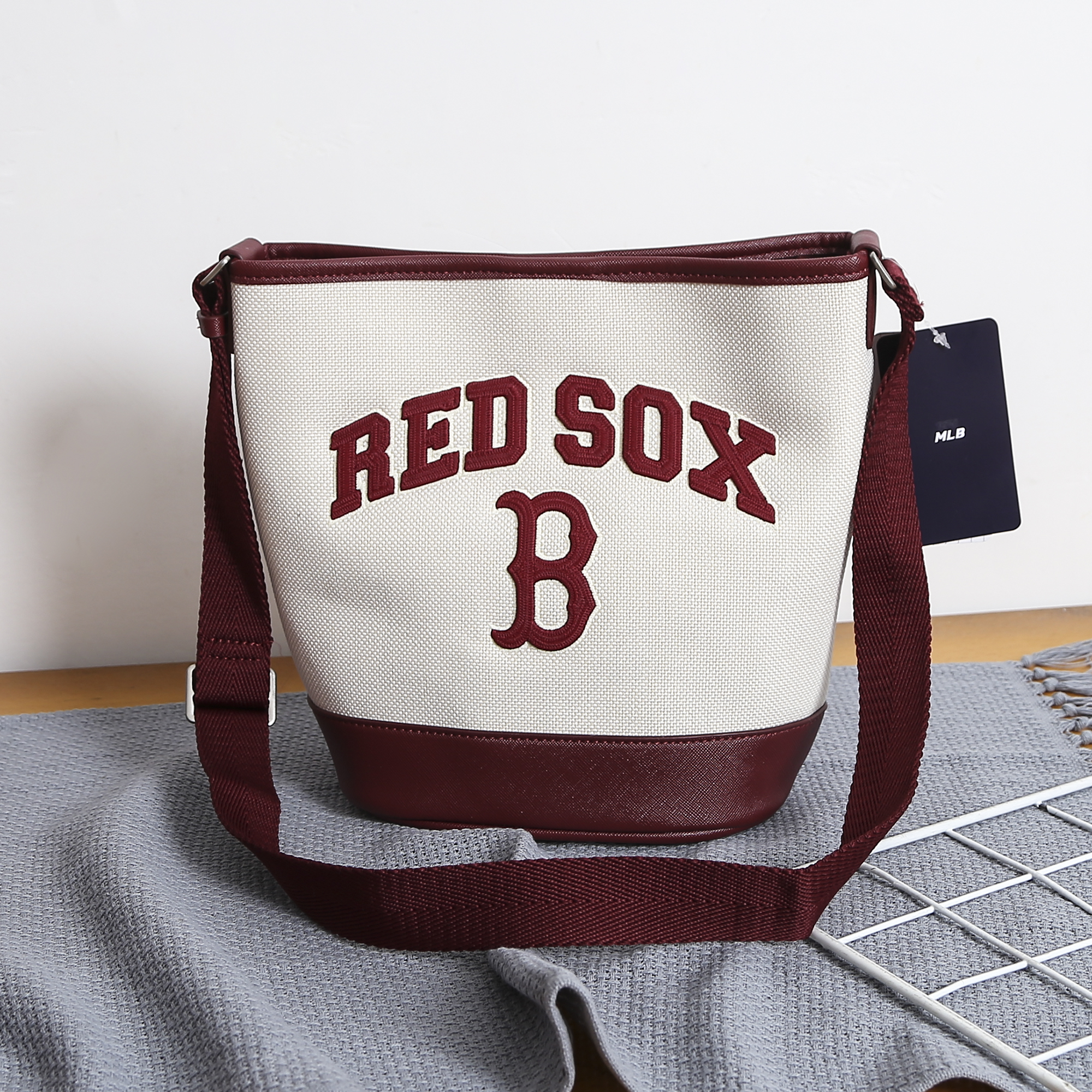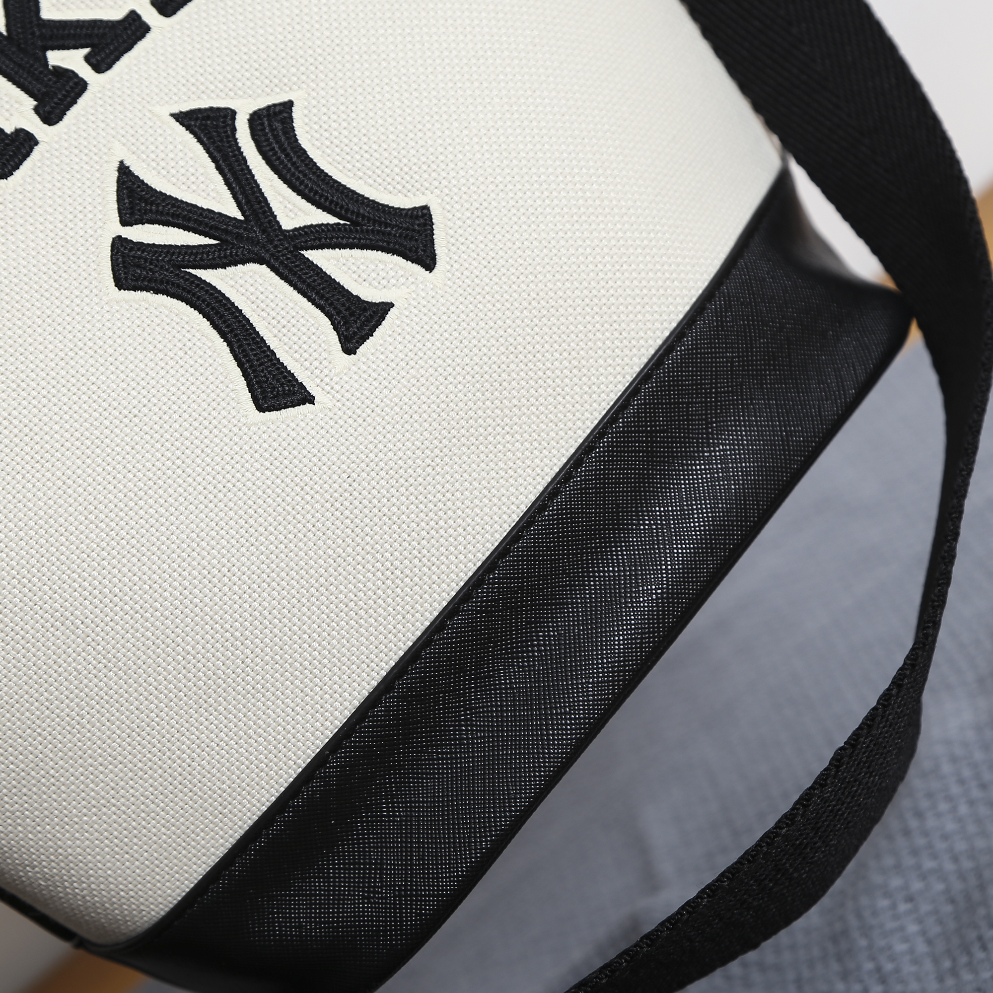严选 | MLB休闲帆布水桶包 深奶油&酒红/深奶油&黑色/靛蓝色 22*14*24cm