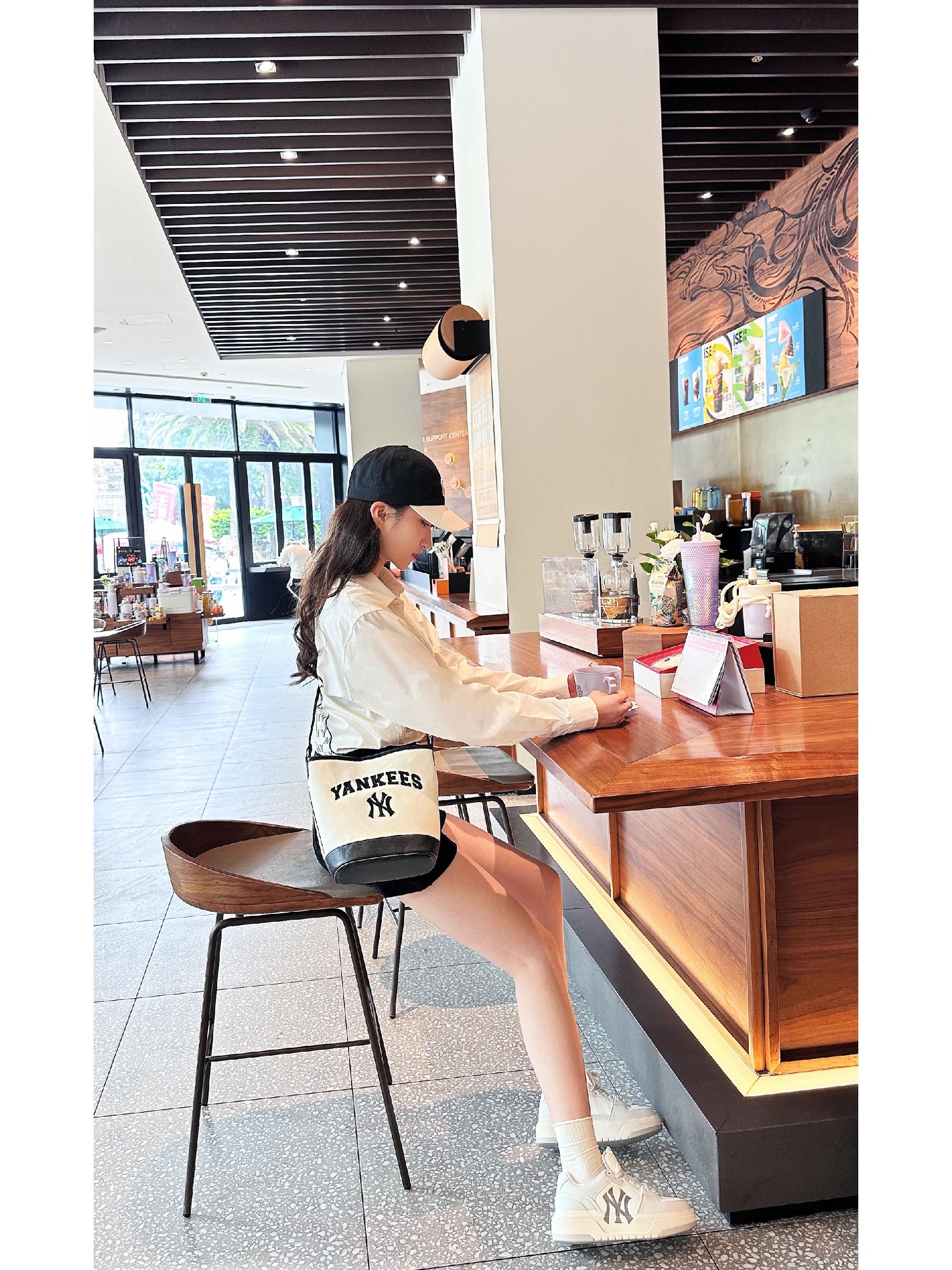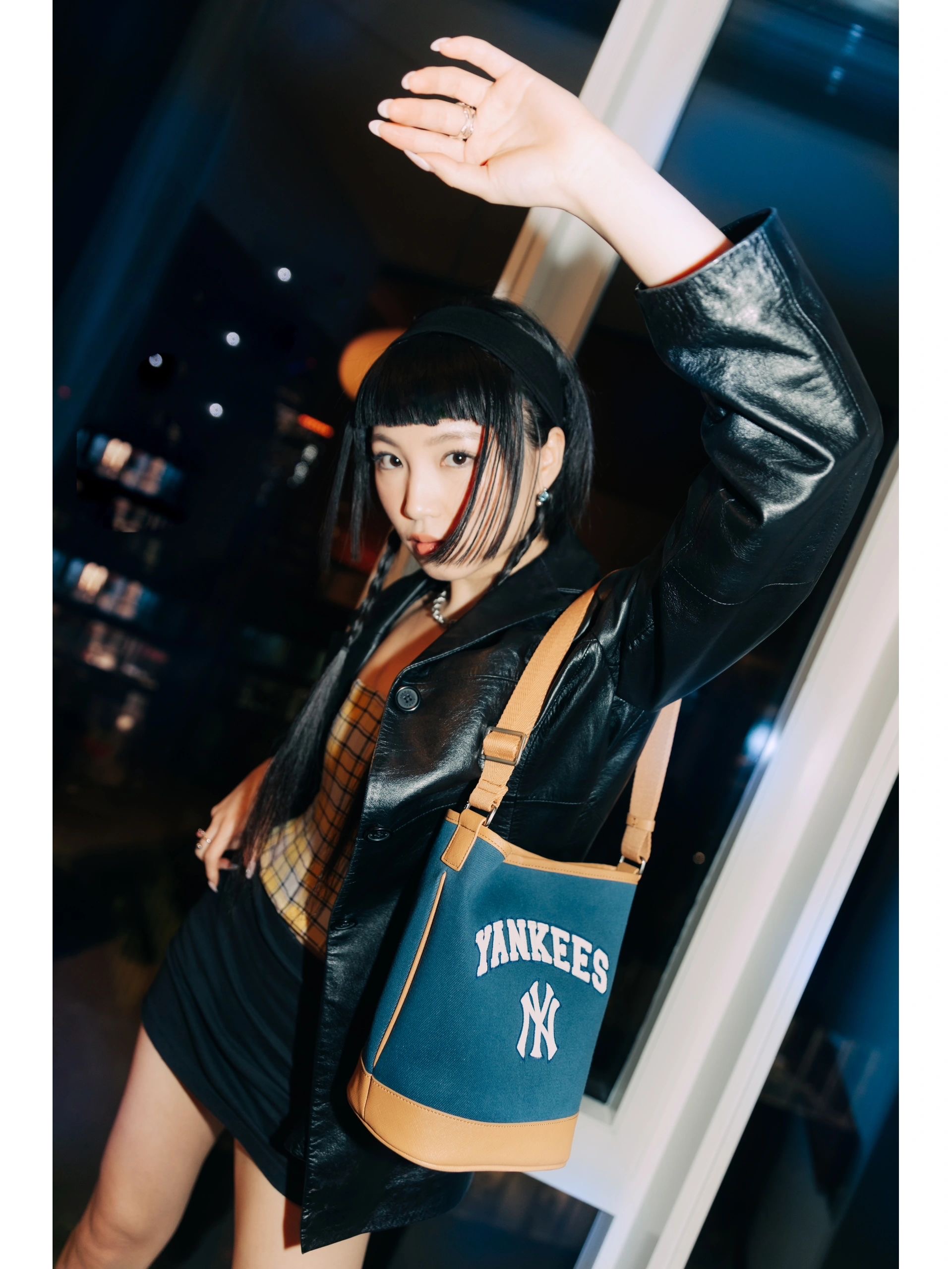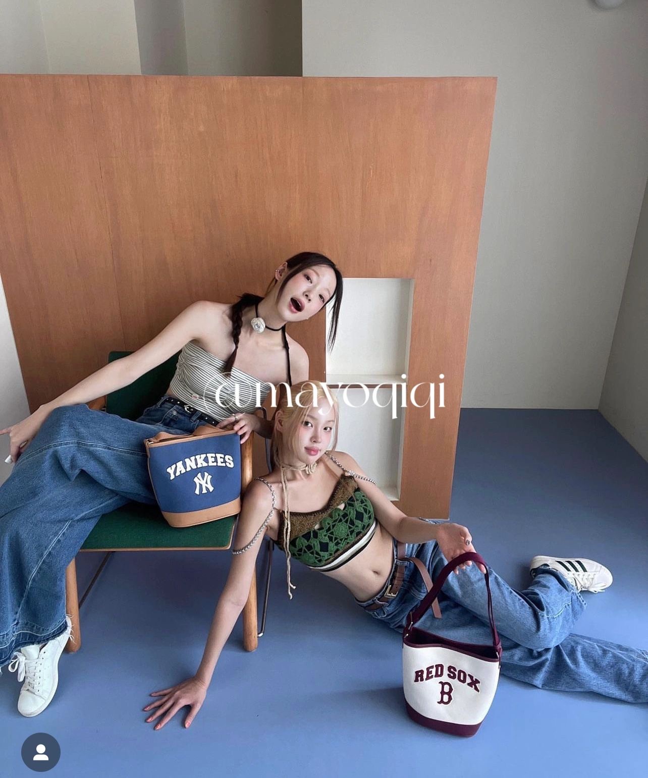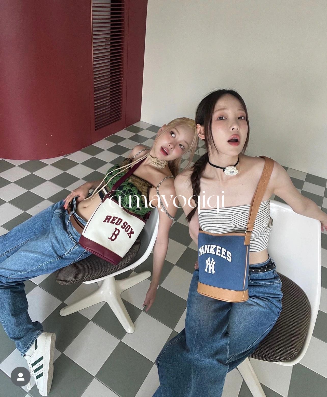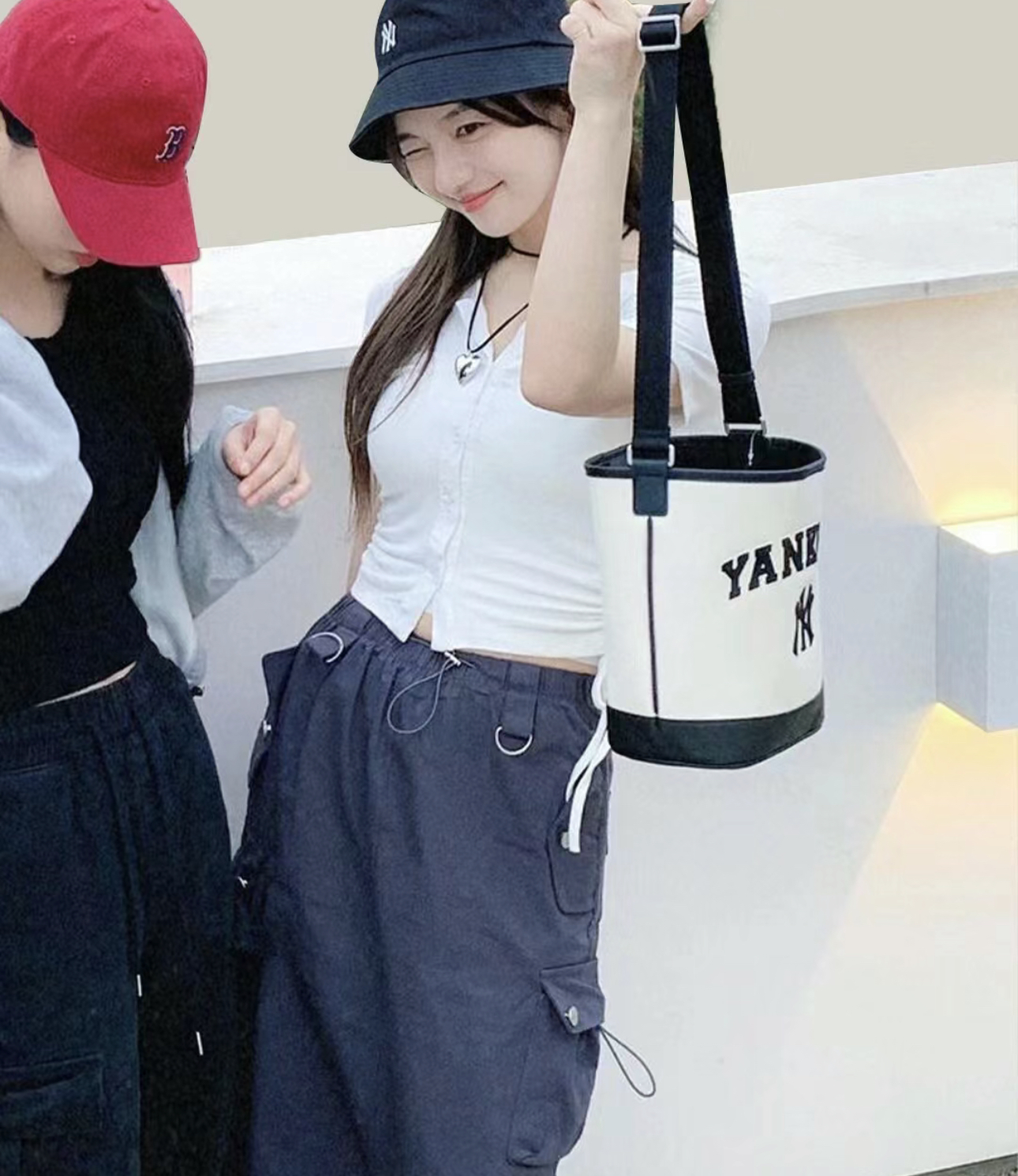 严选 | MLB休闲帆布水桶包 深奶油&酒红/深奶油&黑色/靛蓝色 22*14*24cm