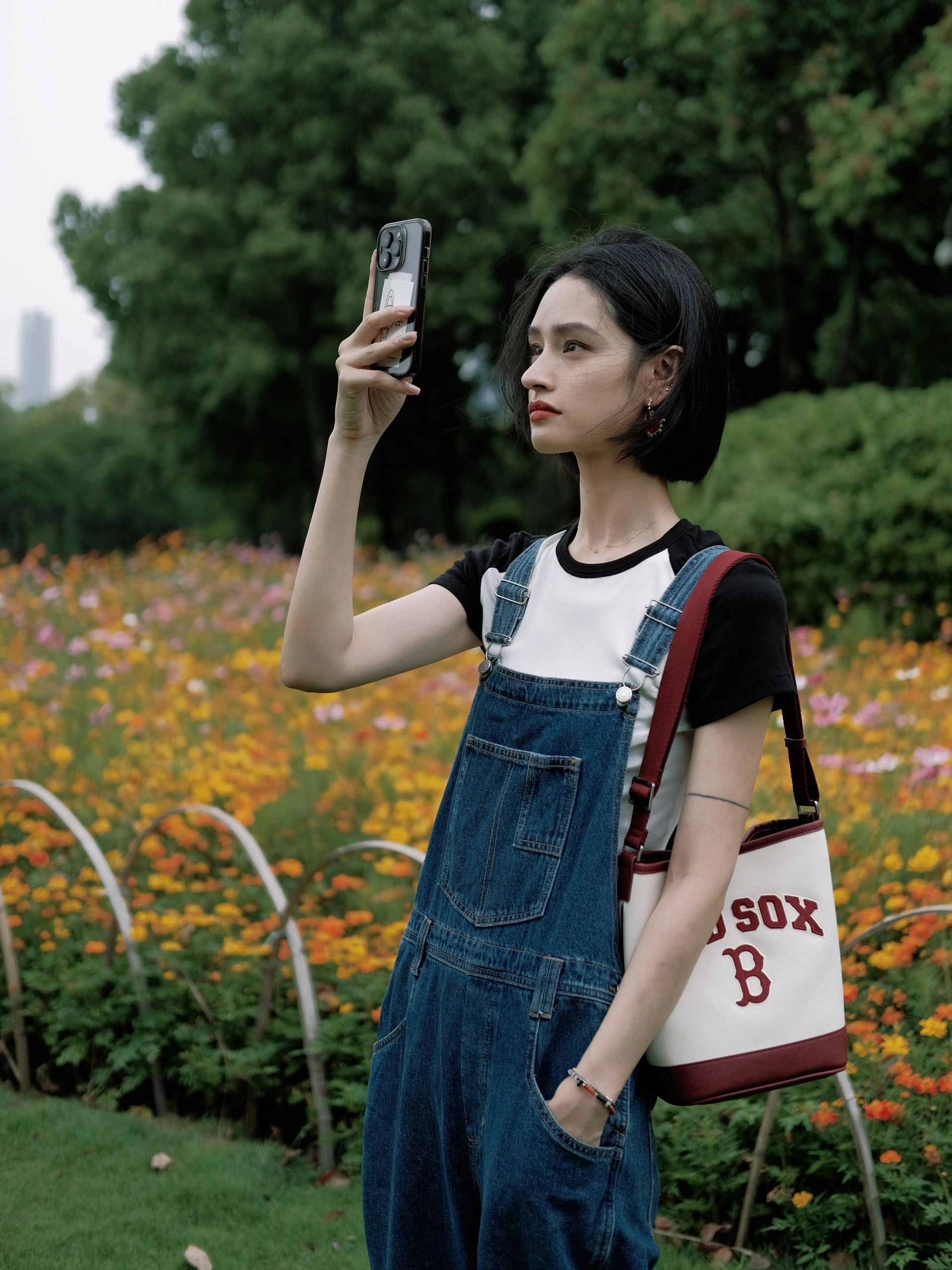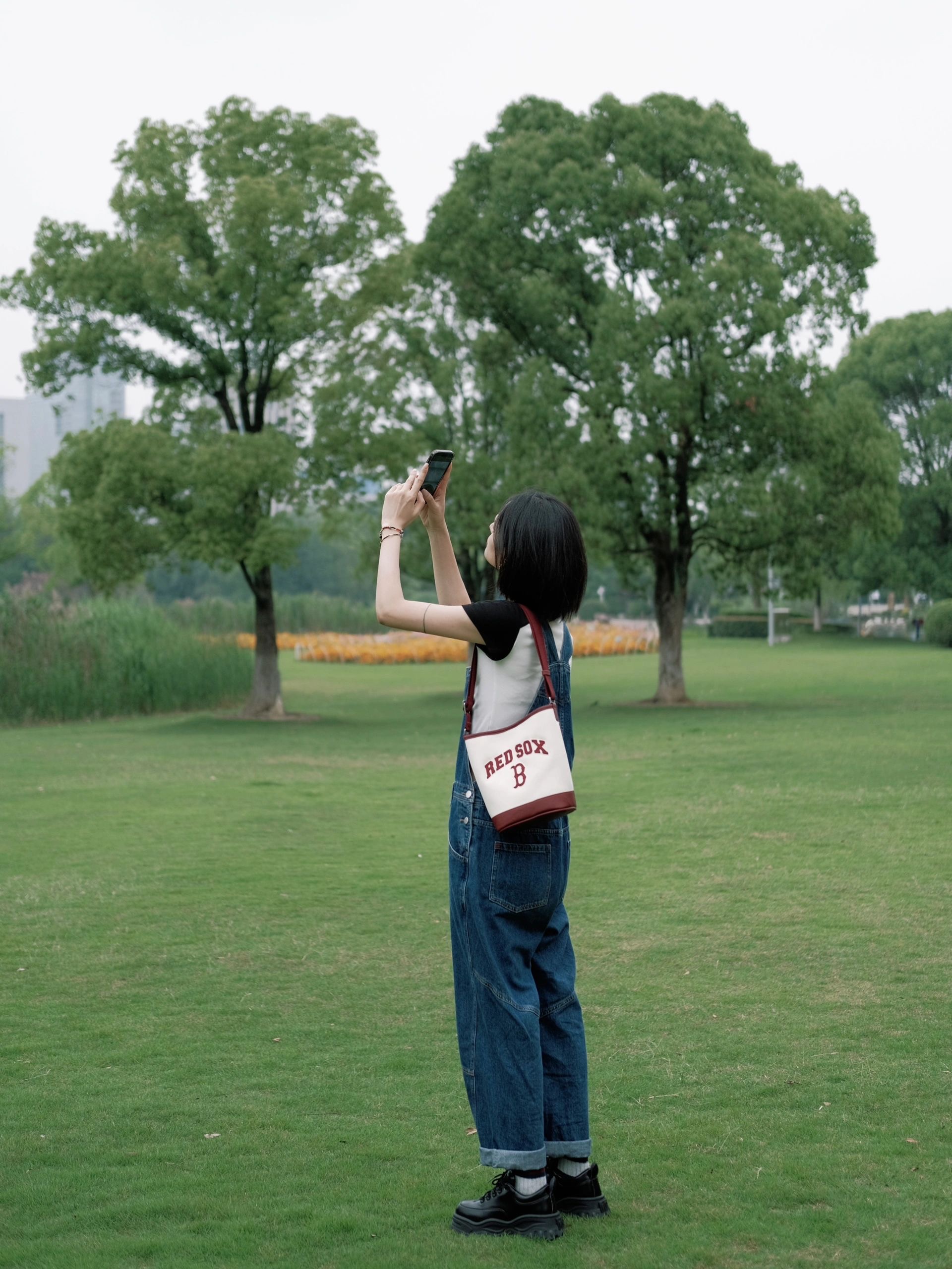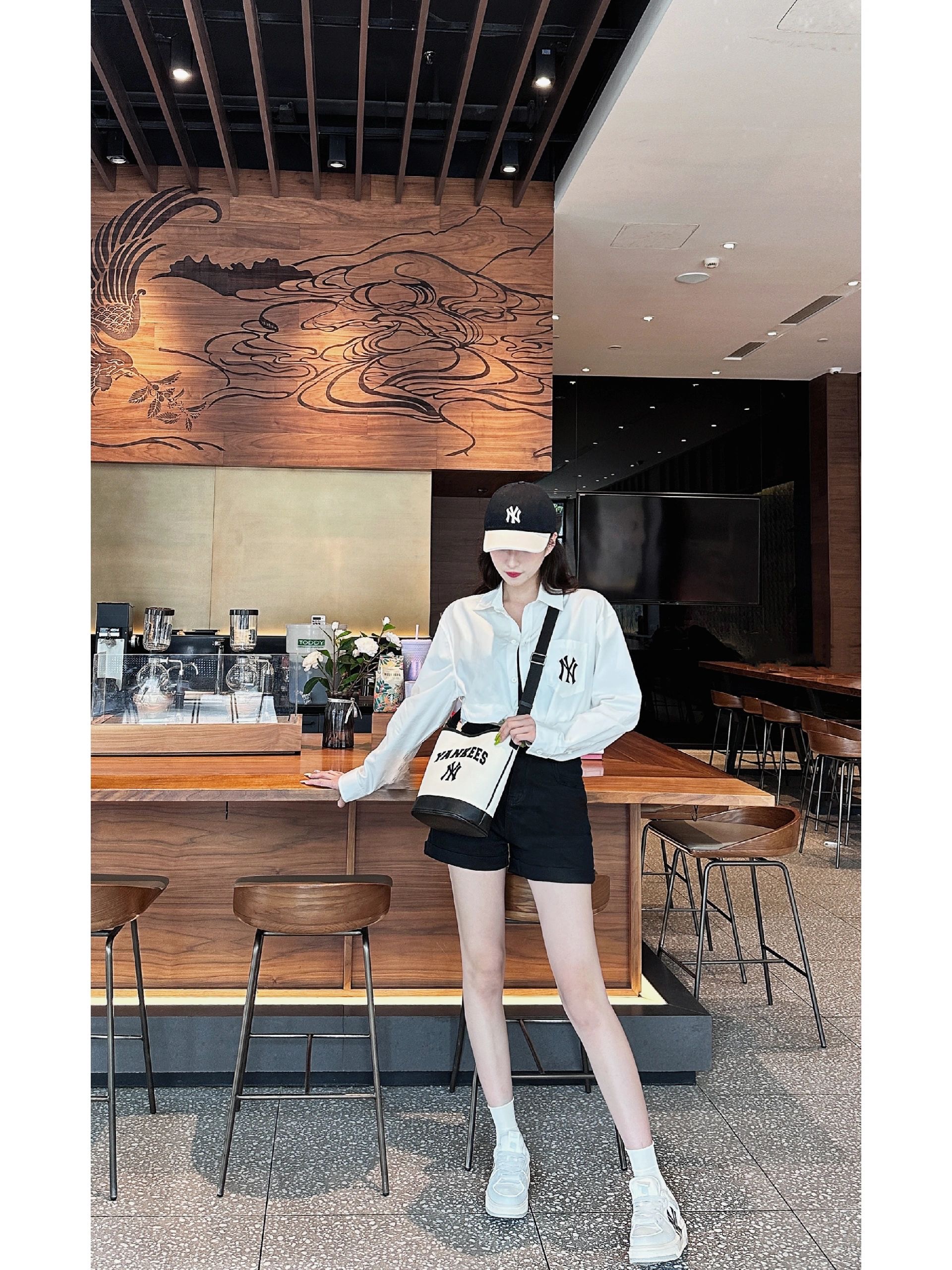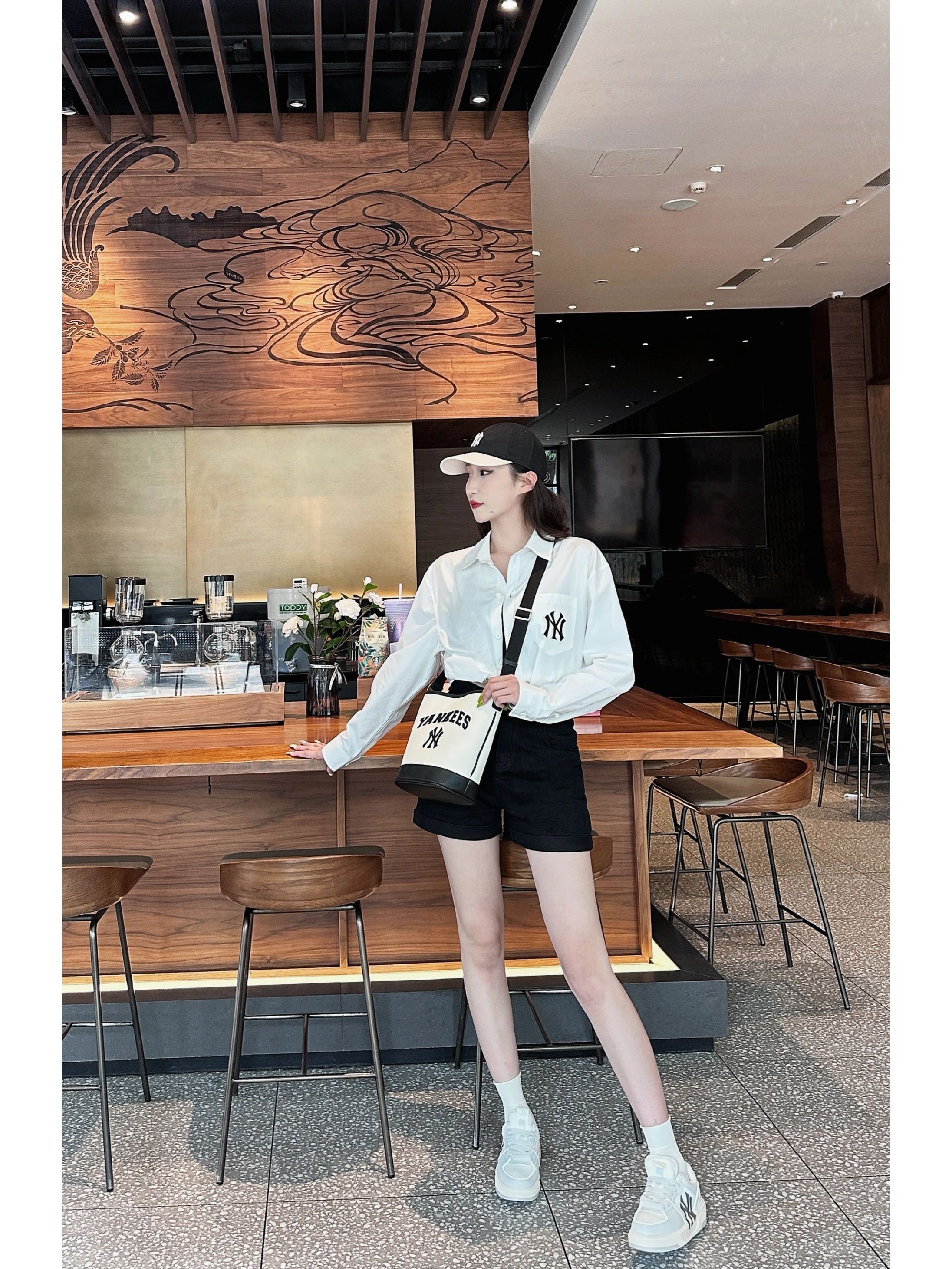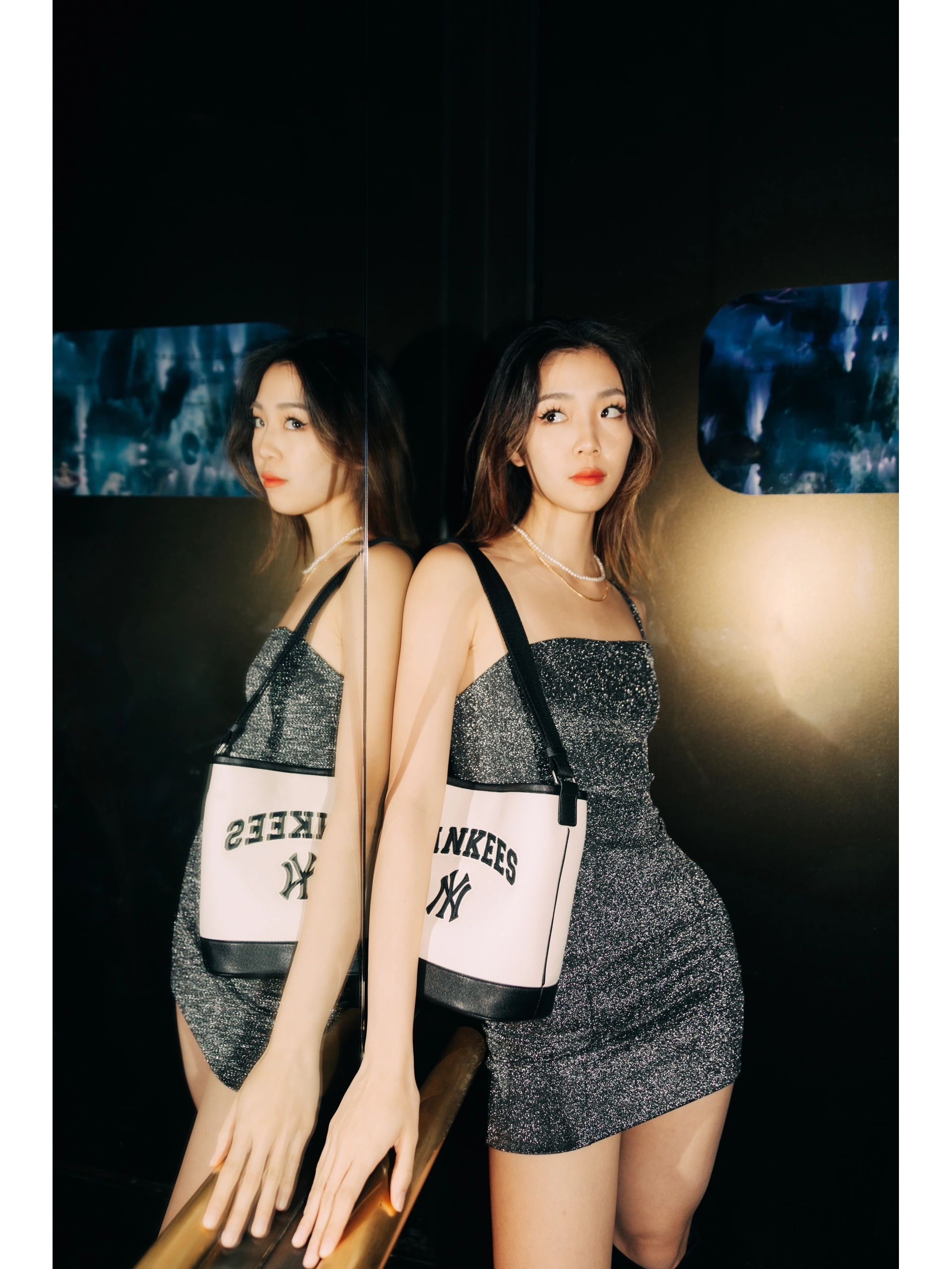 严选 | MLB休闲帆布水桶包 深奶油&酒红/深奶油&黑色/靛蓝色 22*14*24cm