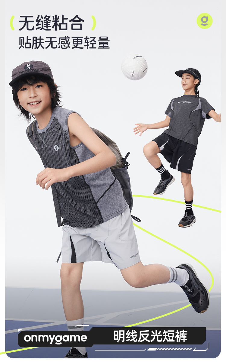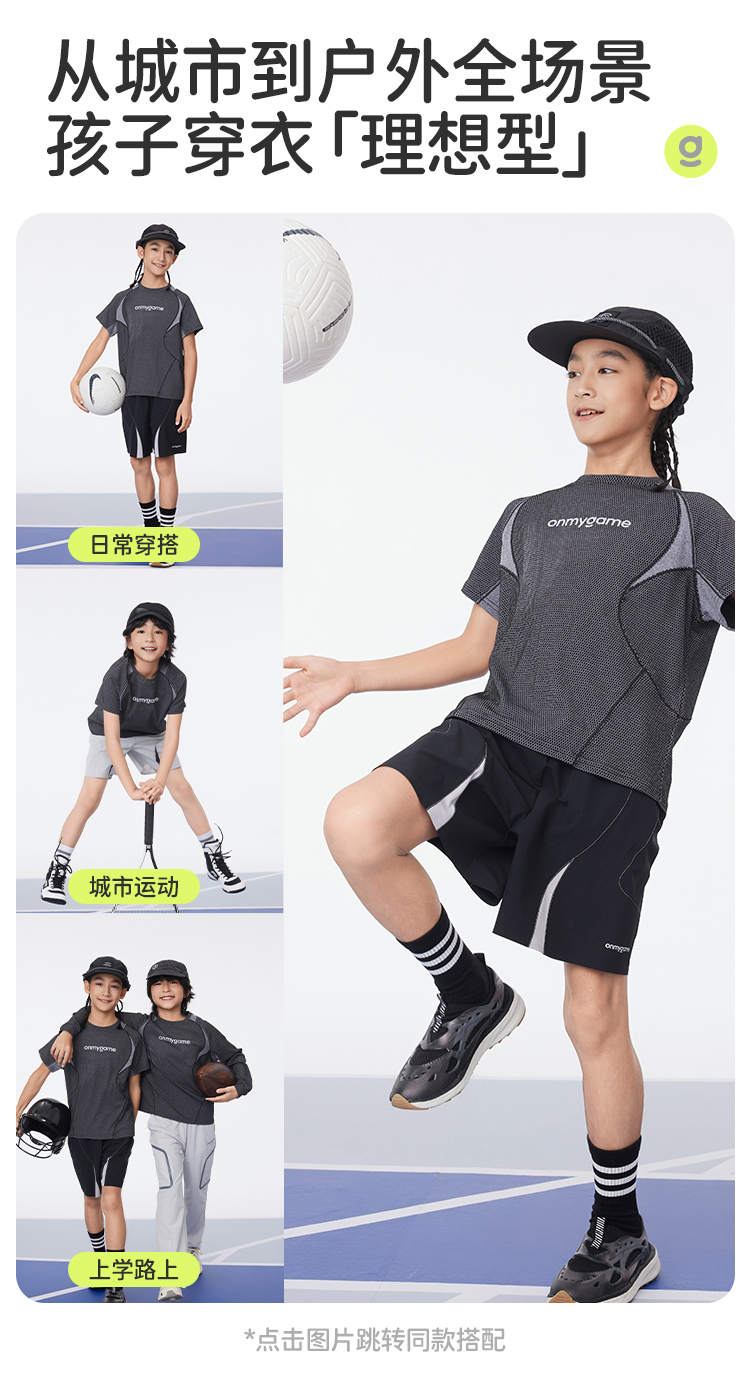 onmygame儿童专业运动品牌男女童款耐脏不易皱,柔软但不软踏