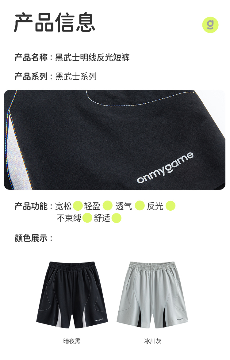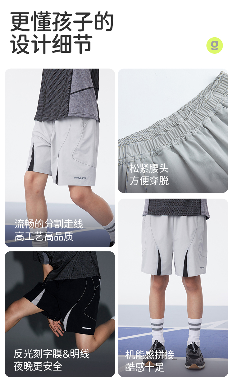 onmygame【黑武士】男童短裤儿童明线无缝贴合运动裤2025夏季新款