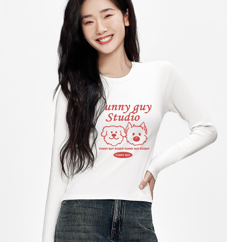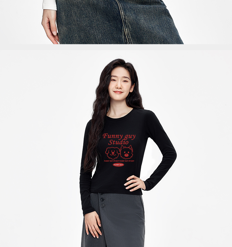 「棉的美学」秋冬高级感长袖T恤女个性印花显瘦慵懒风百搭打底衫