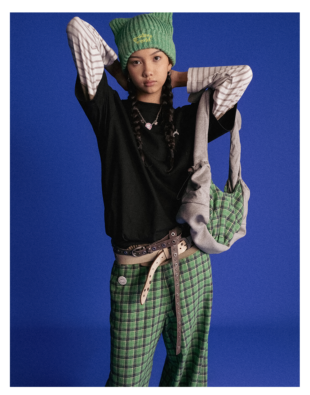 GOODBAI新款复古学院风V领格纹针织长袖开衫女
