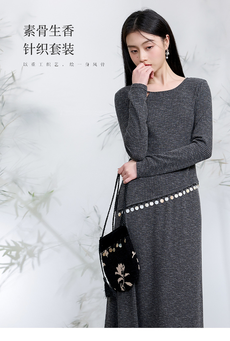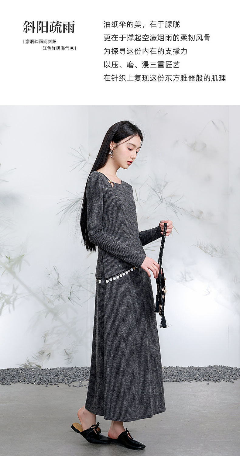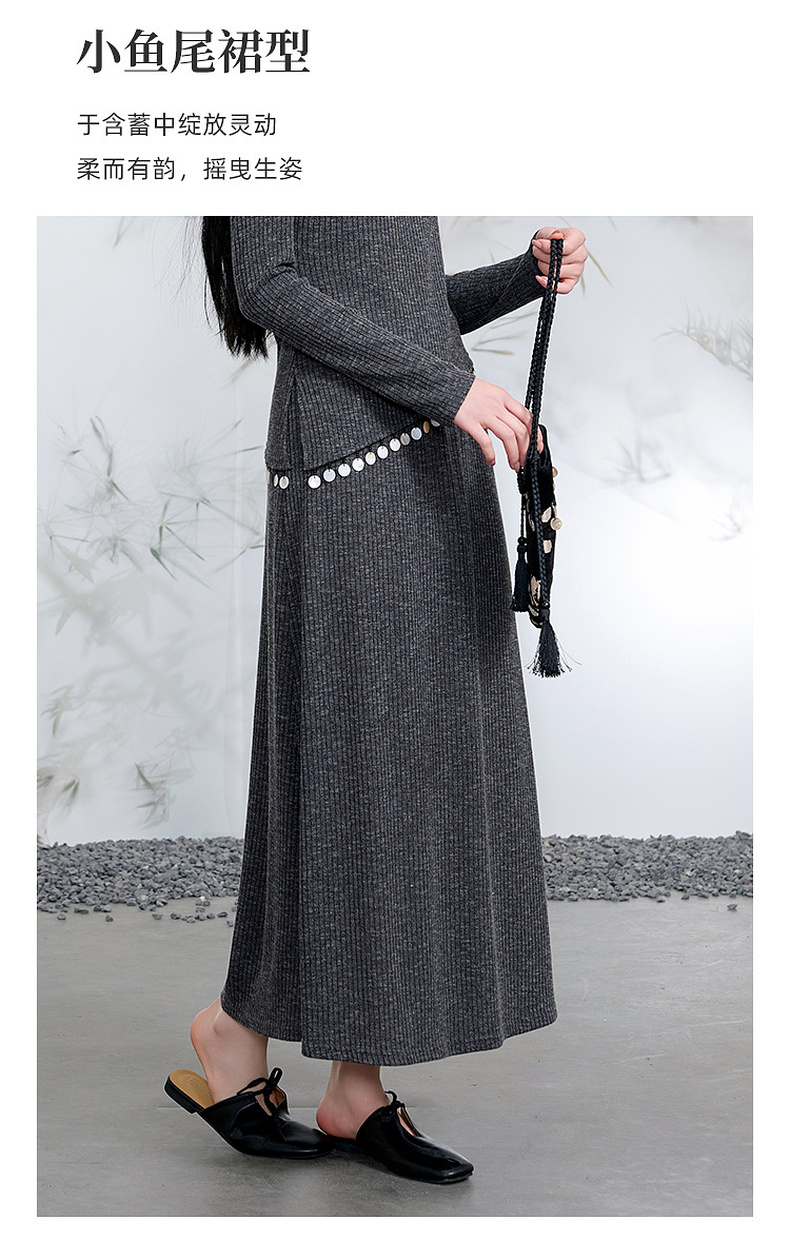 三彩【斜阳疏雨】2026春季新款新中式套装鱼尾半身裙两件套C