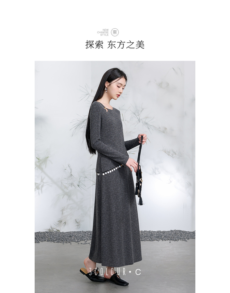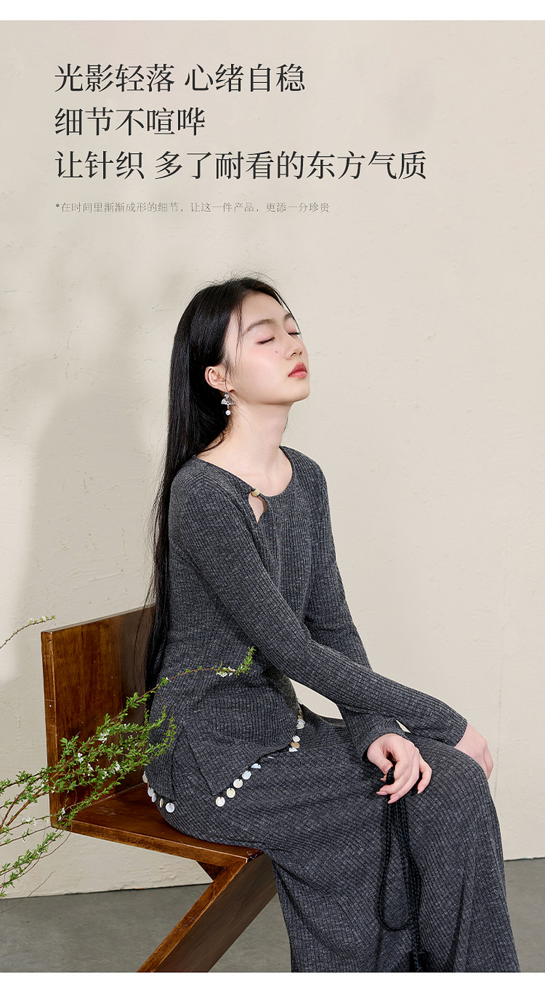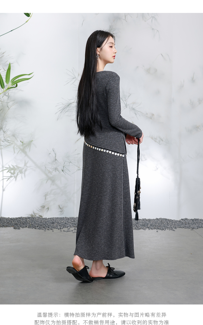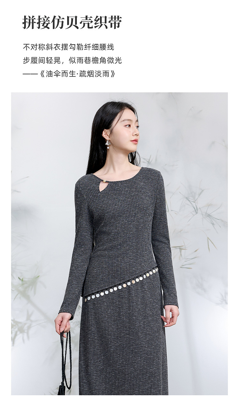 三彩【斜阳疏雨】2026春季新款新中式套装鱼尾半身裙两件套C