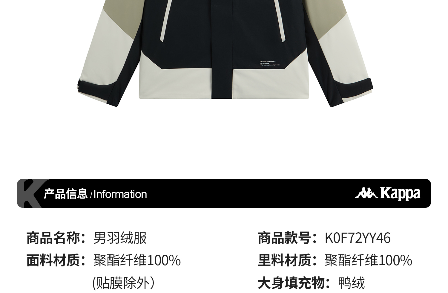 Kappa卡帕背靠背羽绒服男士2025新款冬季户外防风三合一工装外套K0F72YY46