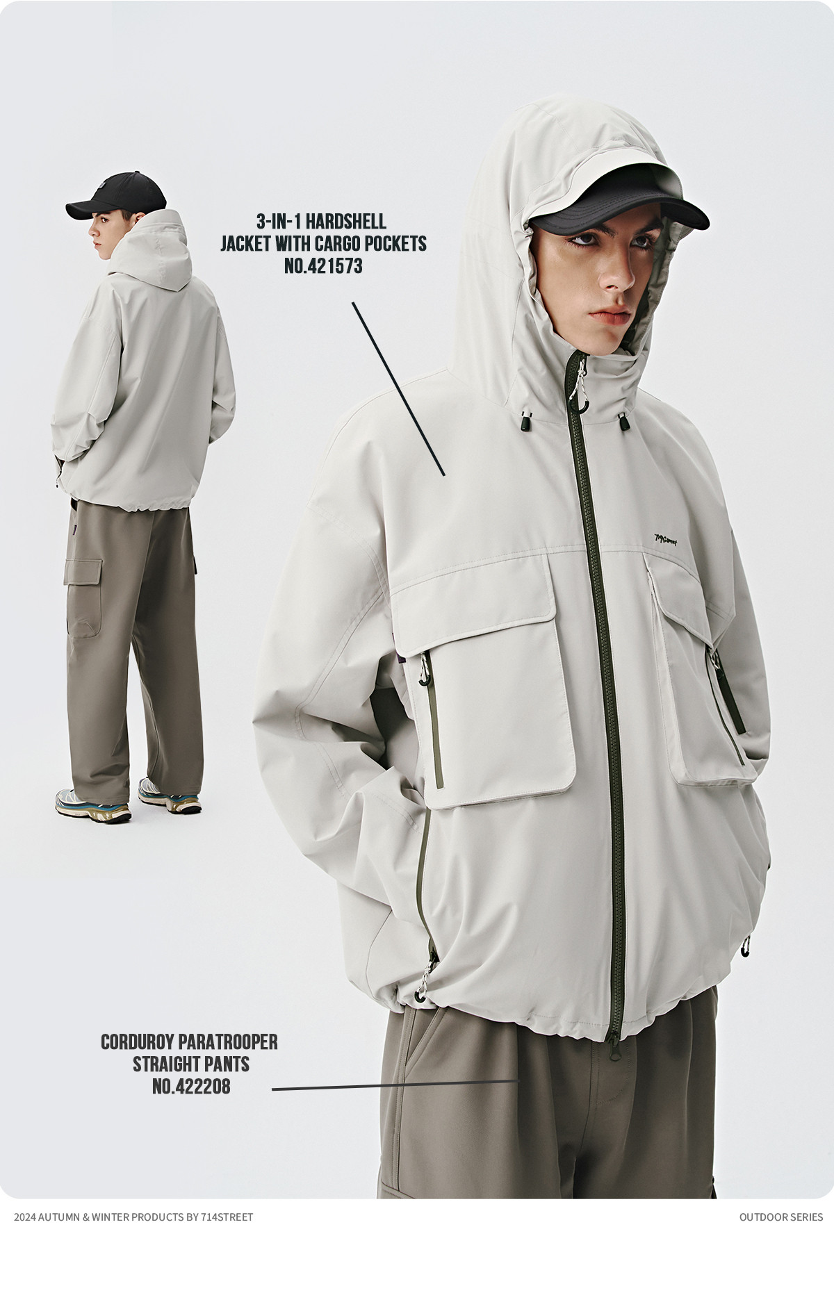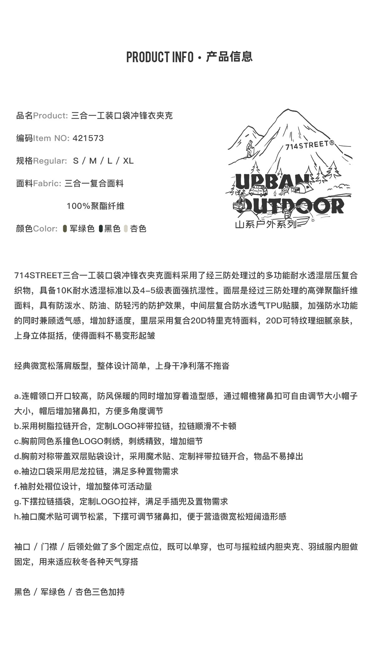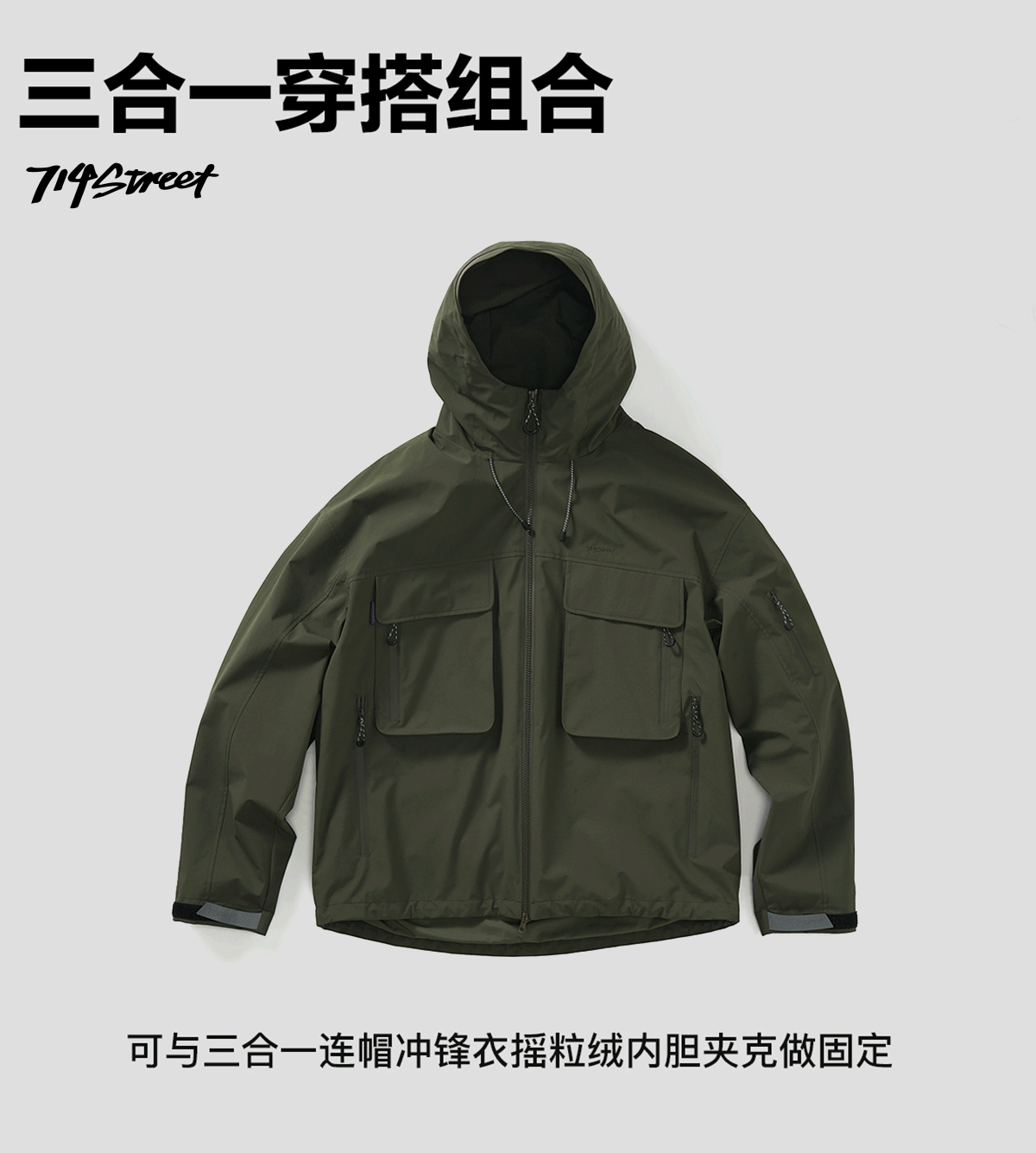 714street山系户外防水夹克三合一冲锋衣徒步登山服秋冬工装外套