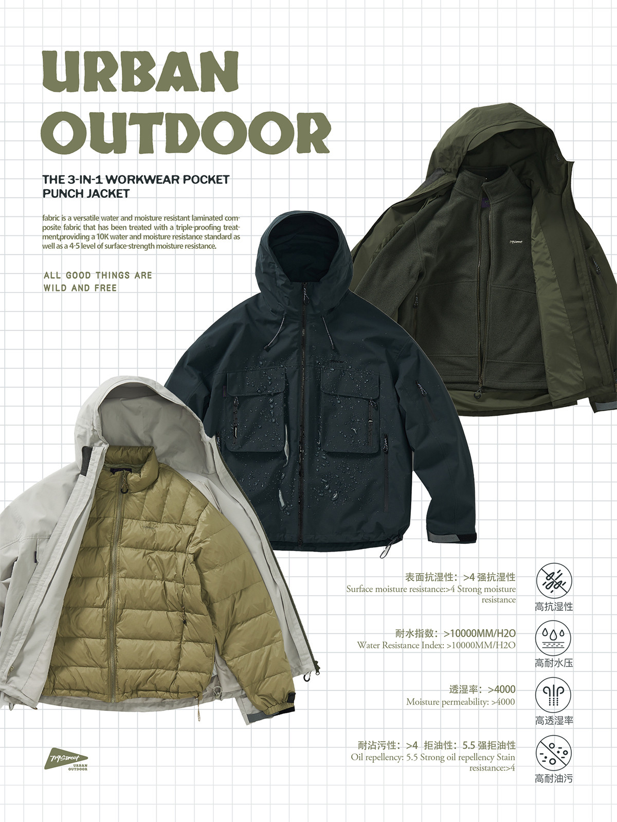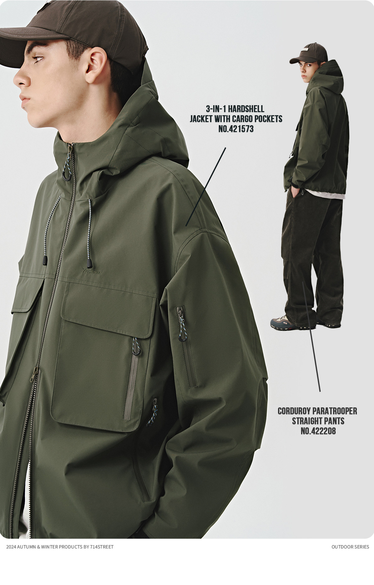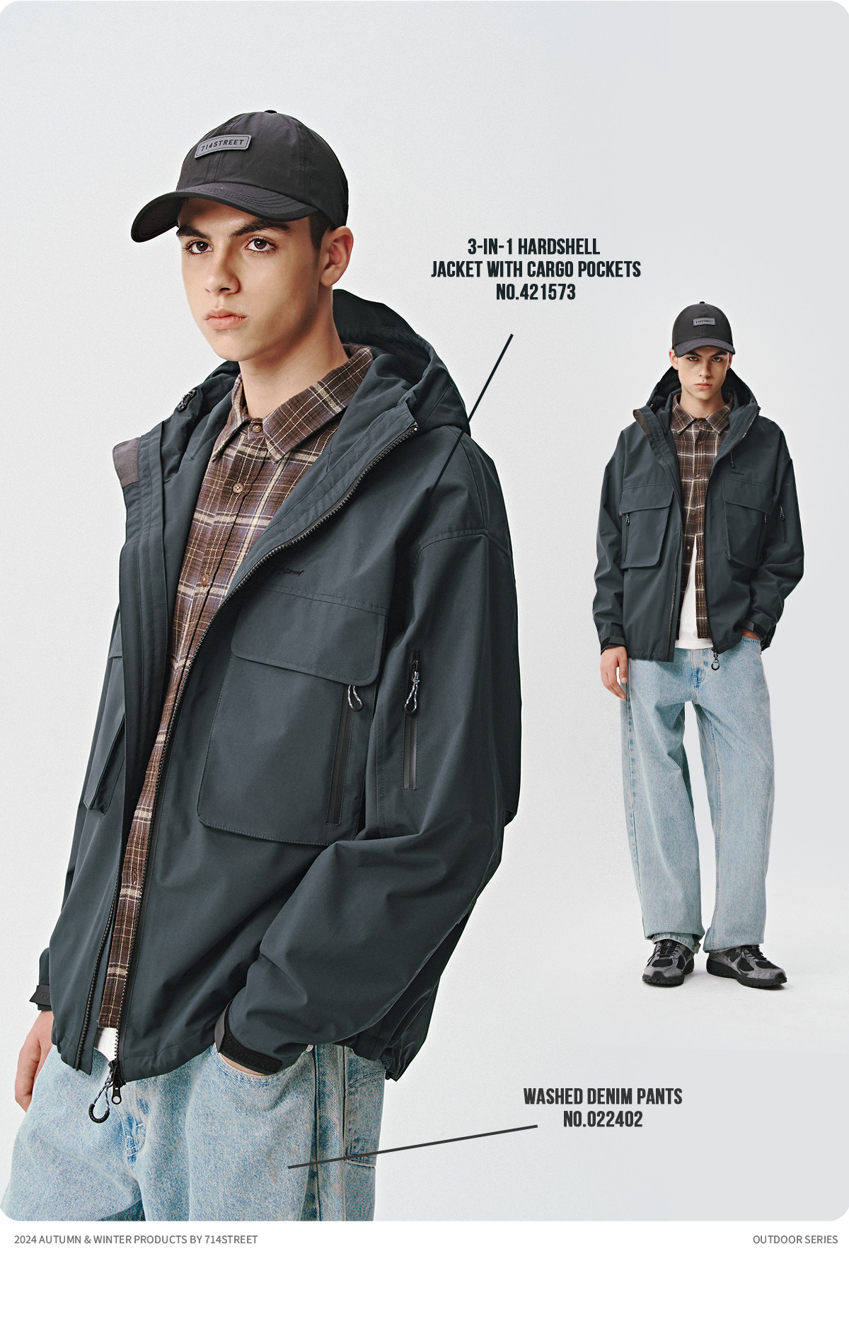 714street山系户外防水夹克三合一冲锋衣徒步登山服秋冬工装外套