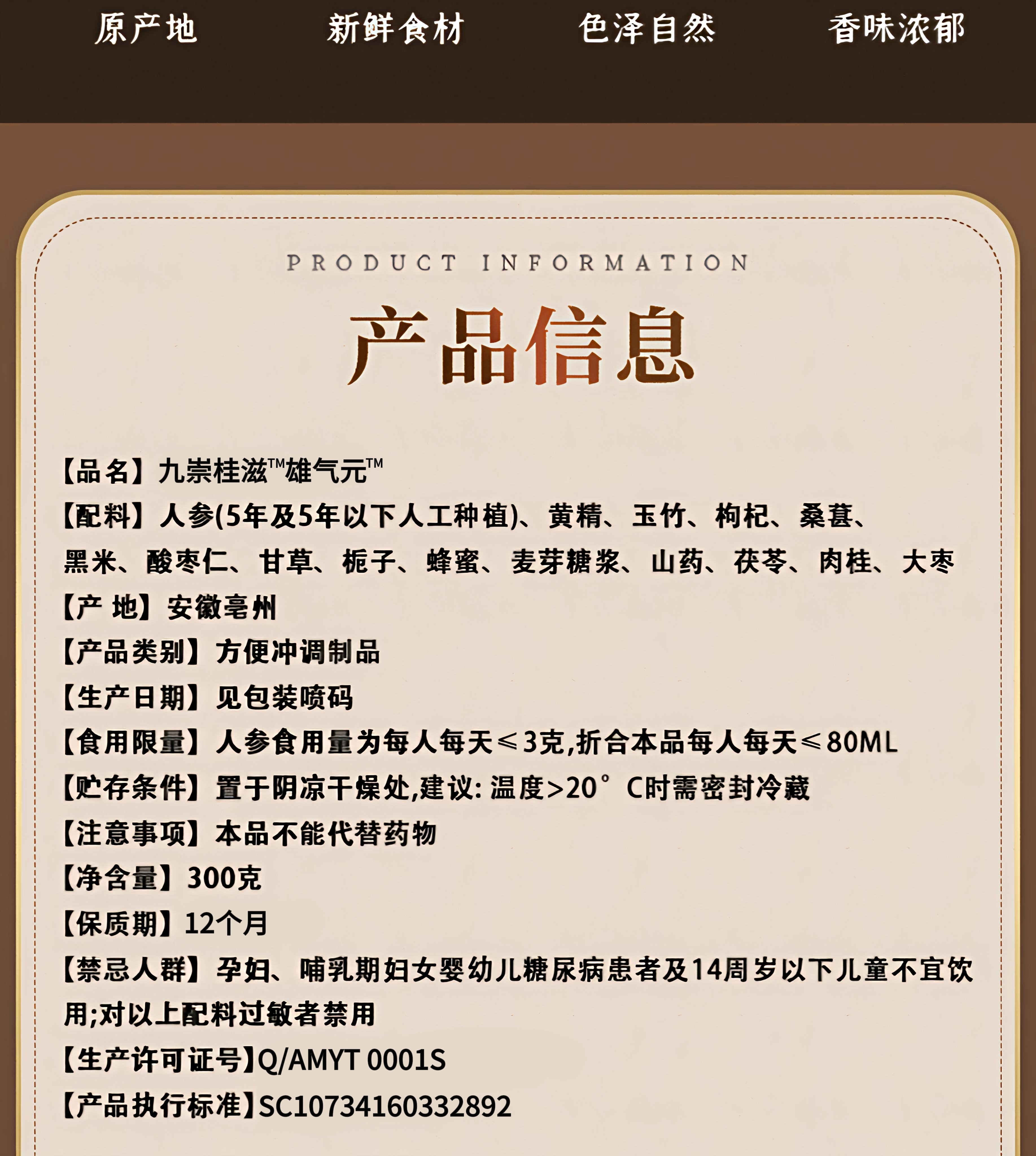 九崇桂滋雄气元具有补肾益气、缓解疲劳、提高性能力等多种功效。九崇桂滋雄气元由人参、枸杞、桑椹、黄精、酸枣仁等多种成分组成,这些成分有助于改善因肾虚和气虚而引起的头晕耳鸣、腰膝酸软、遗精滑精、口干咽燥等症状,还可以改善勃起硬度和房事时间。但要注意的是,未成年人、孕妇、哺乳期妇女以及对成分过敏的人群应避免使用,确保安全。