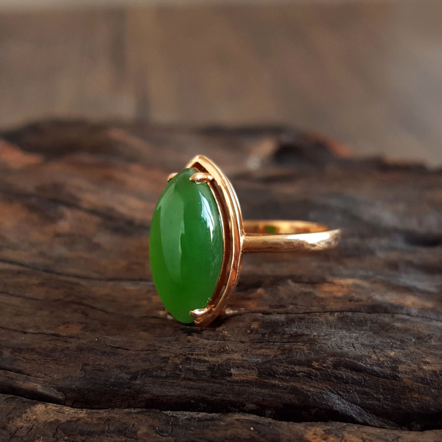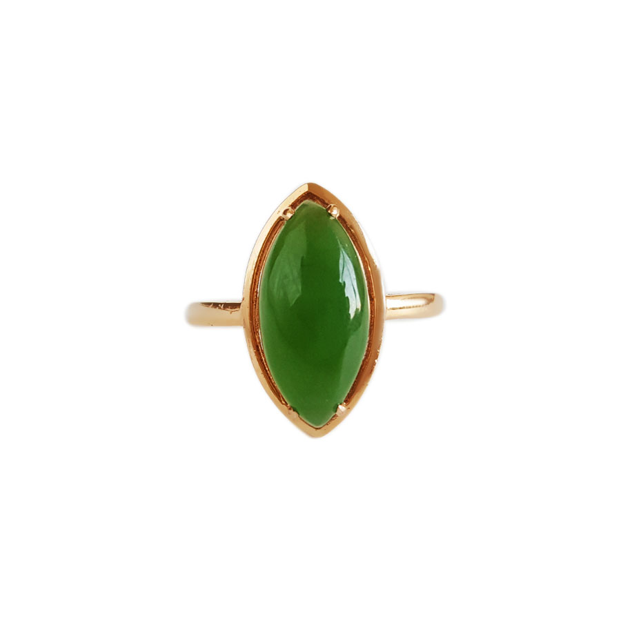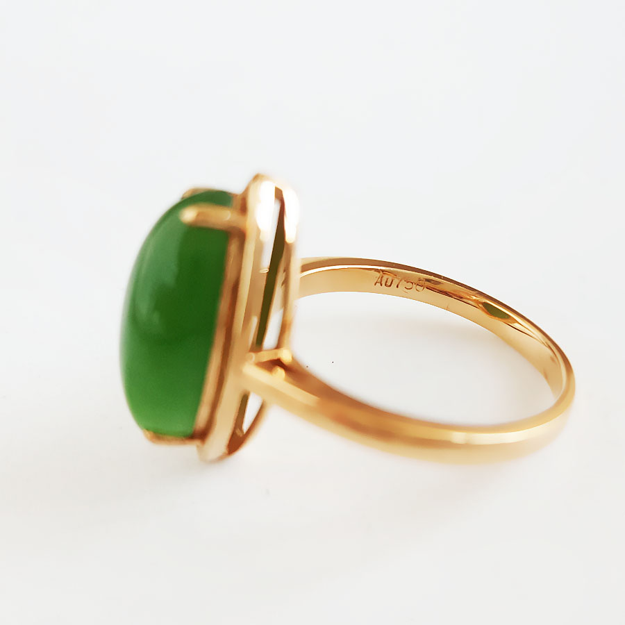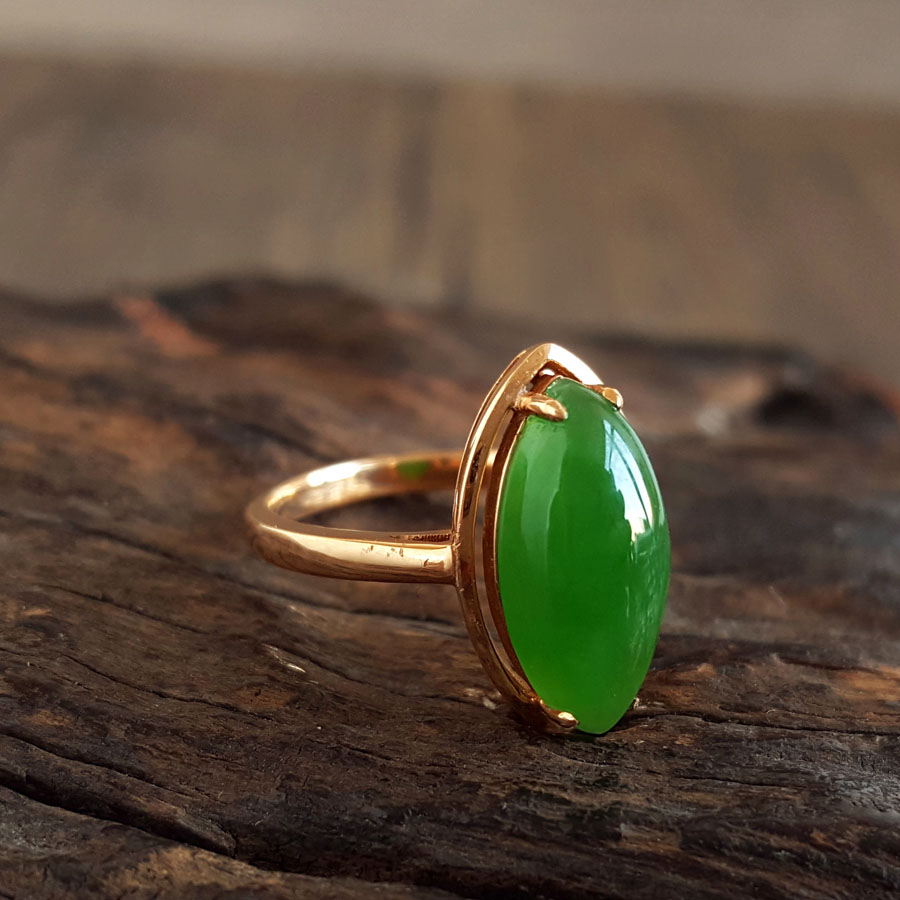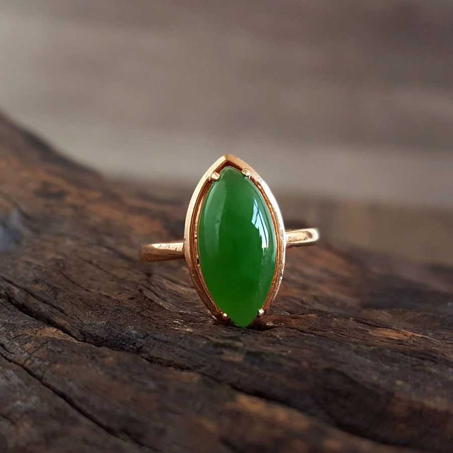 名称 | AU750玫瑰金镶天然无黑点菠菜绿马眼形和田玉碧玉戒指 |