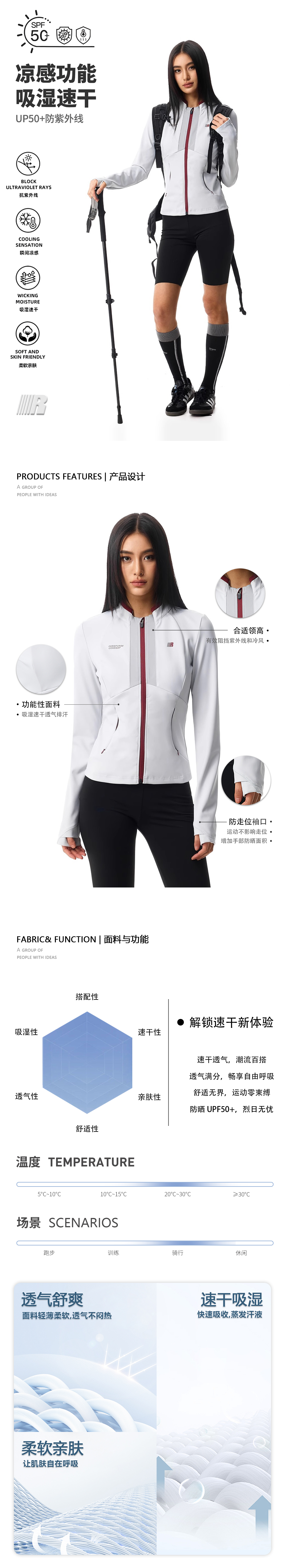 FDR官方店 速干长袖运动骑行服开衫外套女春季拉链修身显瘦上衣