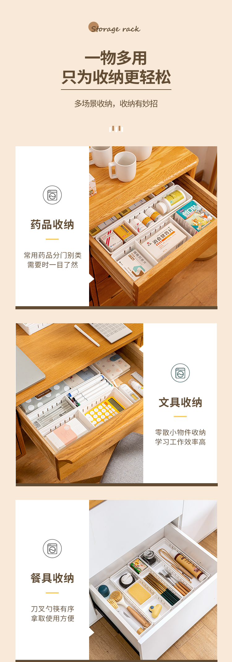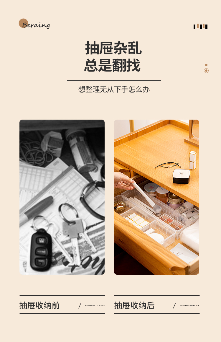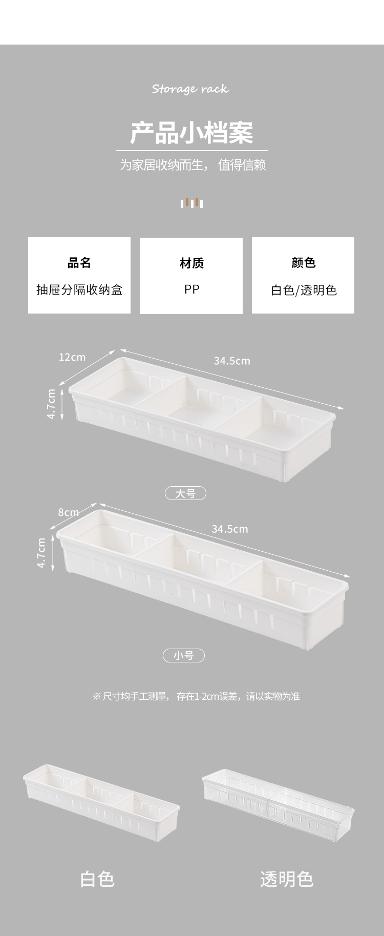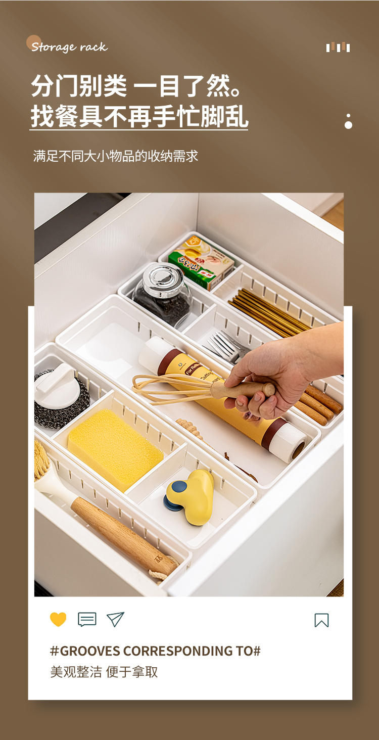 【白色款/透明款】娜家抽屉隔板收纳盒