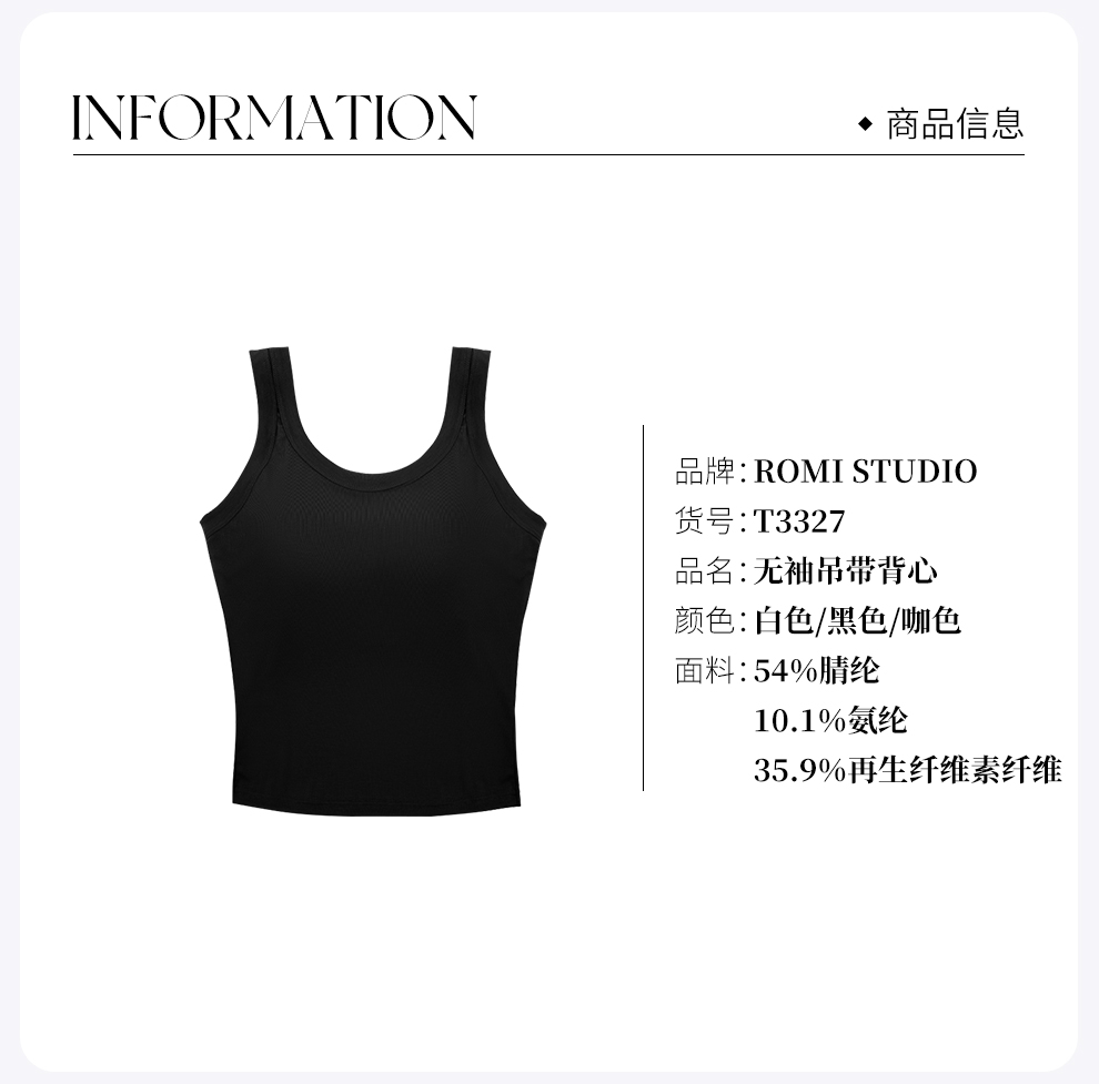ROMI STUDIO【高品质】简约百搭遮副乳打底纯色带胸垫背心吊带T3327