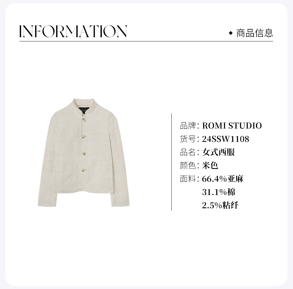 ROMI STUDIO“隐贵绅士”亚麻棉混纺肌理感立领短西装外套24SSW1108