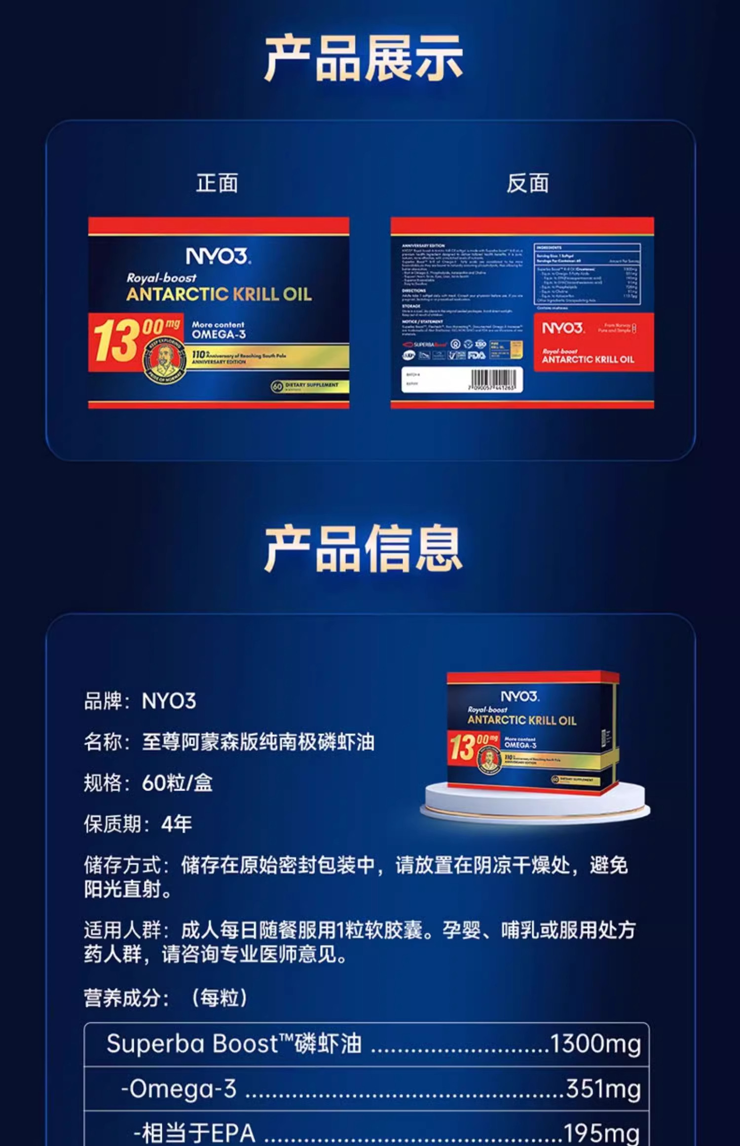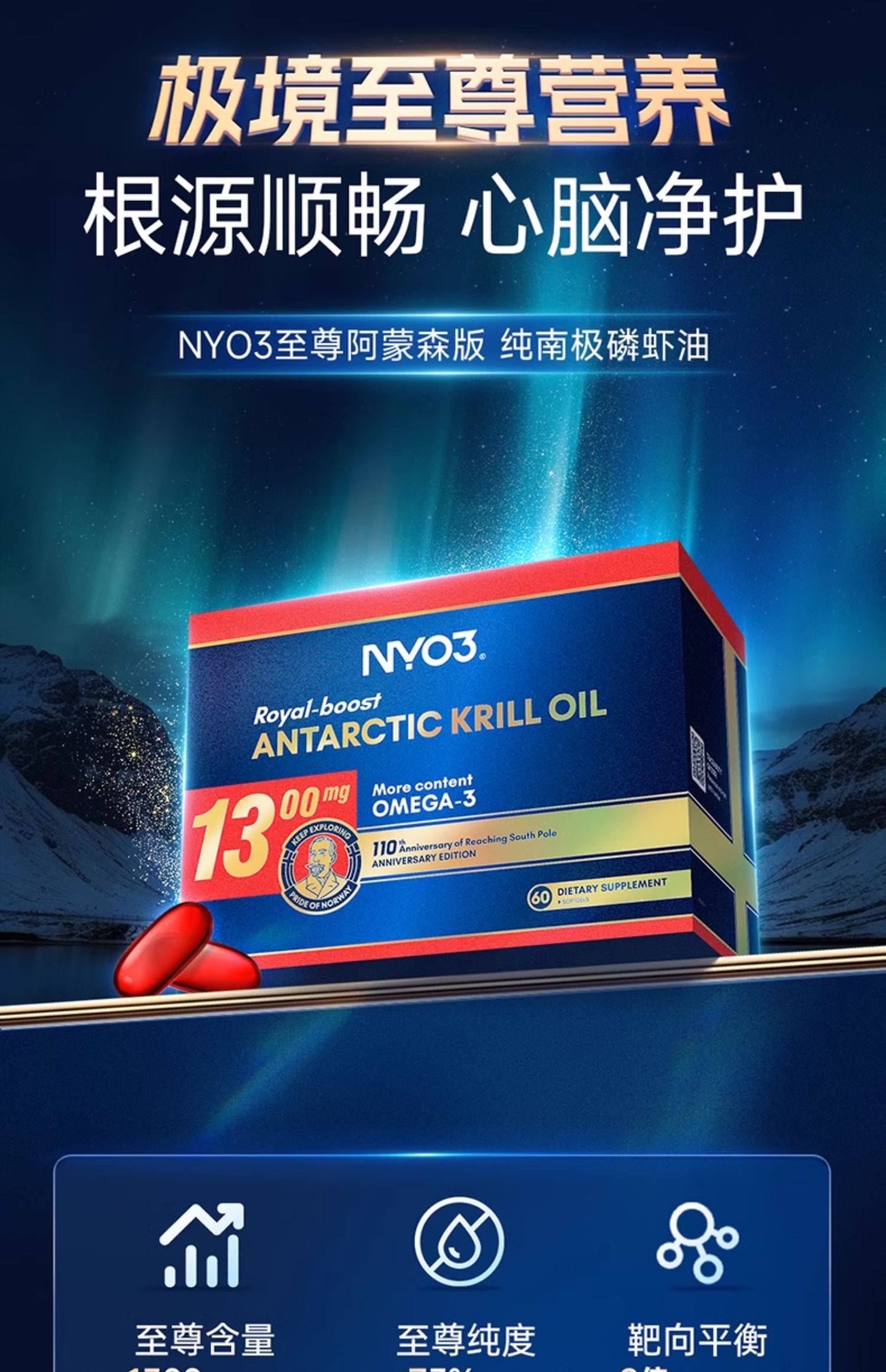 【至尊阿蒙森】NYO3挪威进口 磷虾油1300mg高含量软胶囊鱼油 60粒