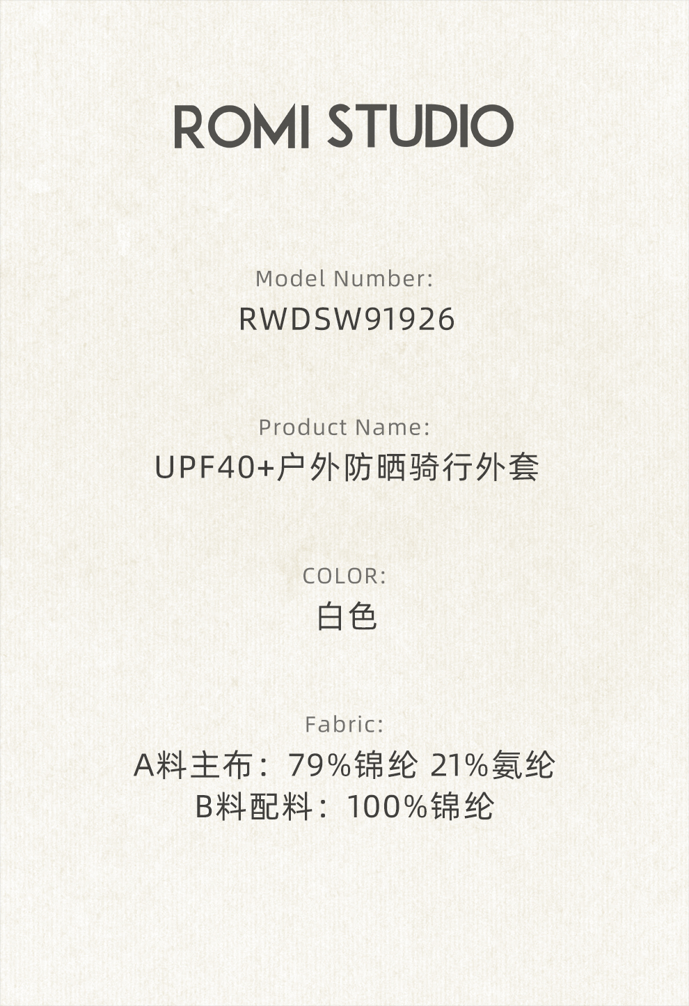 ROMI STUDIO“专业运动”弹力凉感修身双拉链调节外套RWDSW91926