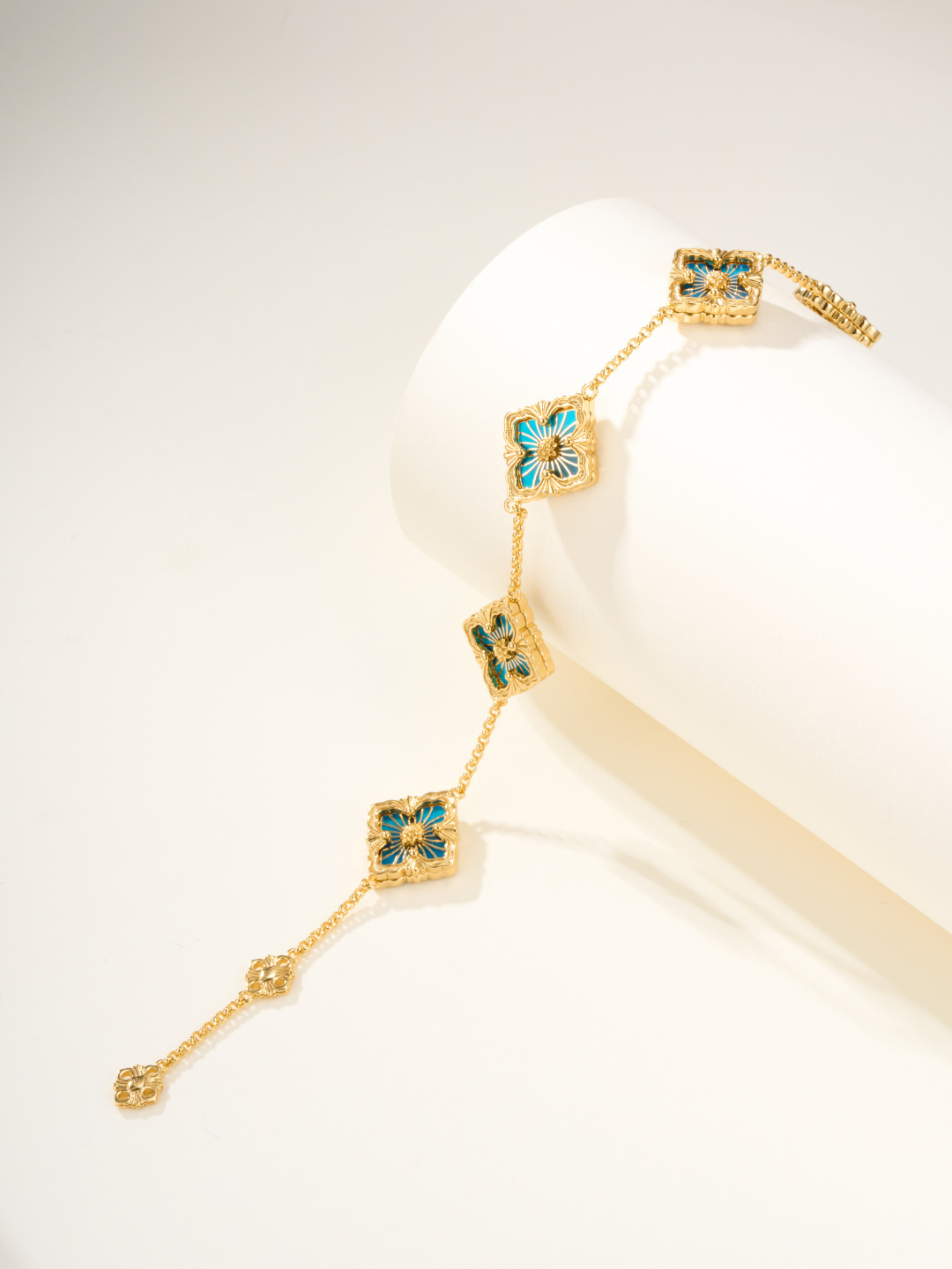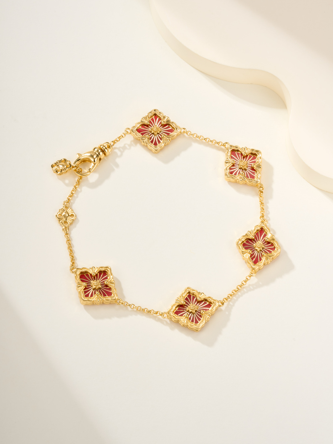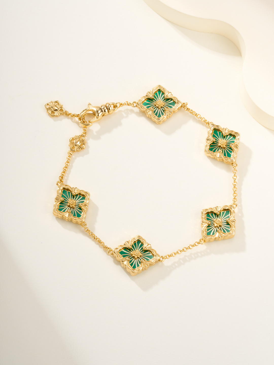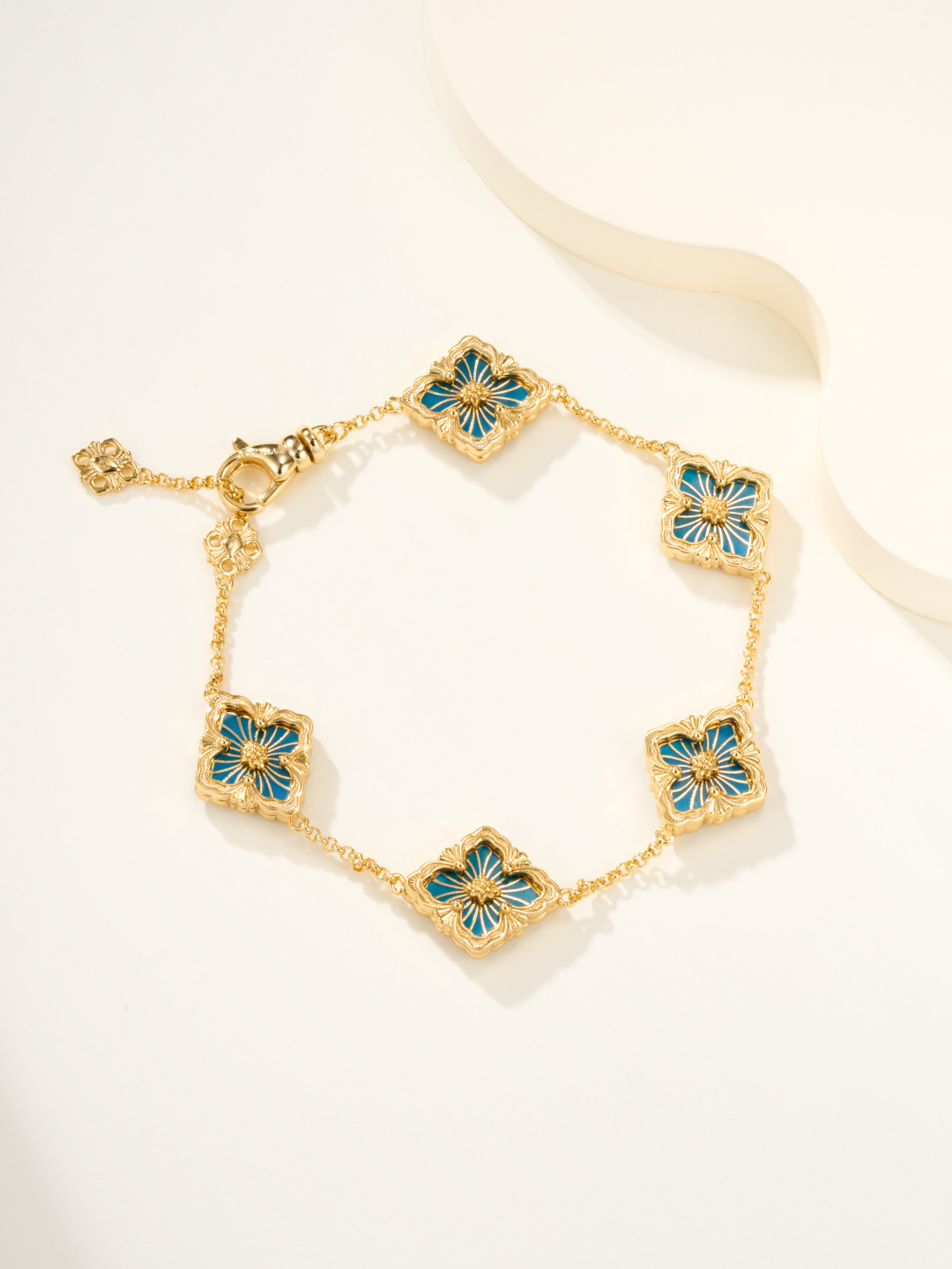 布契拉提珐琅五花手链(小号款) 浓郁的历史气息,贵族宫廷范,华贵与精美感十足,带着它就是品味的象征。厌倦了四叶草系列可以尝试一下此系列,在气质与工艺上Opera Tulle系列更具特色价格略贵。
