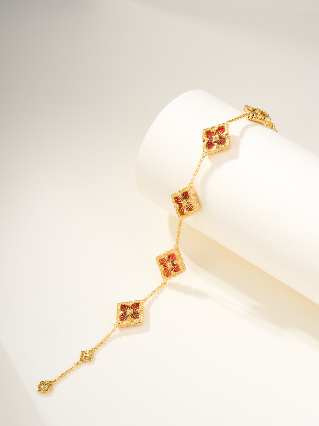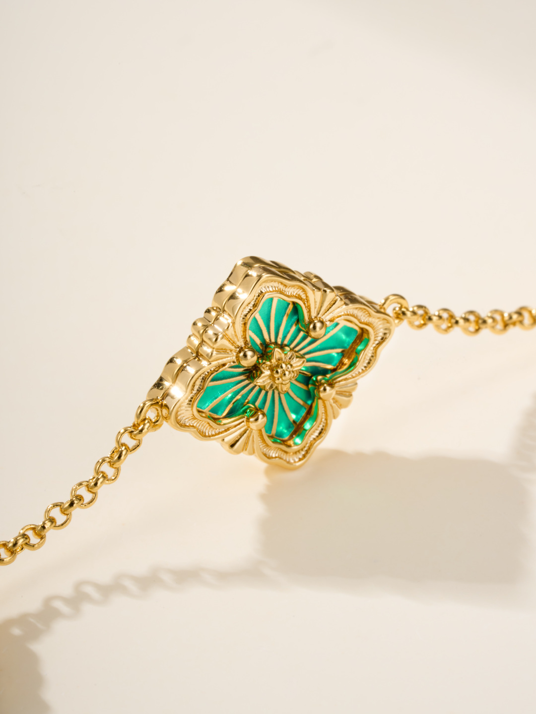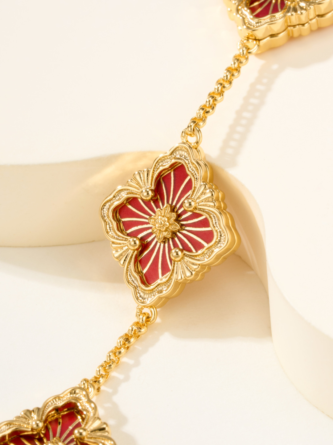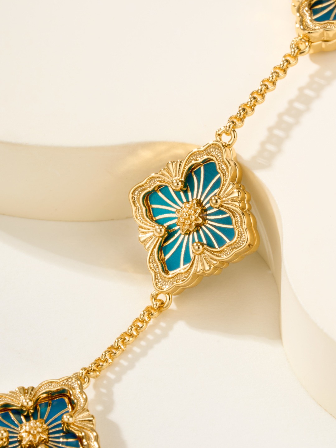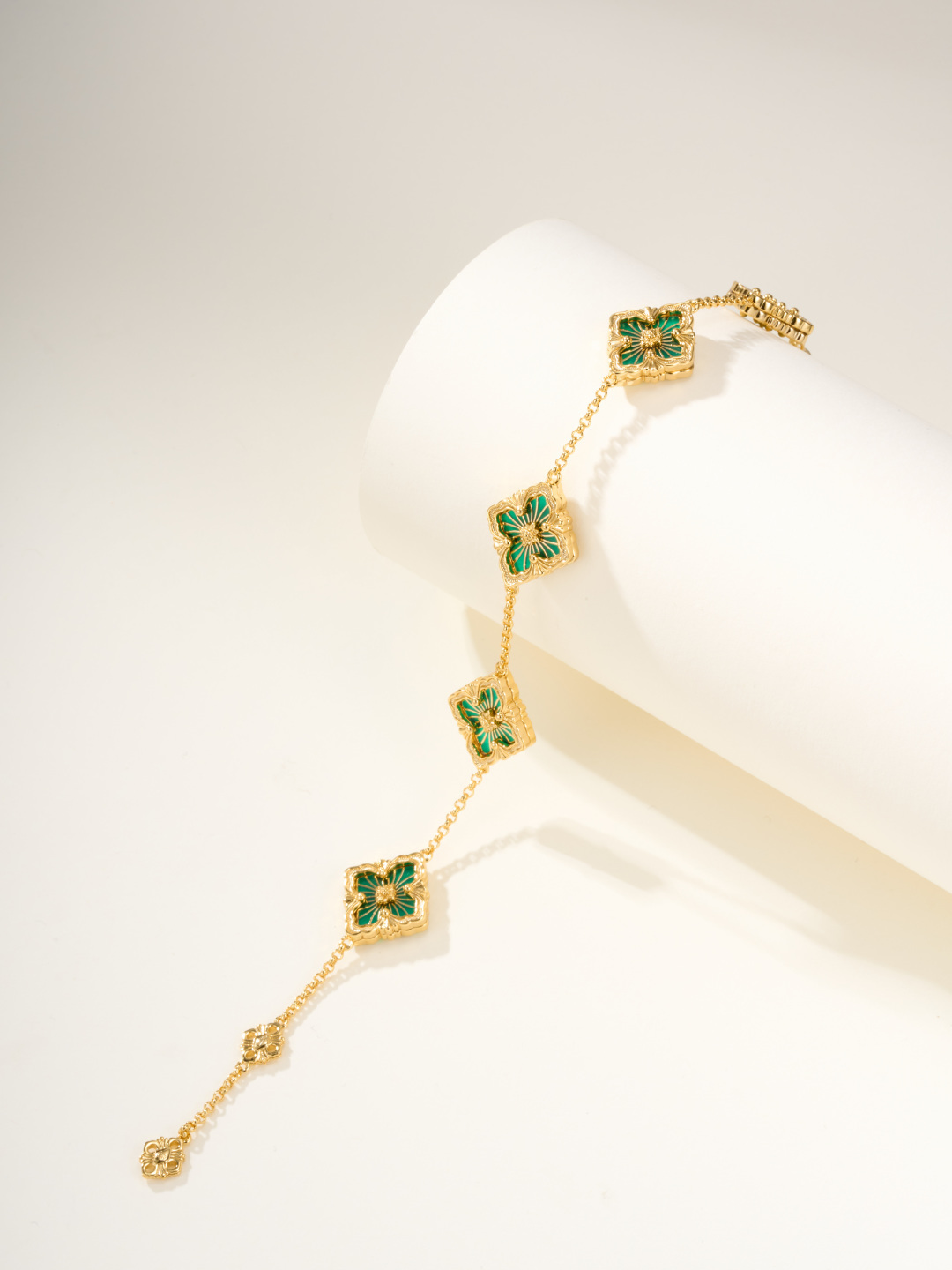 布契拉提珐琅五花手链(小号款) 浓郁的历史气息,贵族宫廷范,华贵与精美感十足,带着它就是品味的象征。厌倦了四叶草系列可以尝试一下此系列,在气质与工艺上Opera Tulle系列更具特色价格略贵。