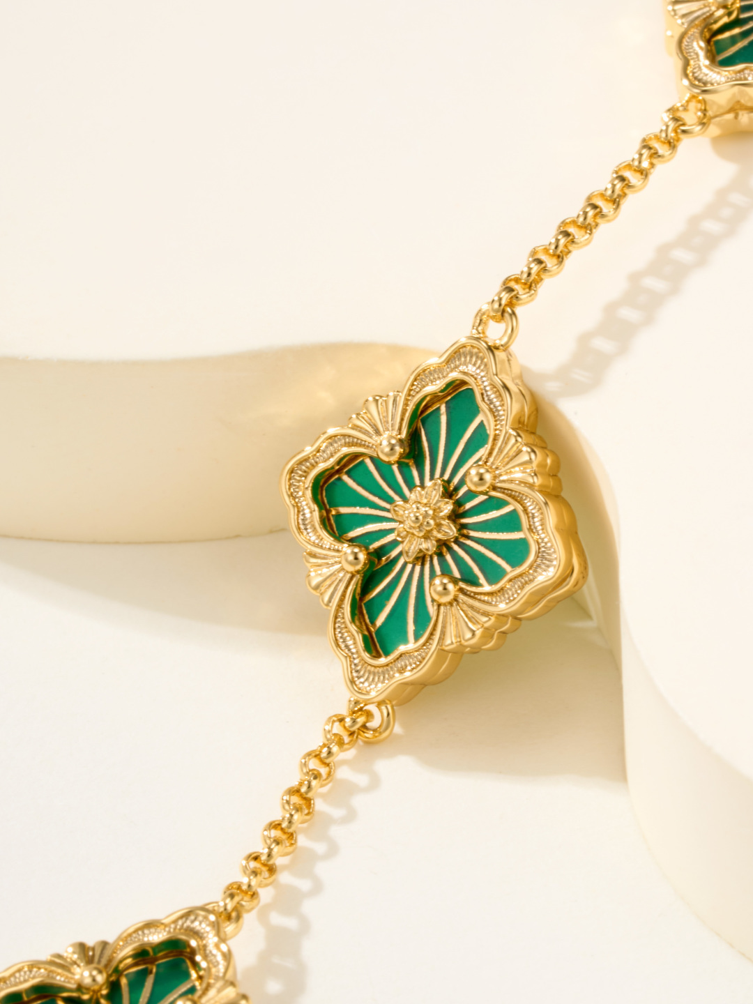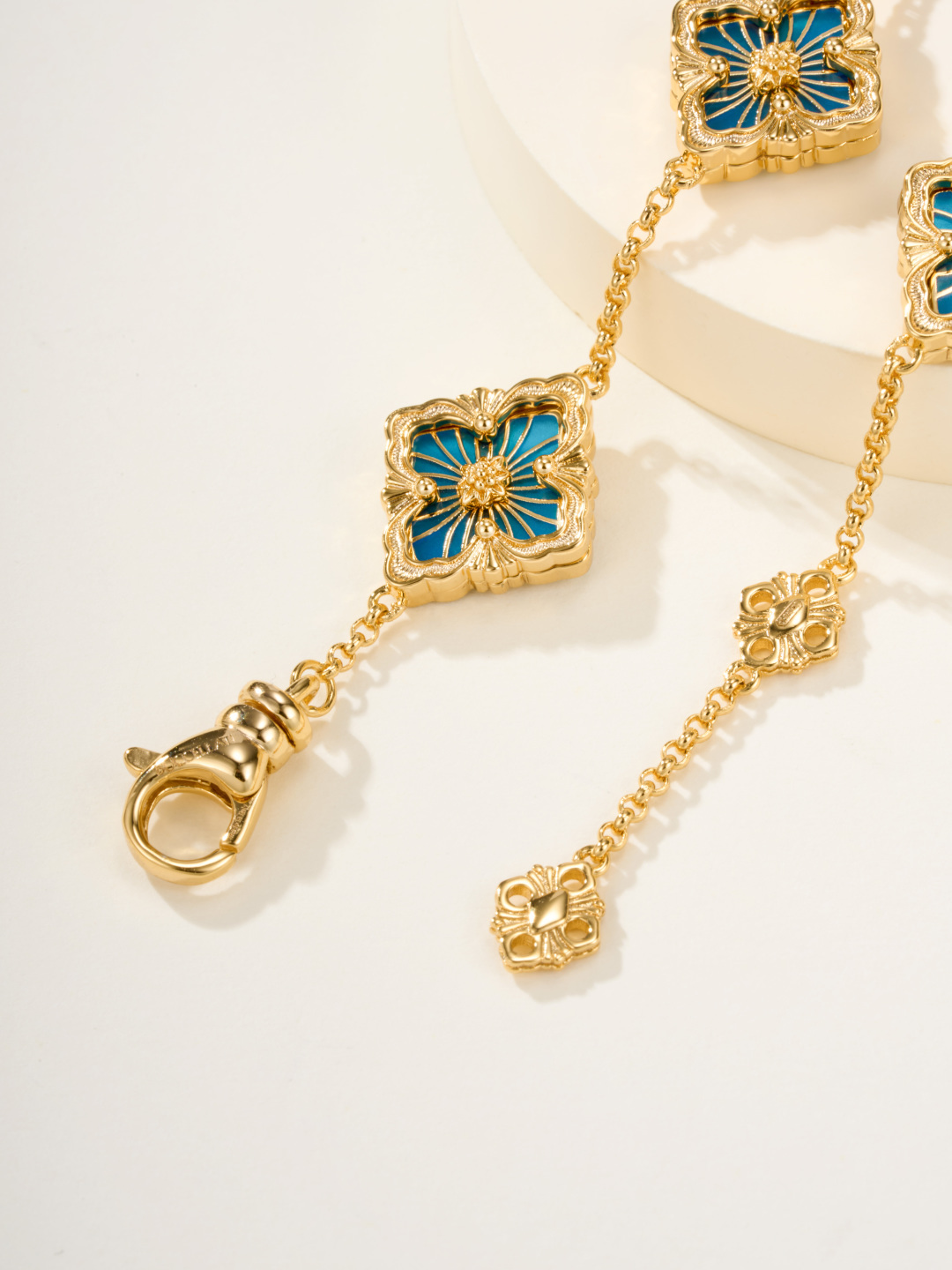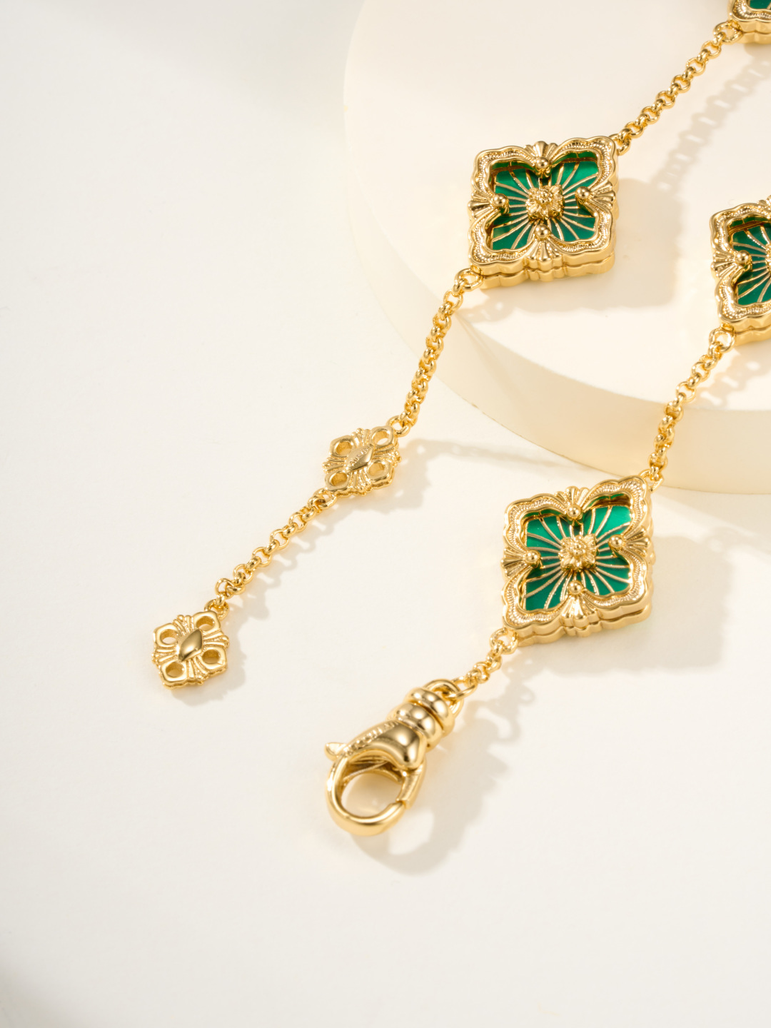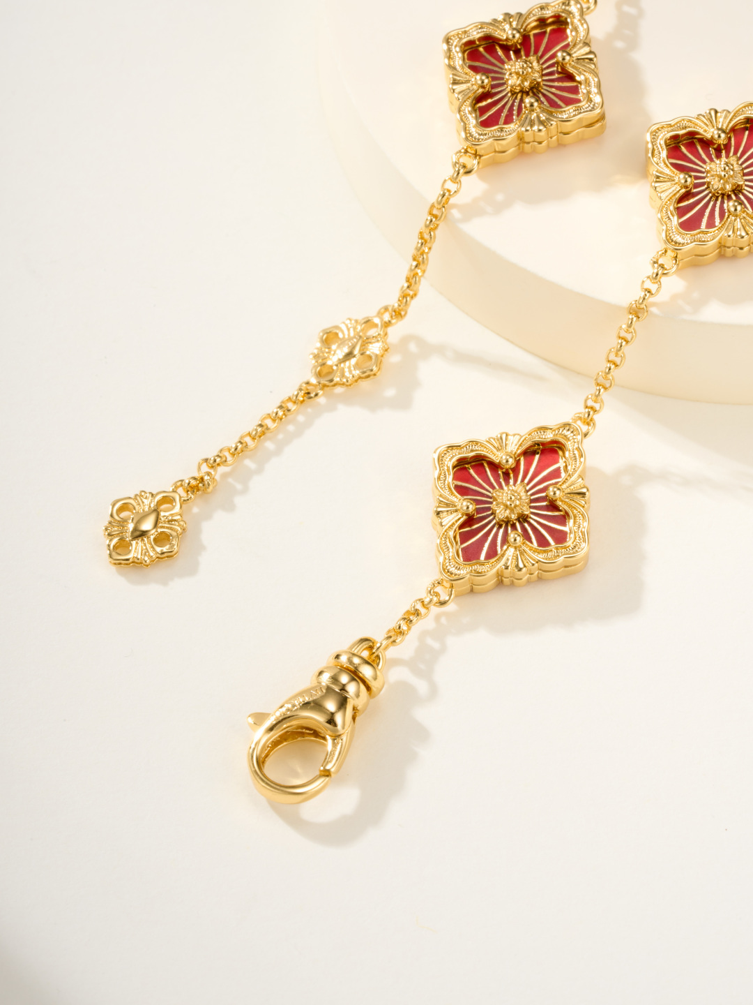 布契拉提珐琅五花手链(小号款) 浓郁的历史气息,贵族宫廷范,华贵与精美感十足,带着它就是品味的象征。厌倦了四叶草系列可以尝试一下此系列,在气质与工艺上Opera Tulle系列更具特色价格略贵。