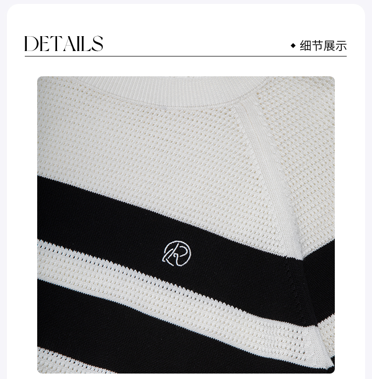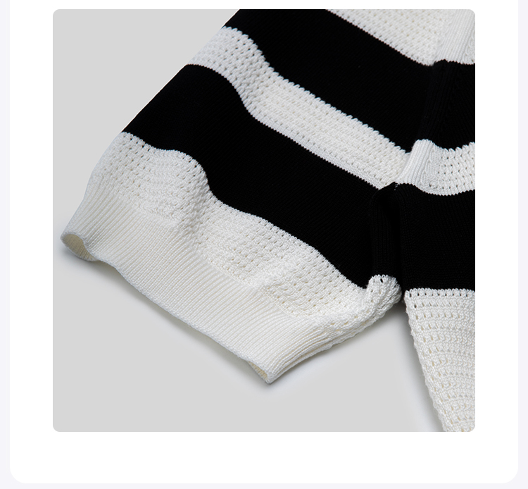 ROMI STUDIO【高品质】简约百搭 条纹镂空拼色针织短袖 M3466