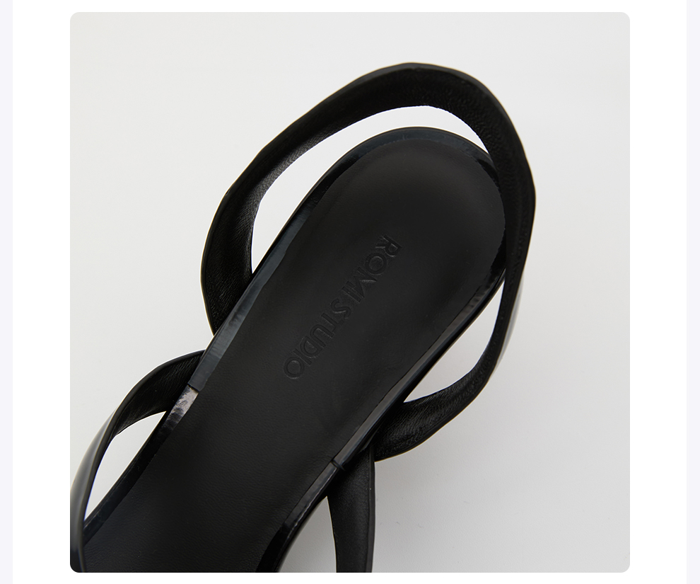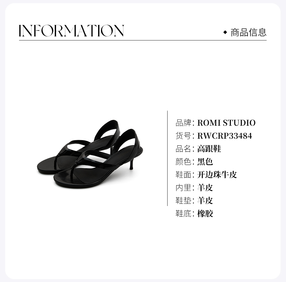 ROMI STUDIO 开边珠牛皮和羊皮革黑色夹趾细高跟凉鞋 RWCRP33484