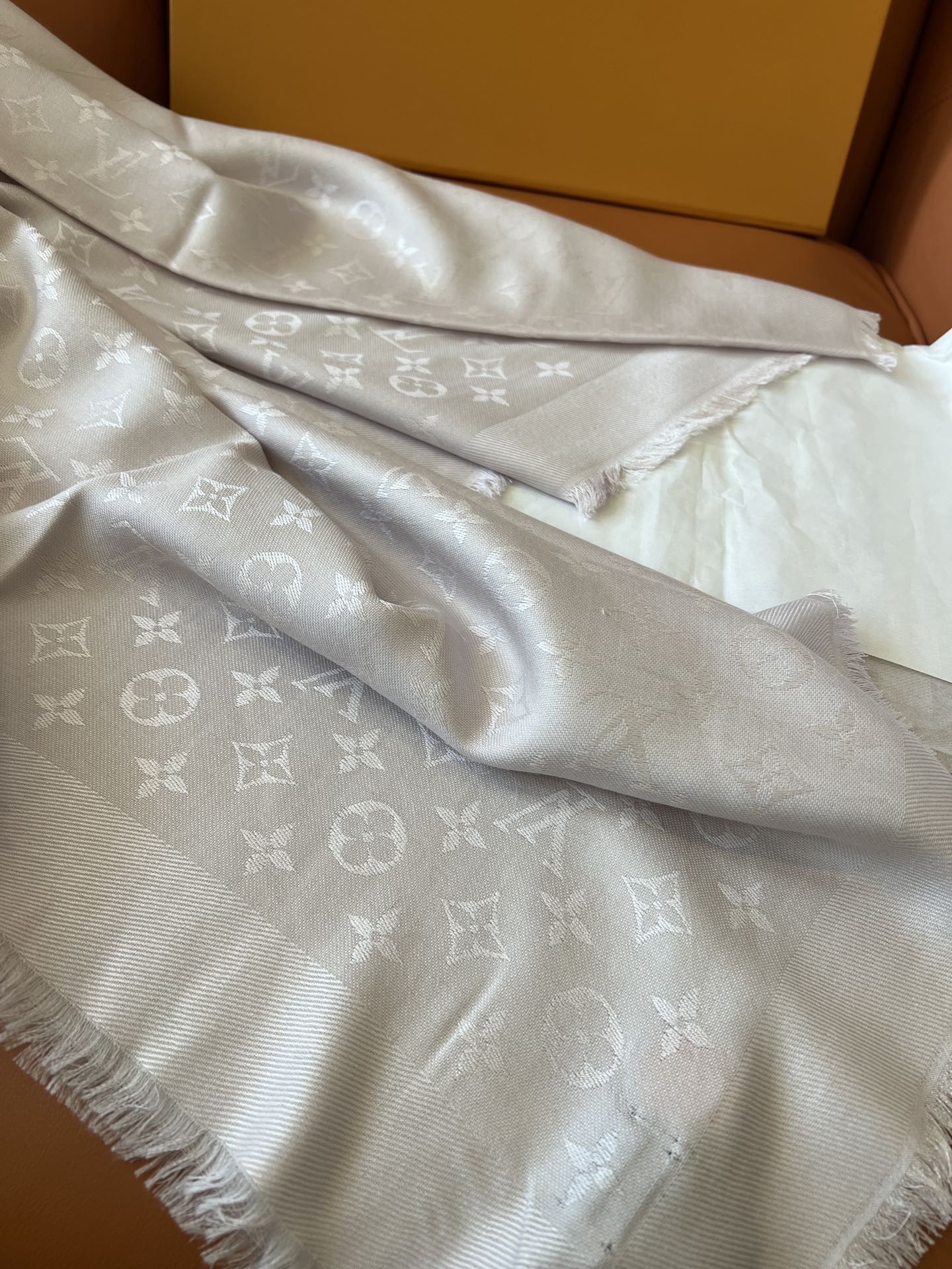 [珍珠灰色M78161]驴牌#只用三秒就可以决定买的经典不朽款~百搭 好看 秋季最最合适的单品_60%桑蚕丝40%羊毛很柔软一点也不会扎肉~142.5x142.5cm大尺寸无论披肩还是围脖都非常合适