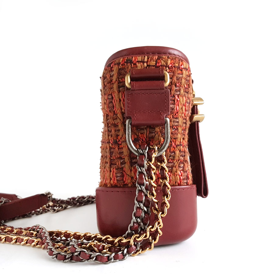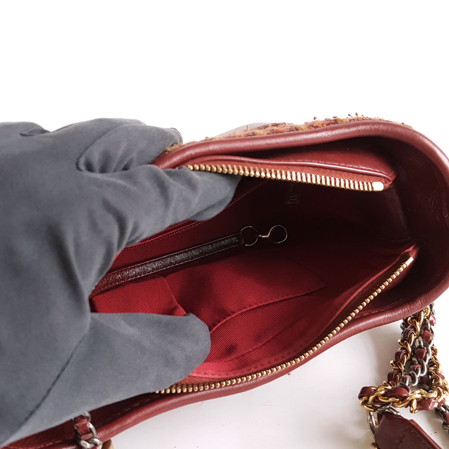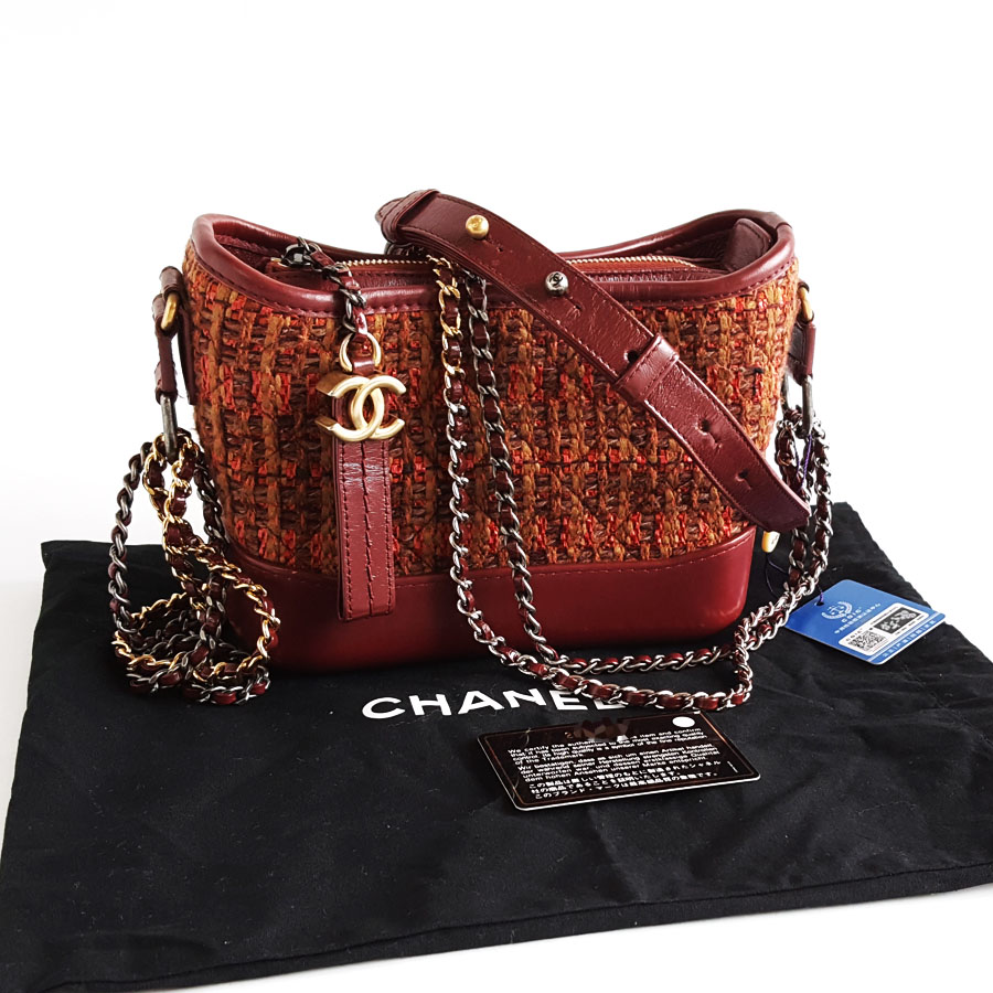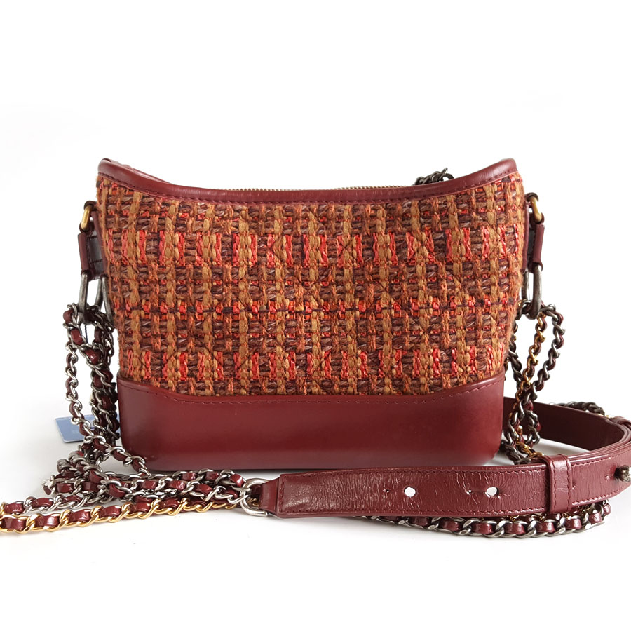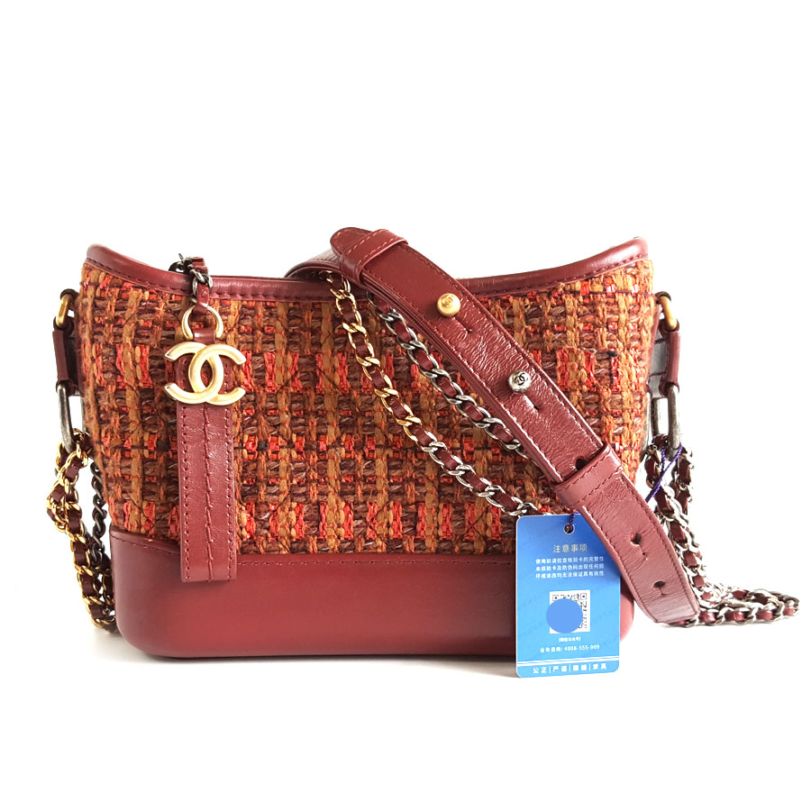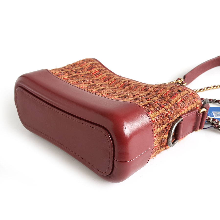 【95新】CHANEL香奈儿Gabrielle系列A91810 Y83702 K0917小号红色毛呢编织流浪包单肩斜挎包女士080226AK15