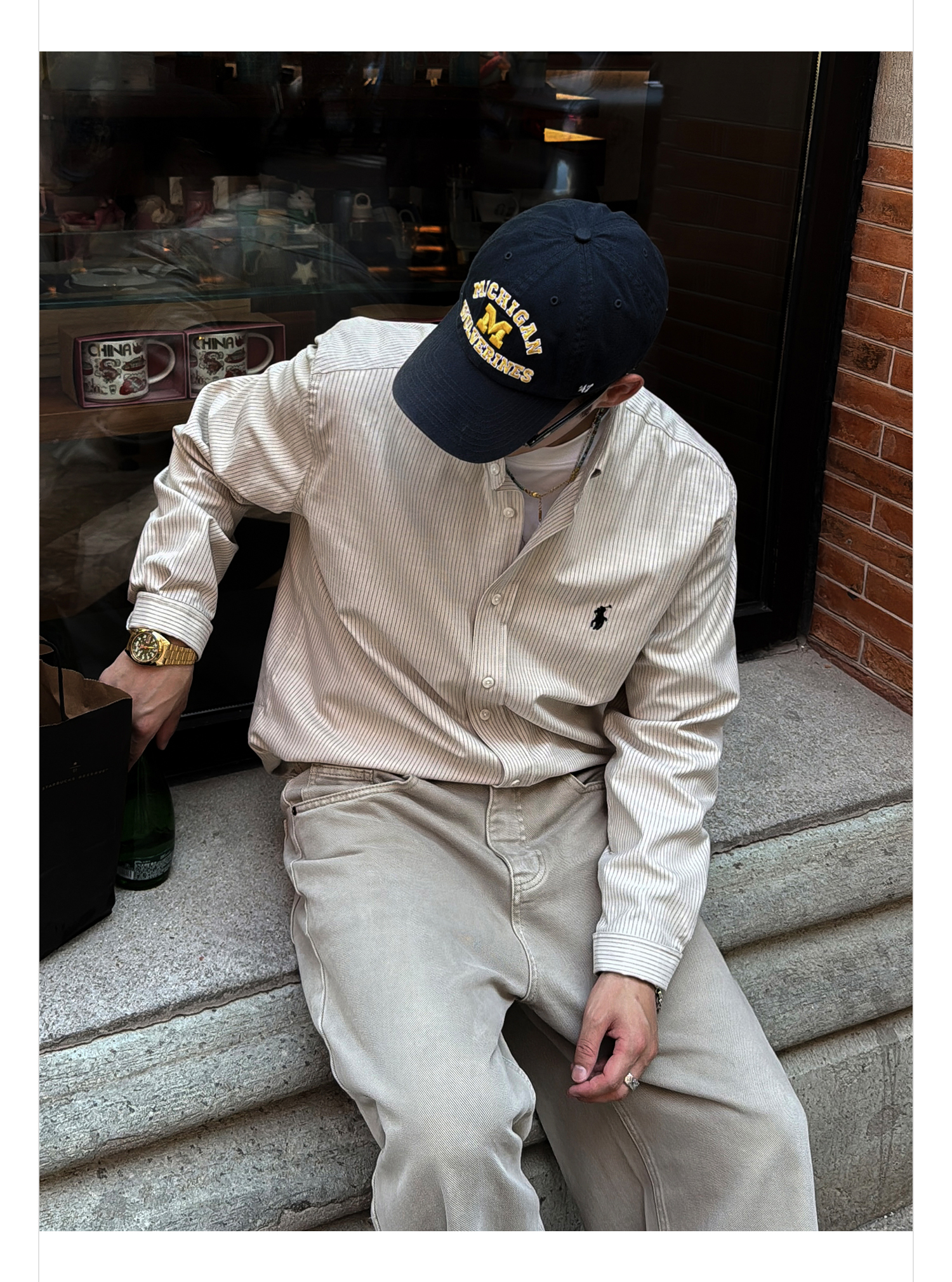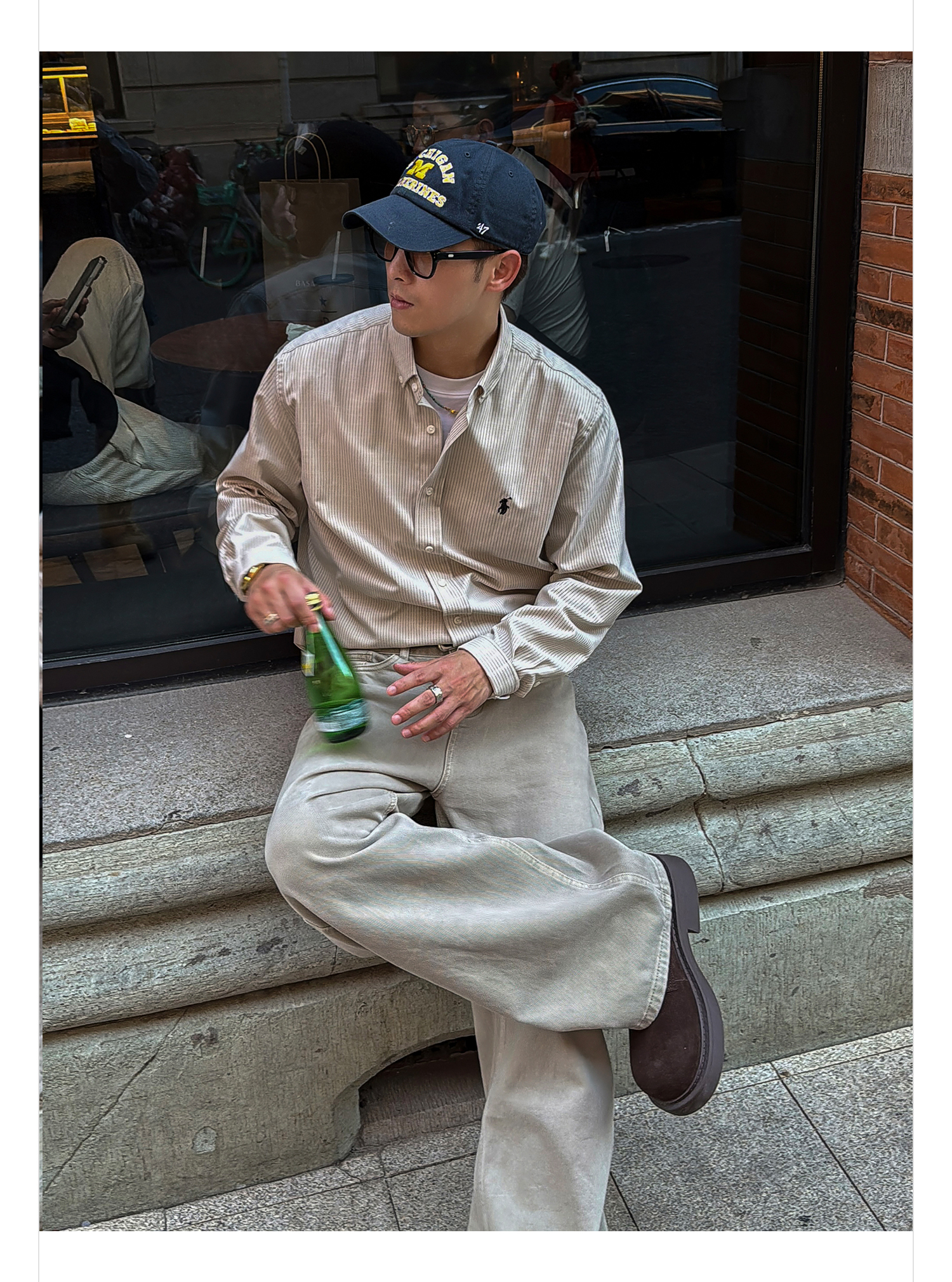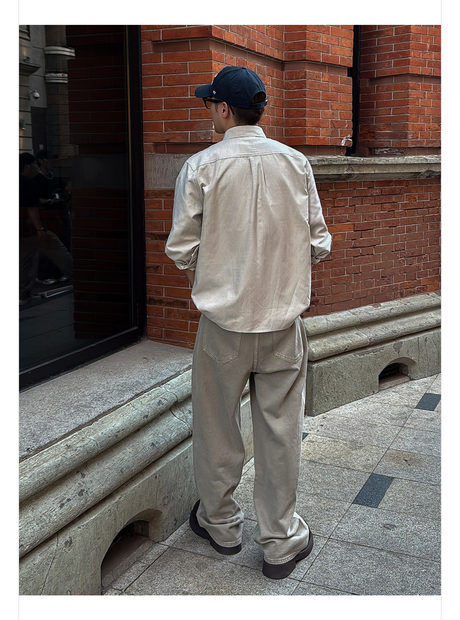 徐太浪【简约刺绣 竖条纹】150g透气长袖衬衫男春秋休闲通勤衬衣