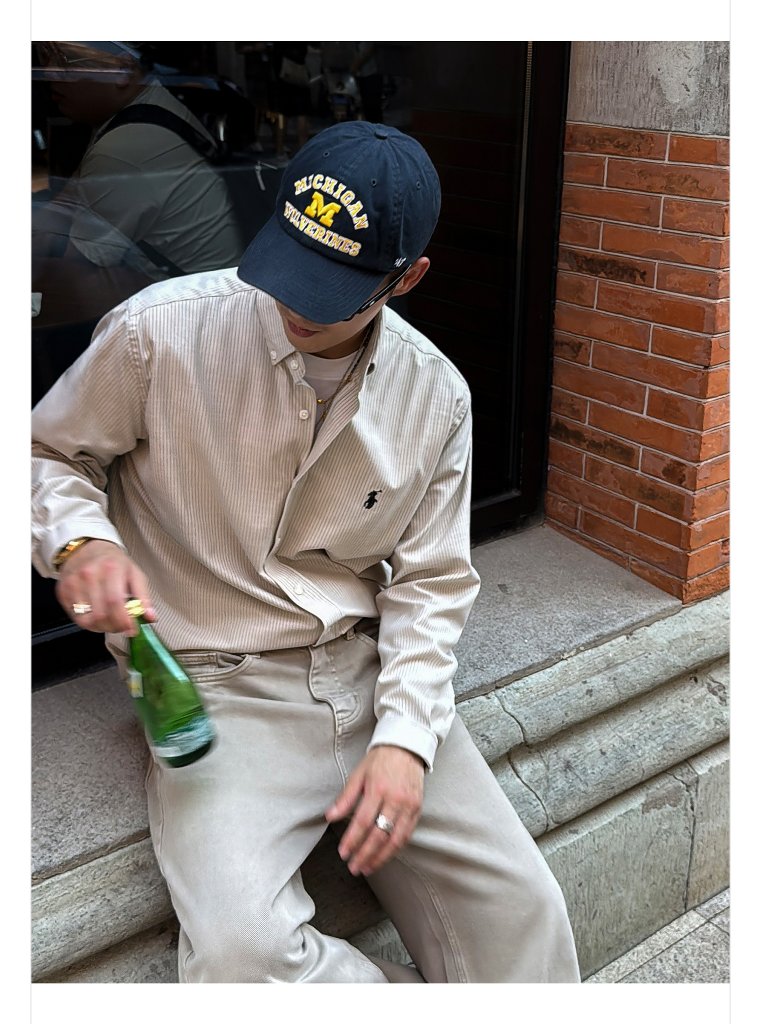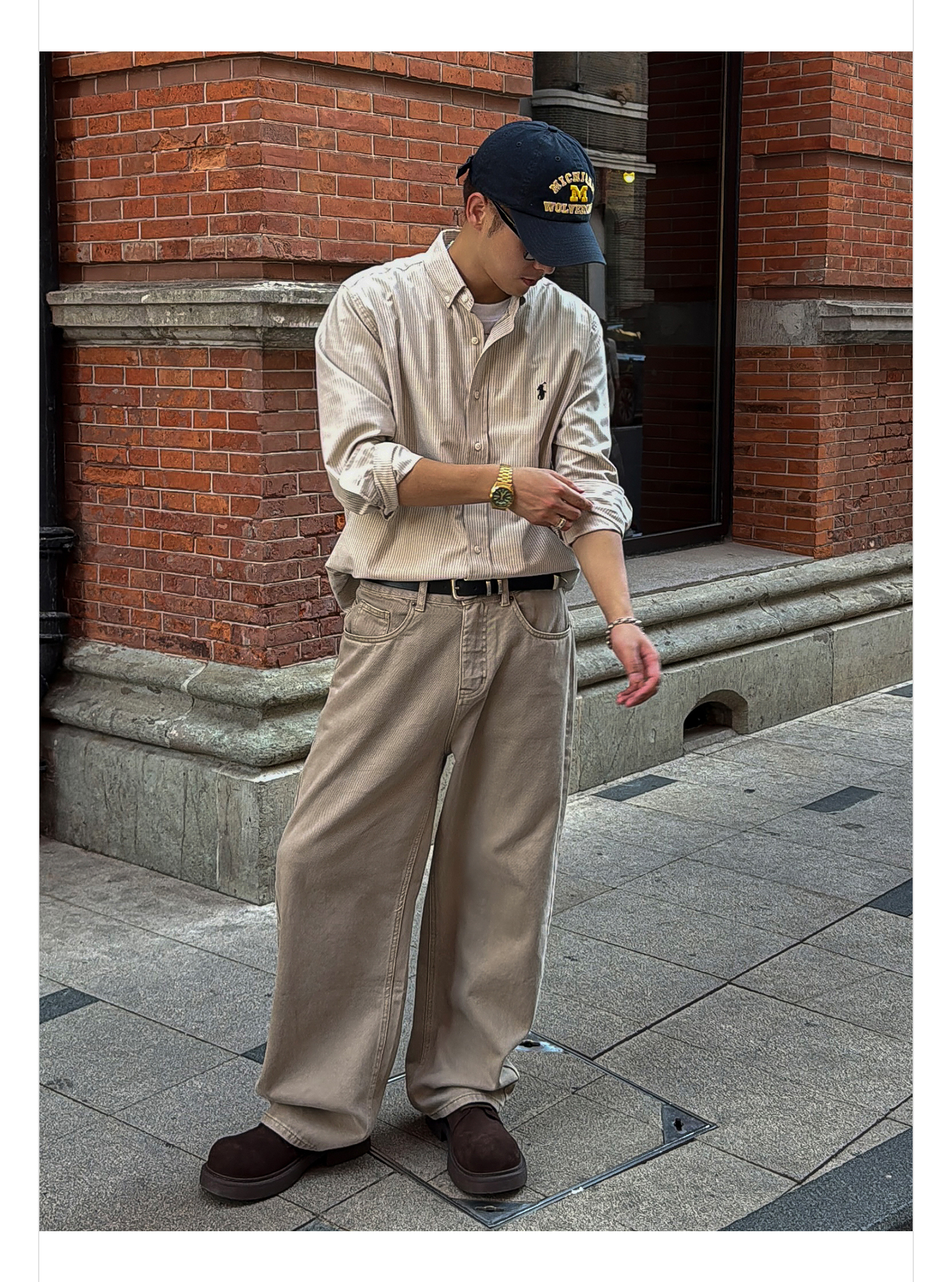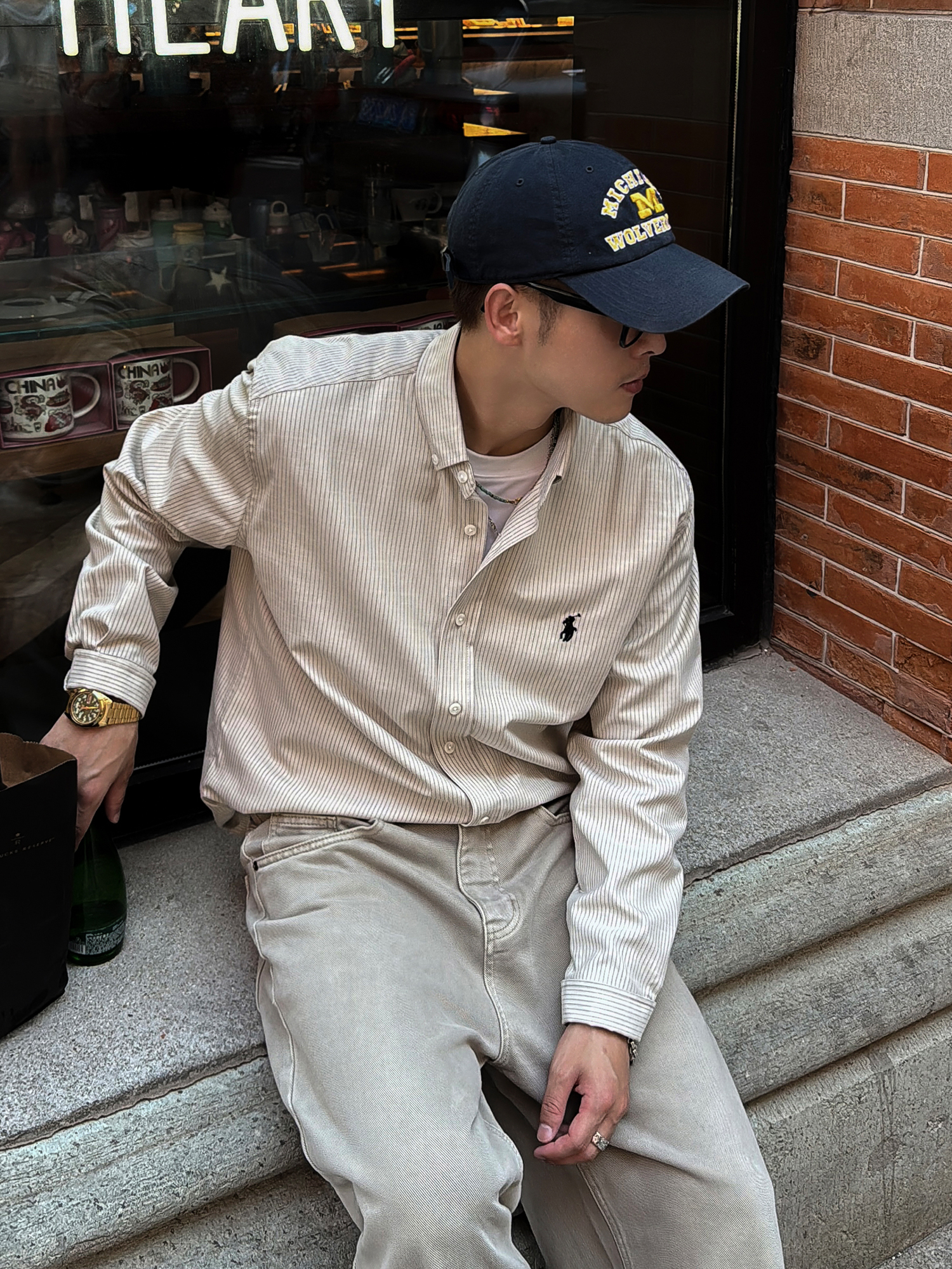 徐太浪【简约刺绣 竖条纹】150g透气长袖衬衫男春秋休闲通勤衬衣