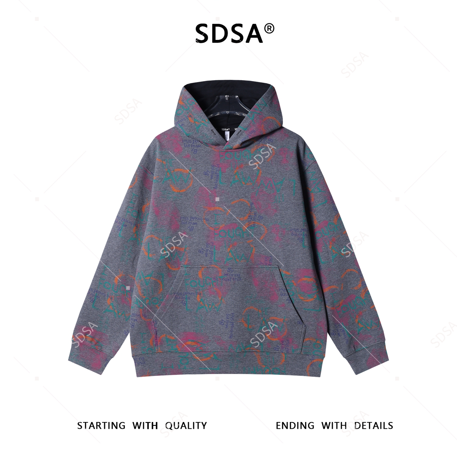 SDSA男士秋冬新款痞帅男装美式撞色印花字母连帽卫衣百搭时尚上衣