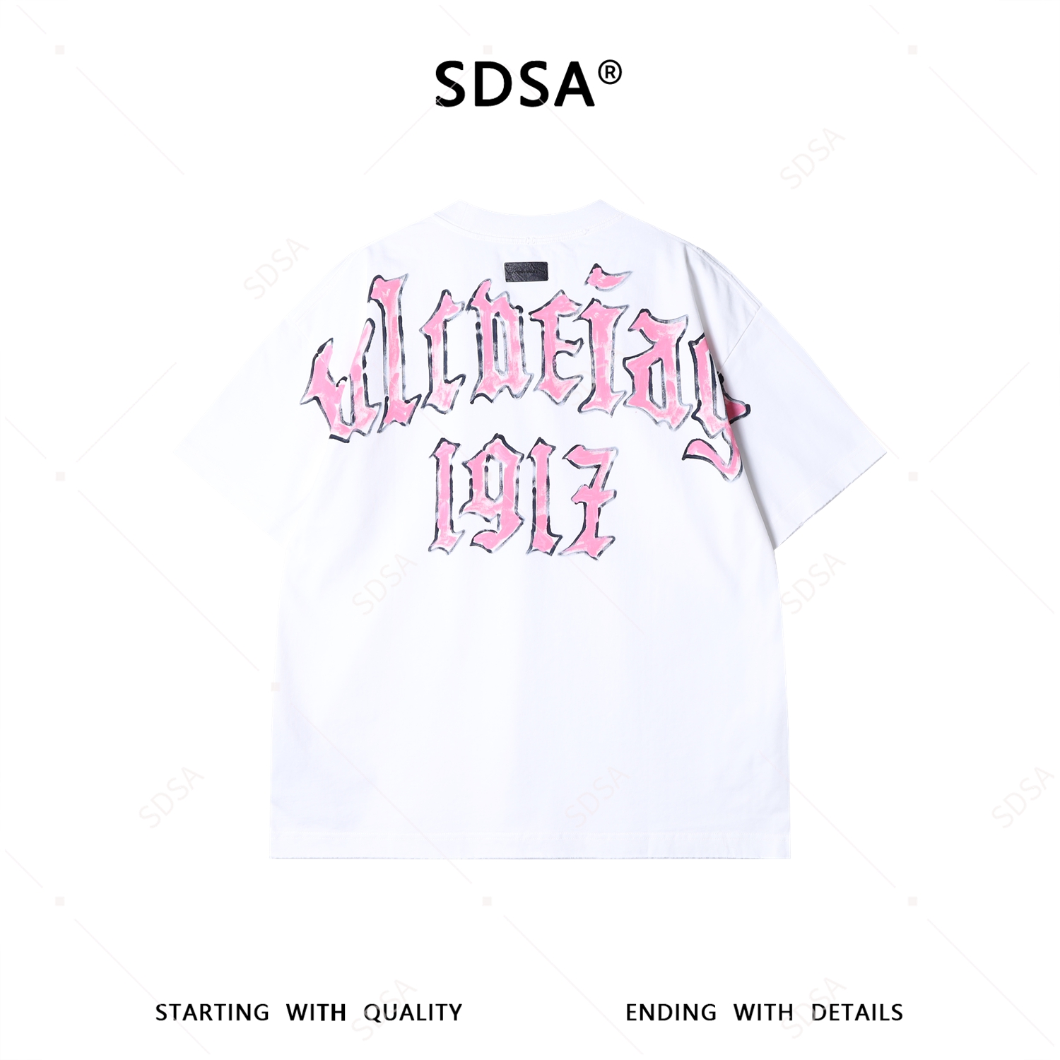 T901夏季新款衣物字母印花男女同款短袖百搭潮流情侣T恤宽松复古上衣