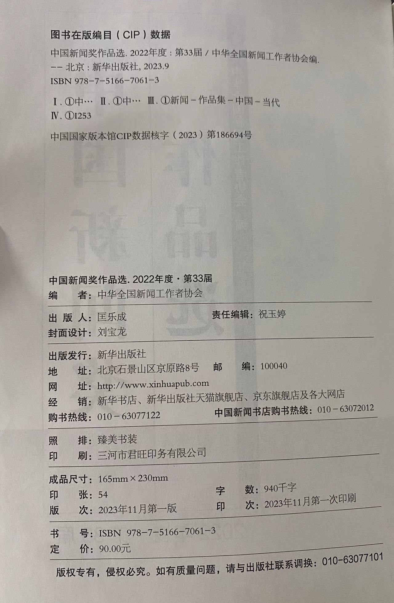 中国新闻奖作品选(2022年度▪第33届)(新华出版社)