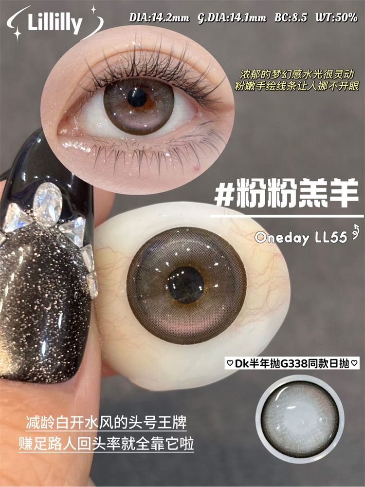 Lillilly LL-55粉 粉粉羔羊 日抛直径14.2mm日常美瞳 粉色 10片/盒