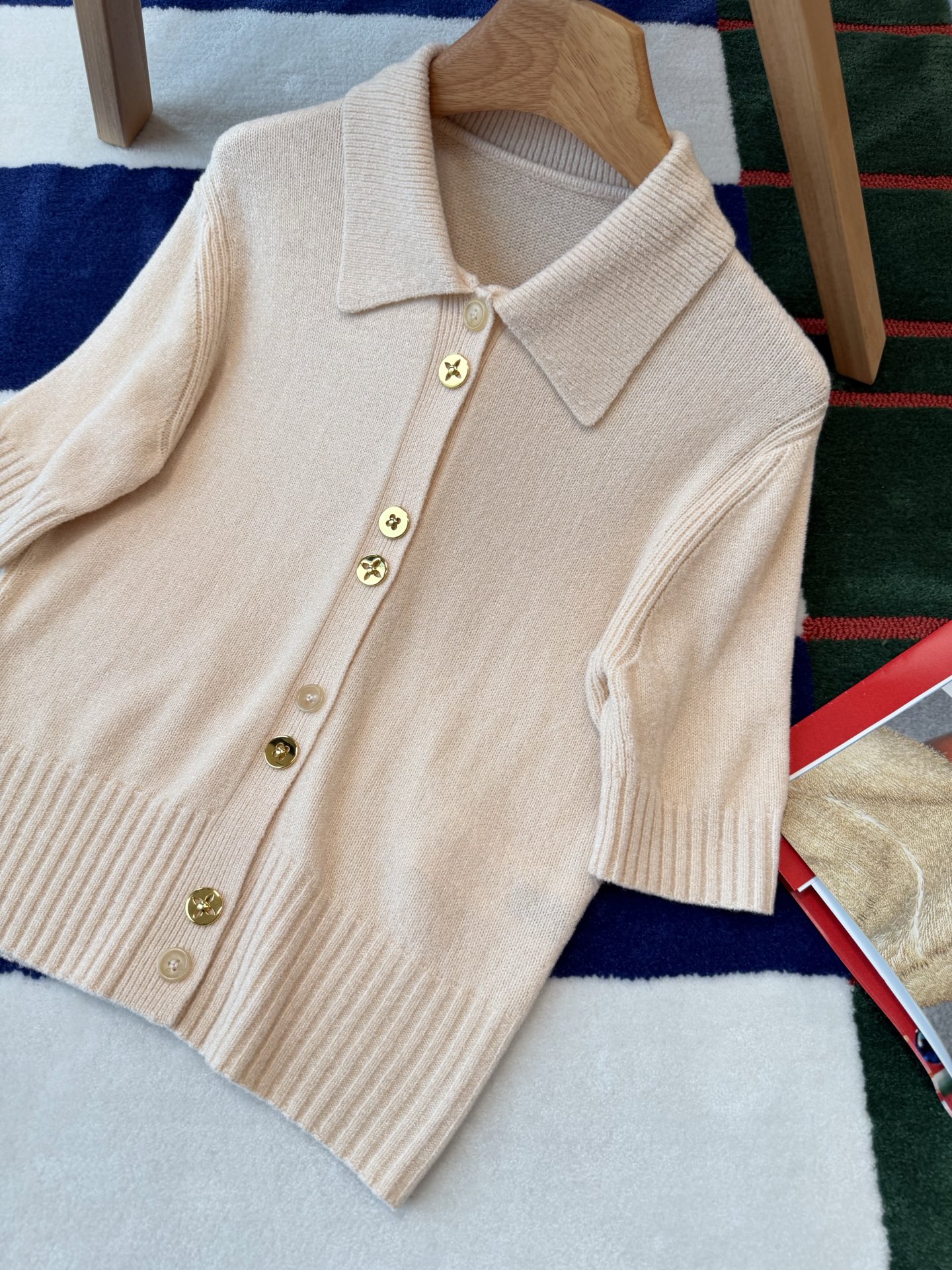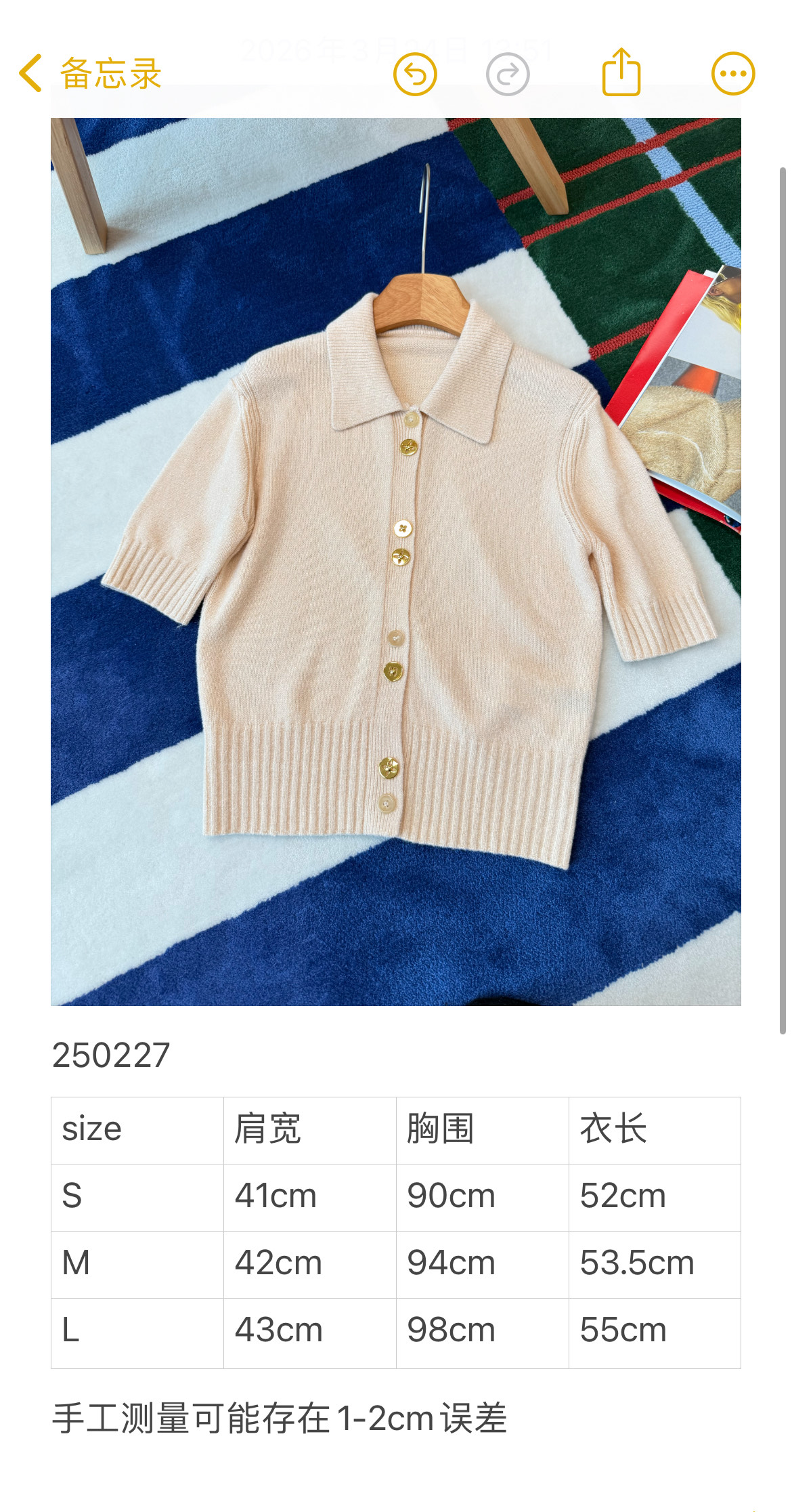 26Ss杏色短袖针织开衫💫温柔即高级,演绎不费力的法式慵懒〰️轻松拿捏松弛感与贵气范✨利落翻领搭配收腰版型,软糯纱线自带细腻光泽🧶让面料既有挺括骨感,又不失亲肤柔润🎶精致金属纽扣➕坑条肌理设计🔜堪称点睛之笔〰️低调中尽显质感,轻松适配日常通勤与休闲出街✨衣橱里值得入手的气质单品😉码数SML