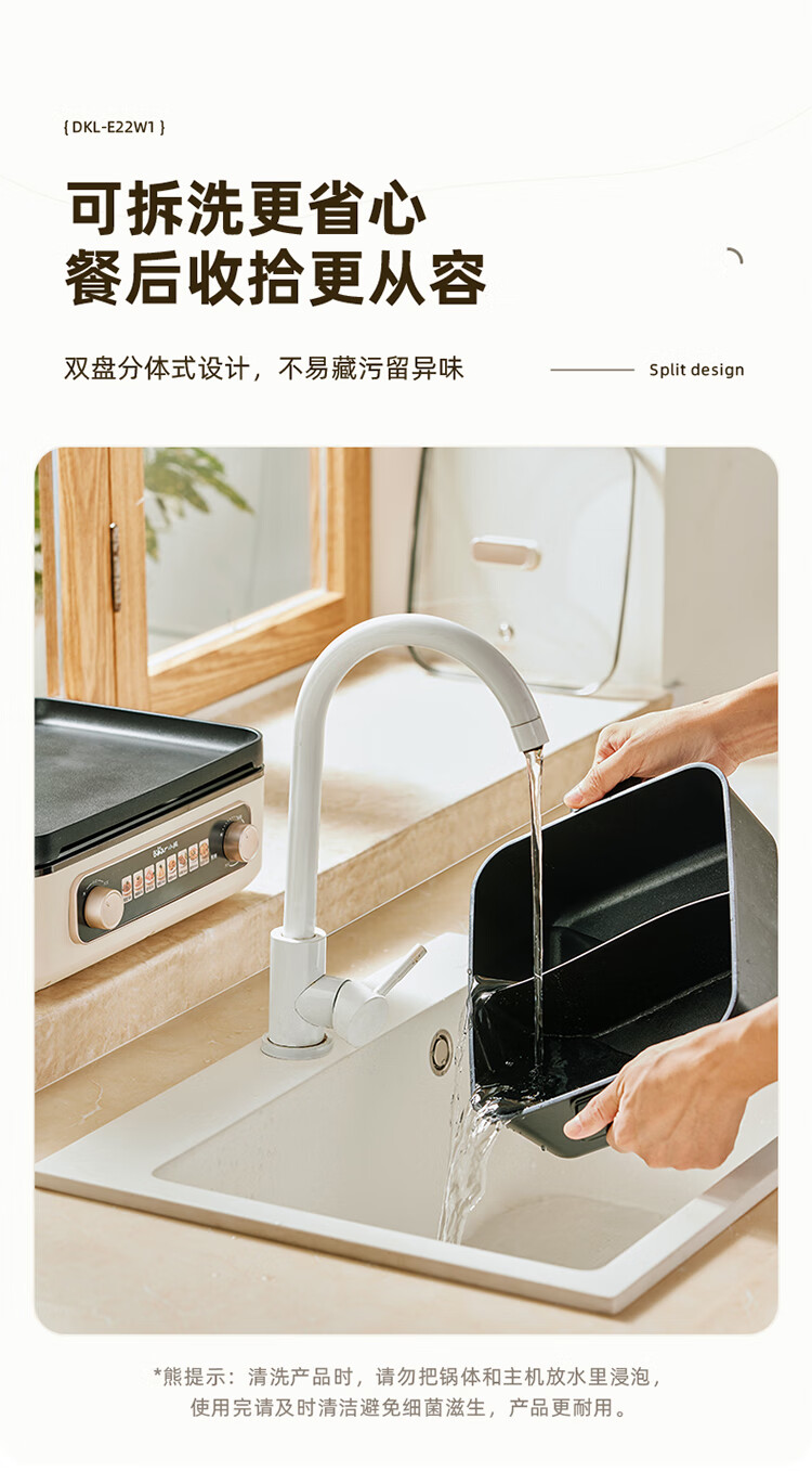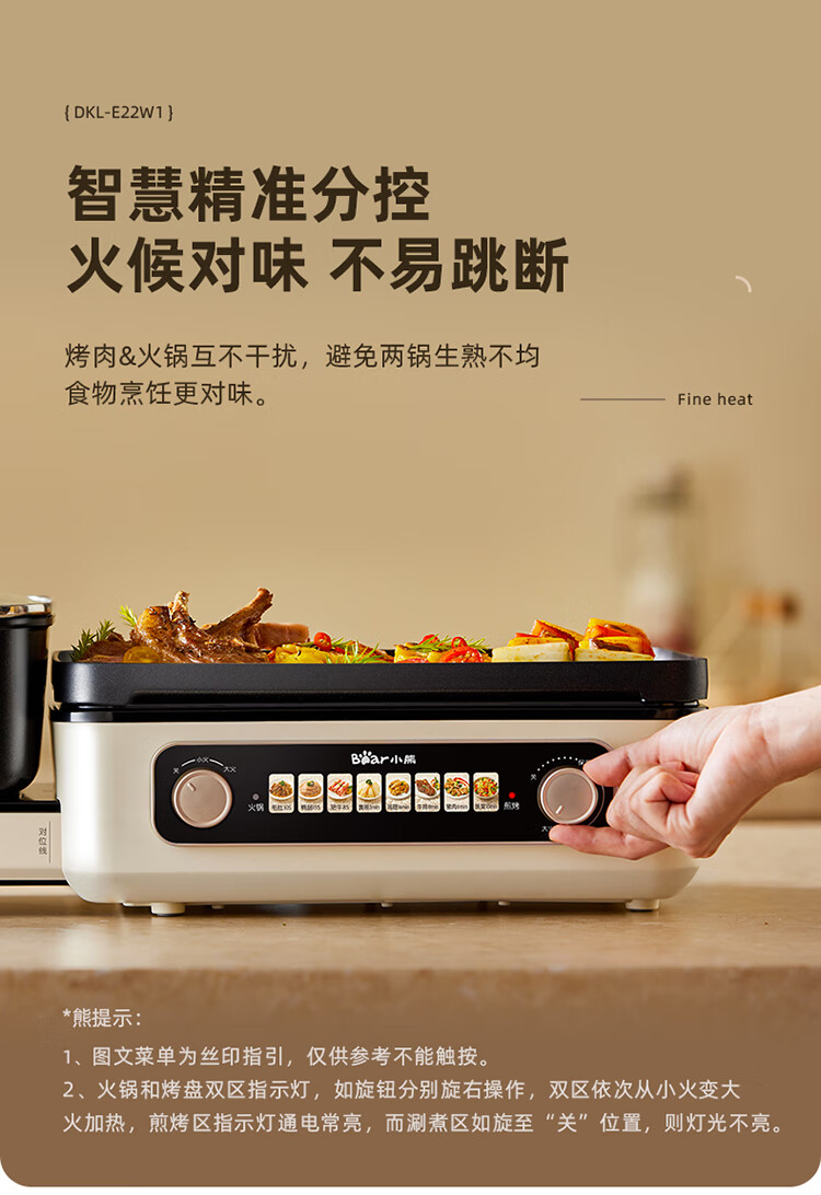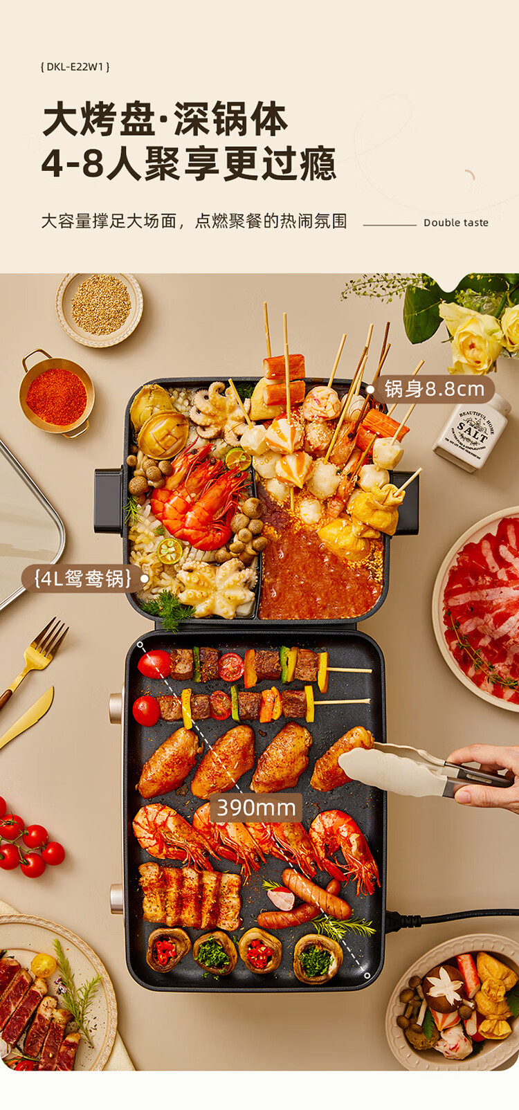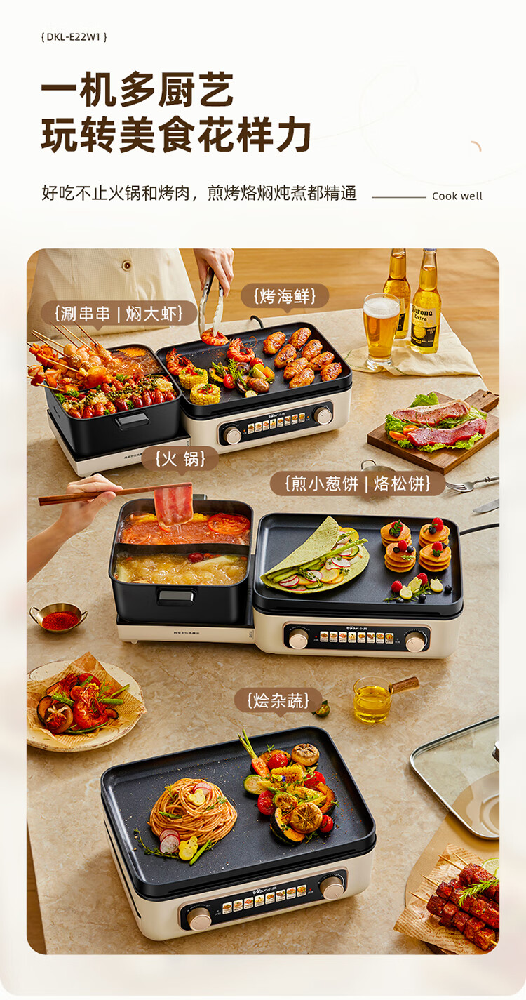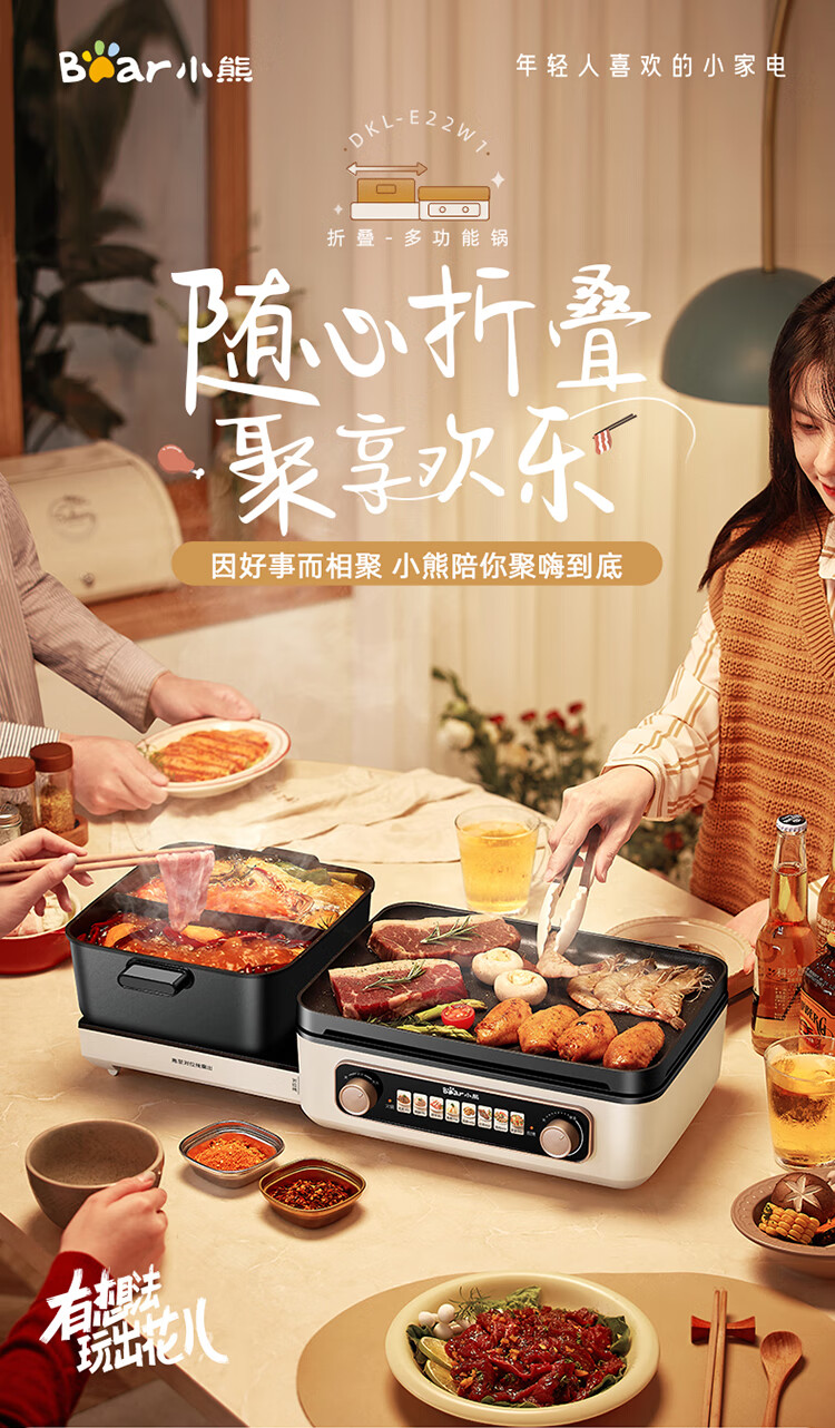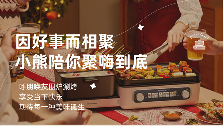 小熊(Bear)折叠多功能料理锅 电火锅 鸳鸯锅 火锅专用锅烤涮一体锅家用轻烟烤肉锅火锅烧烤DKL-E22W1