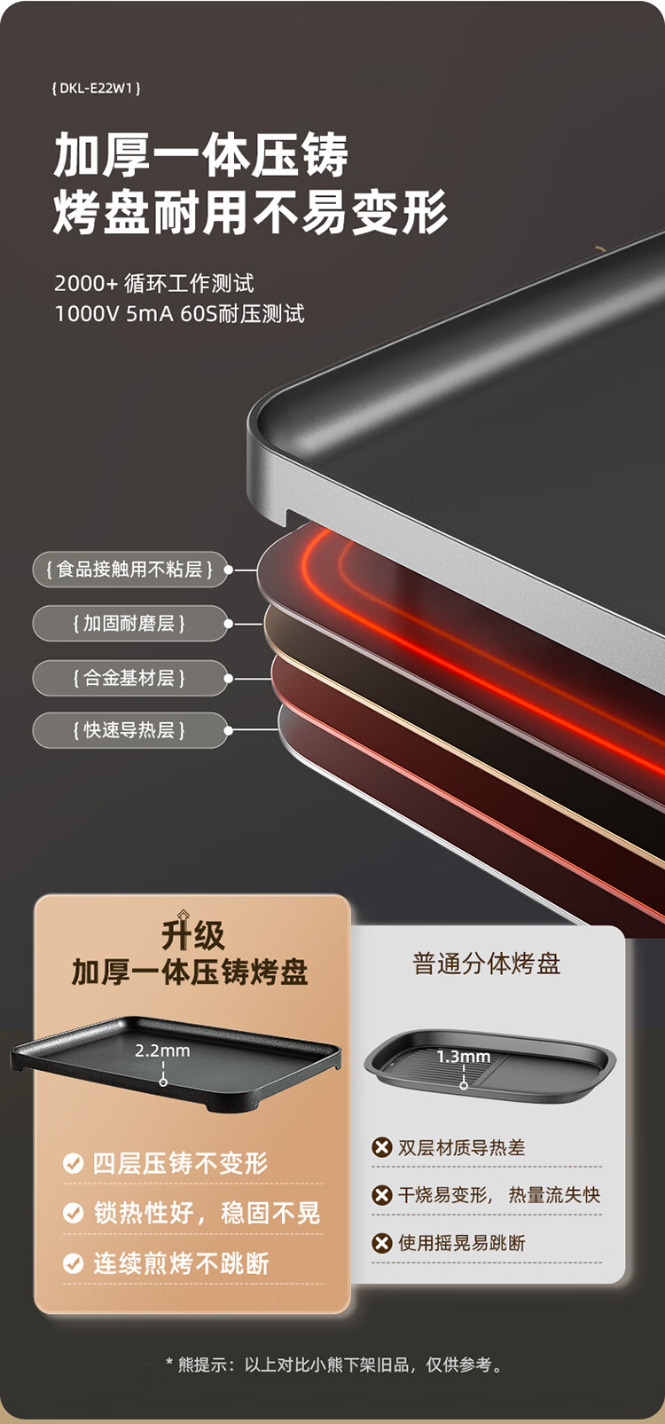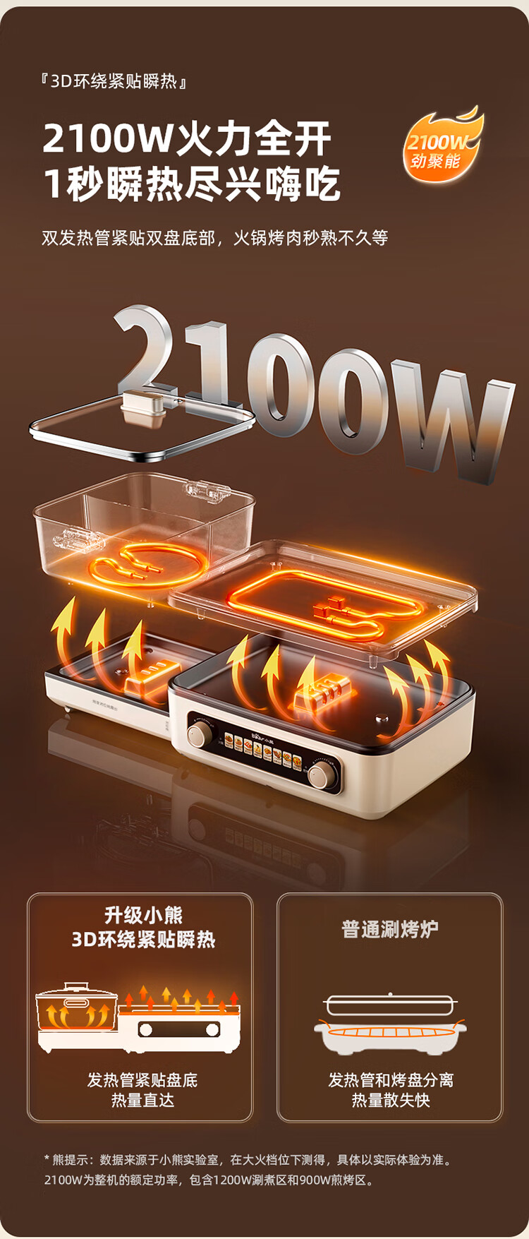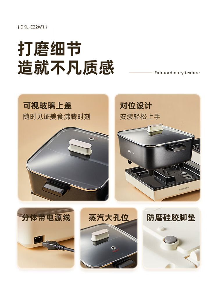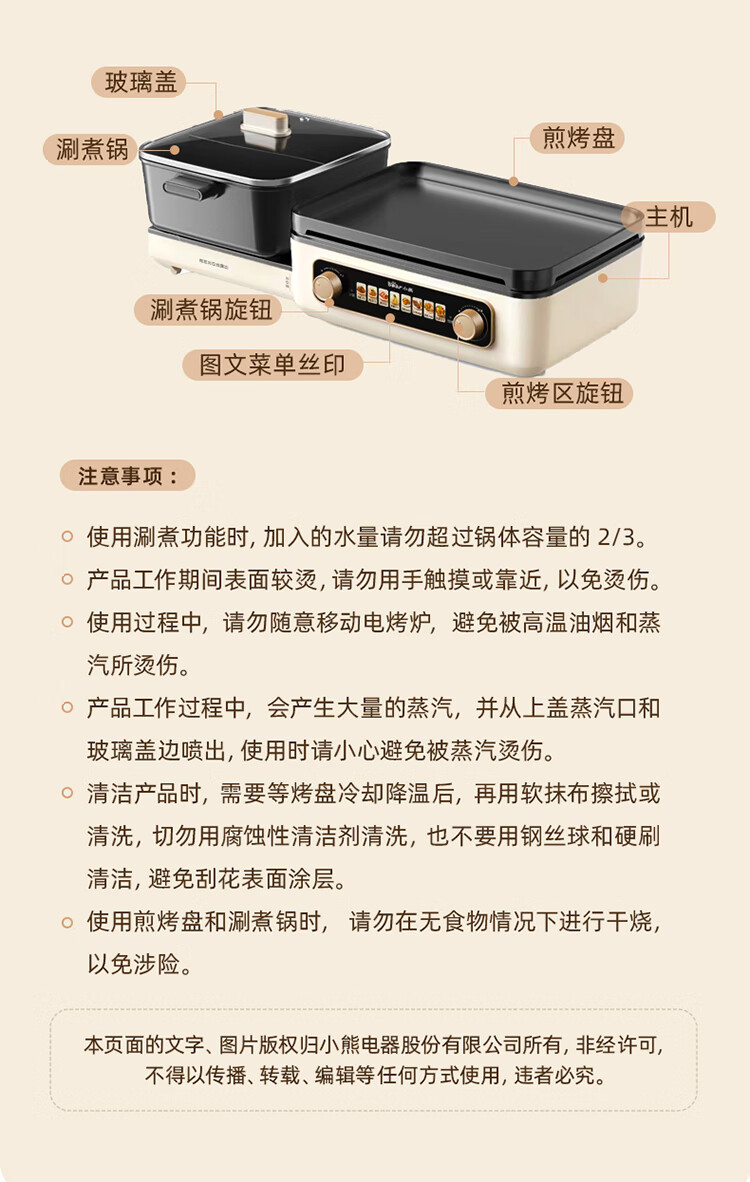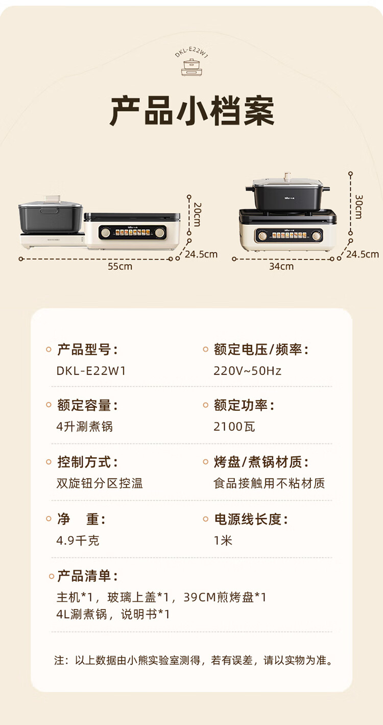 小熊(Bear)折叠多功能料理锅 电火锅 鸳鸯锅 火锅专用锅烤涮一体锅家用轻烟烤肉锅火锅烧烤DKL-E22W1