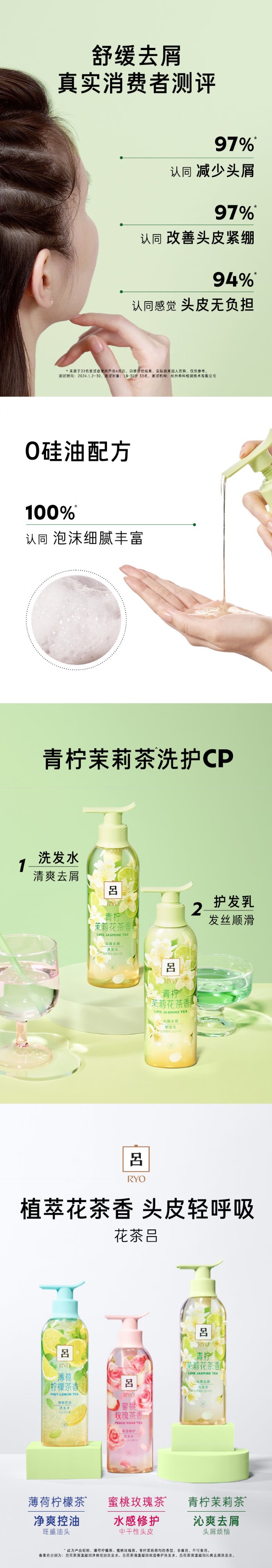 吕花茶清漾凝润沁爽去屑洗发水400ml青柠茉莉花