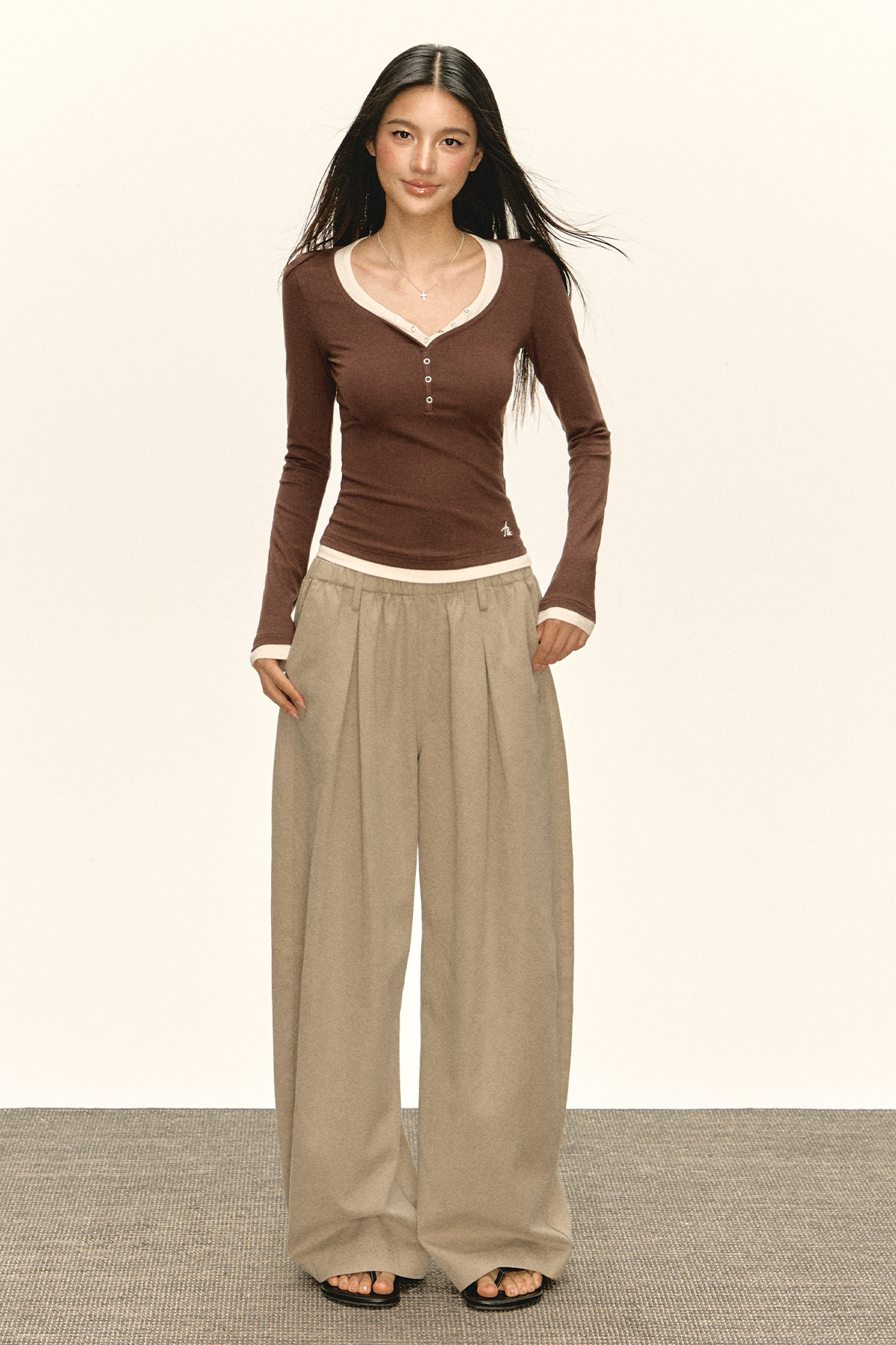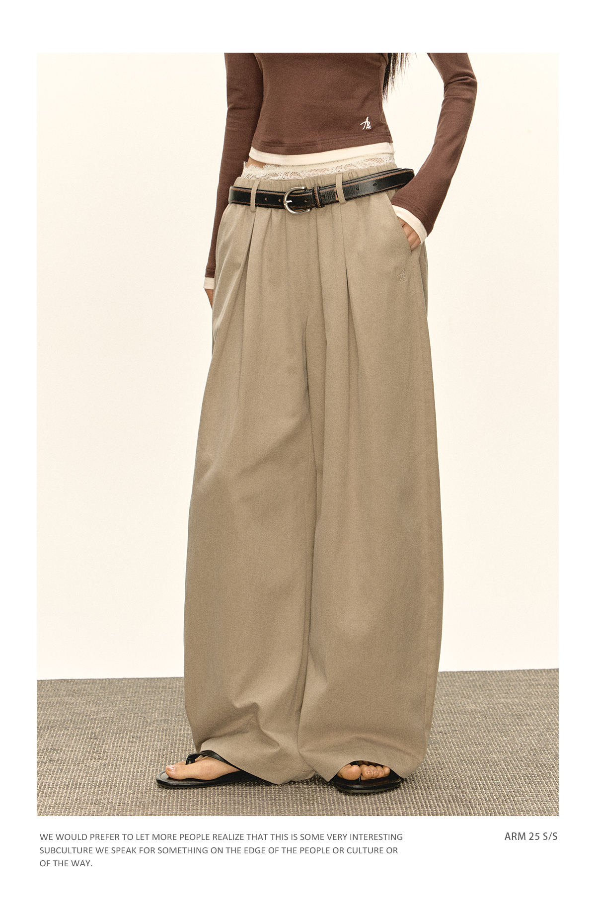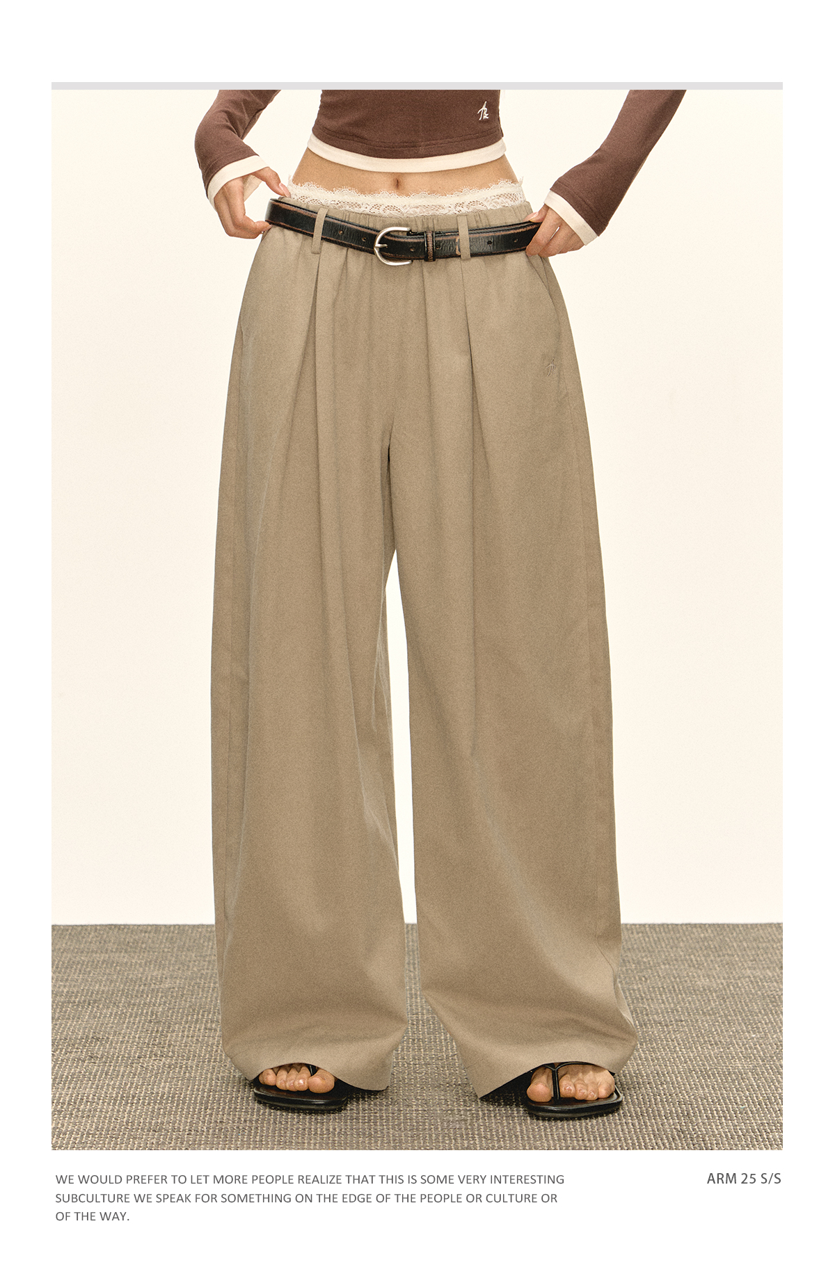 Ariseism 美式复古宽松蕾丝腰头休闲裤女秋季新款长裤子