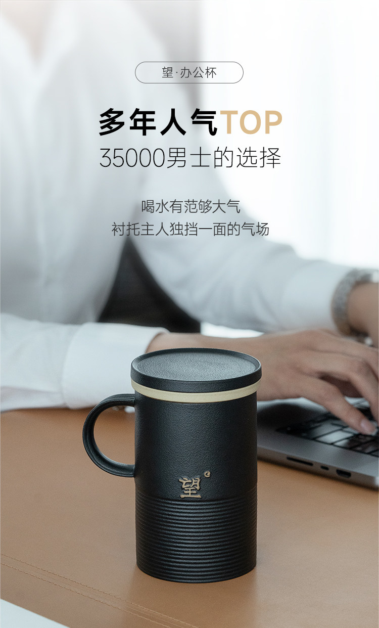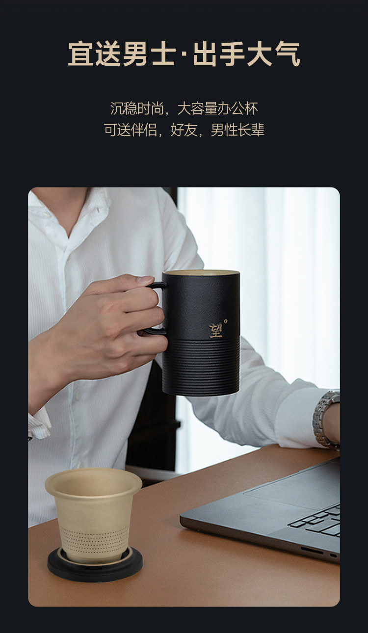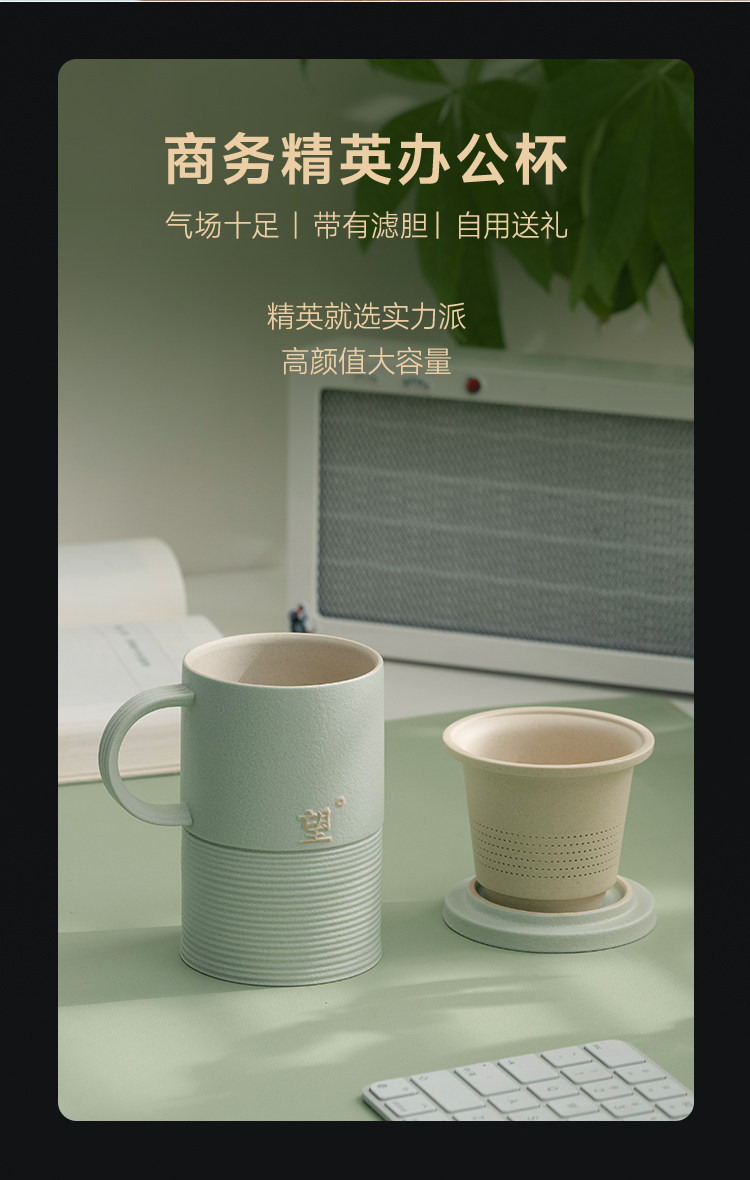 【预售7天】万仟堂高档办公杯茶杯办公室泡茶杯茶水分离杯陶瓷茶杯子男士望杯 瓷器商品不支持七天无理由