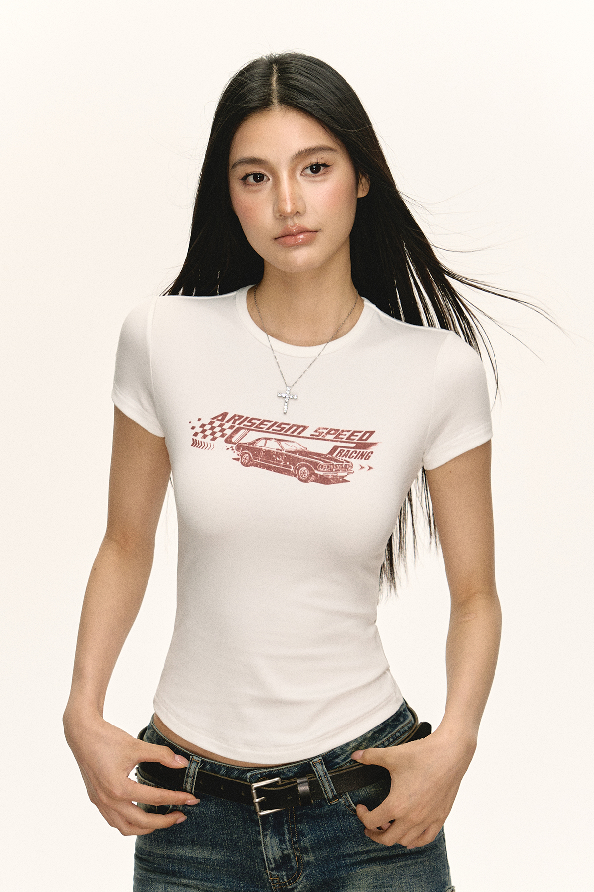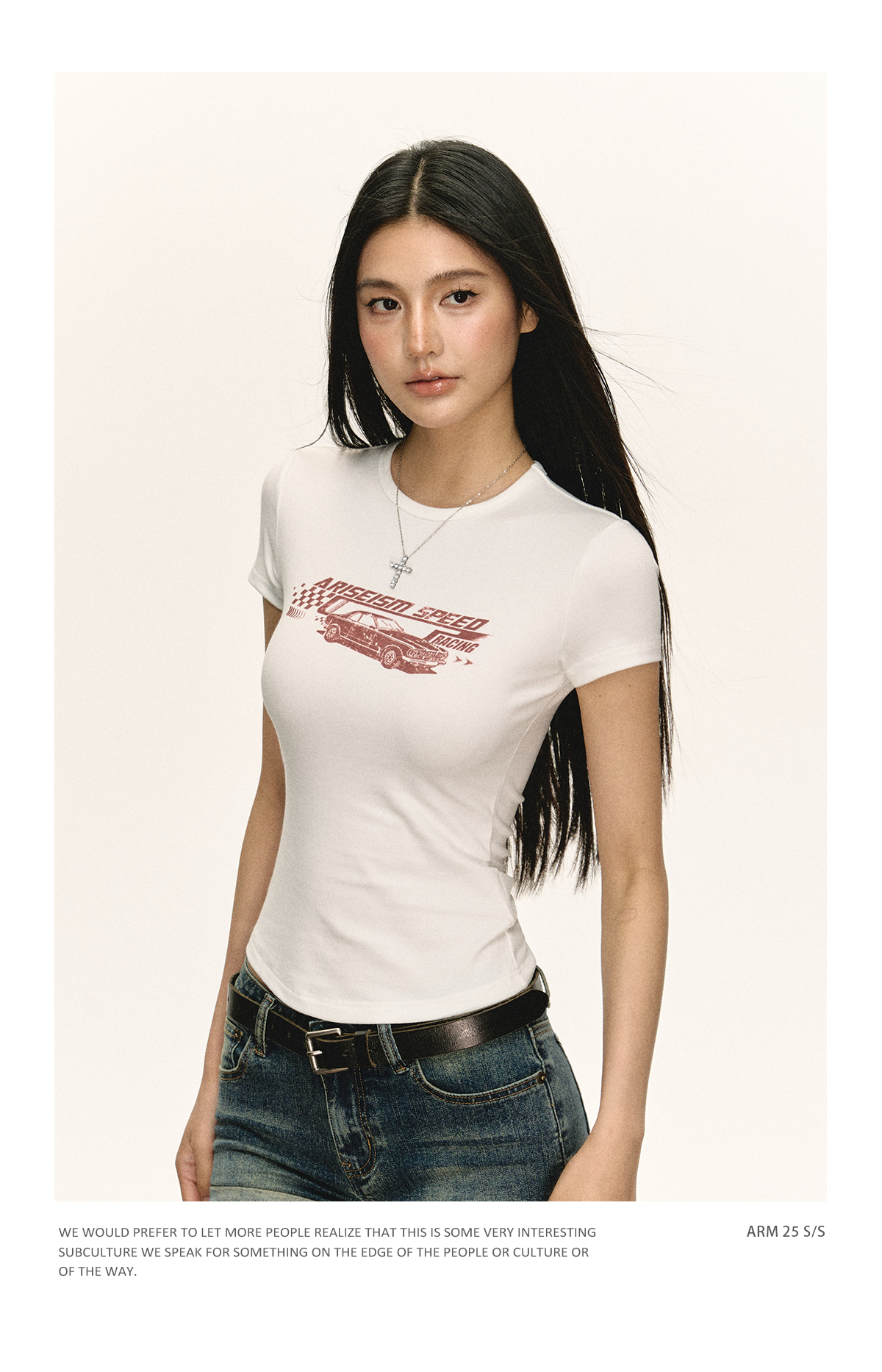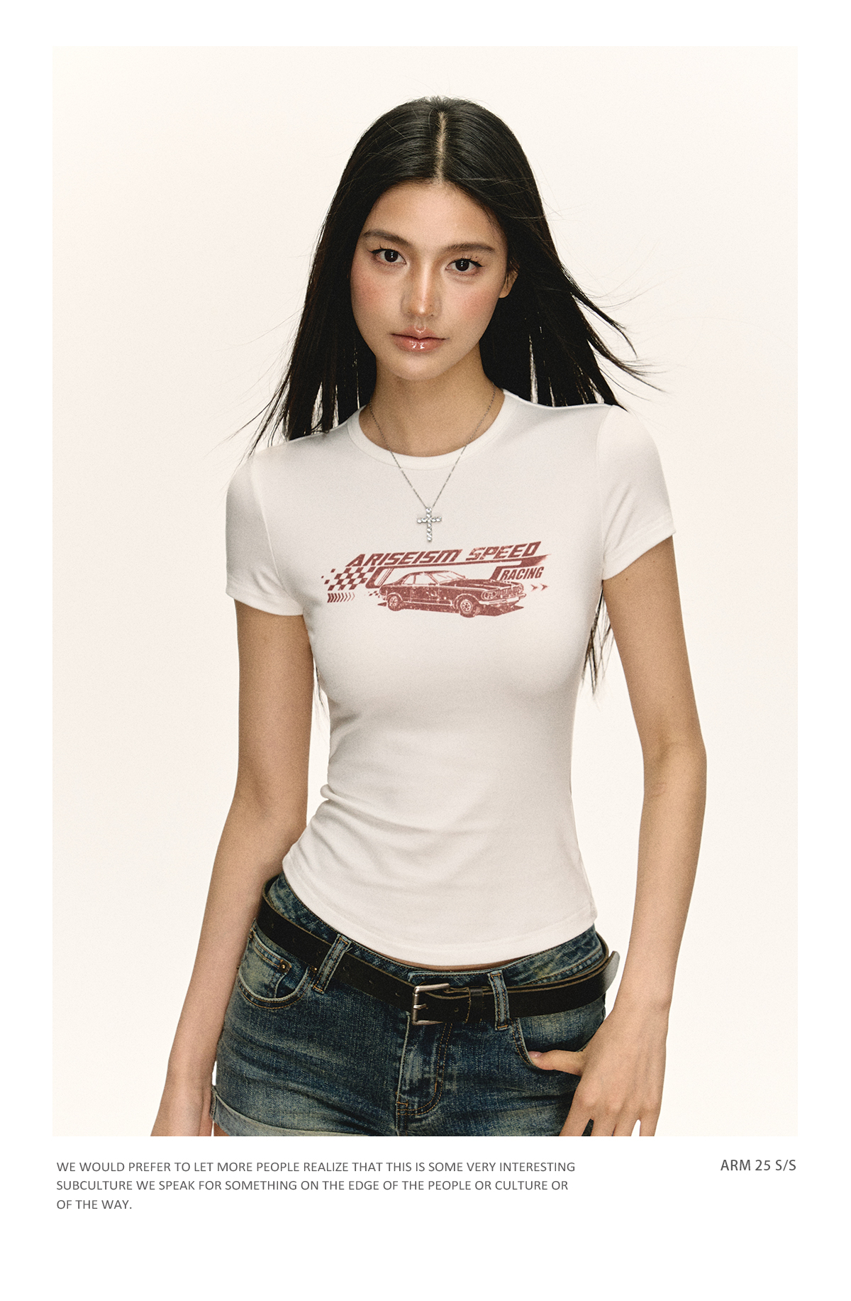 Ariseism 美式复古小圆领修身短袖t恤女2025夏季新款百搭显瘦上衣