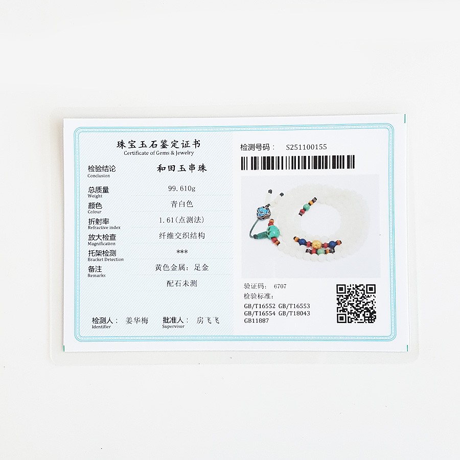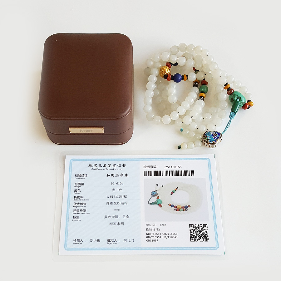 名称 | 足金单珠配天然新疆籽料细腻一级白约8.2MM和田玉珠串项链 |