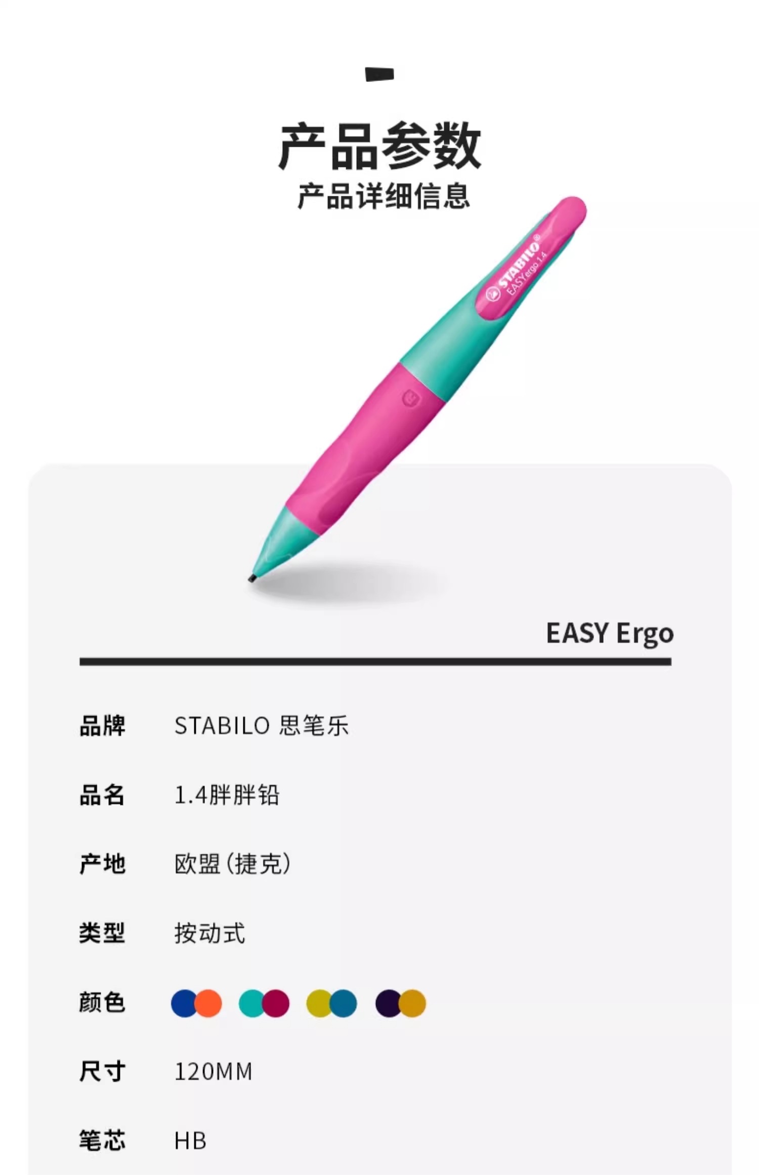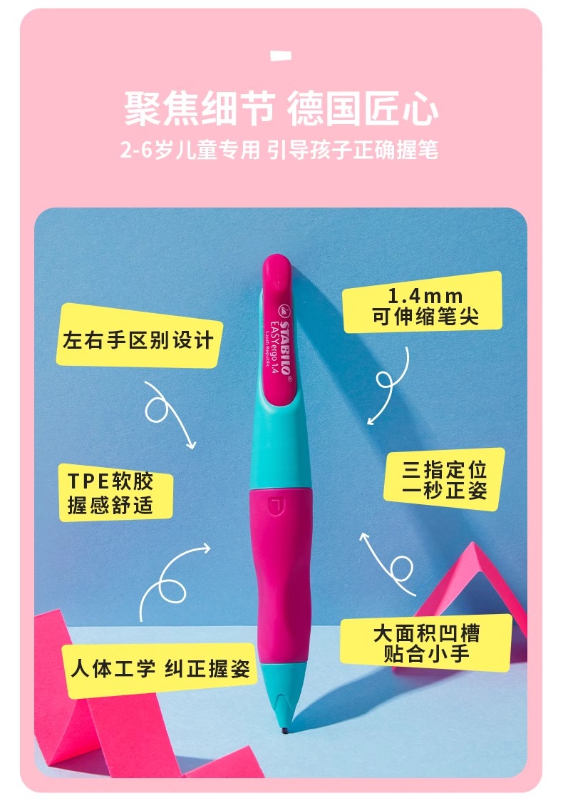 思笔乐Stabilo学生练字握笔自动铅笔 1.4胖胖铅两支装大容量